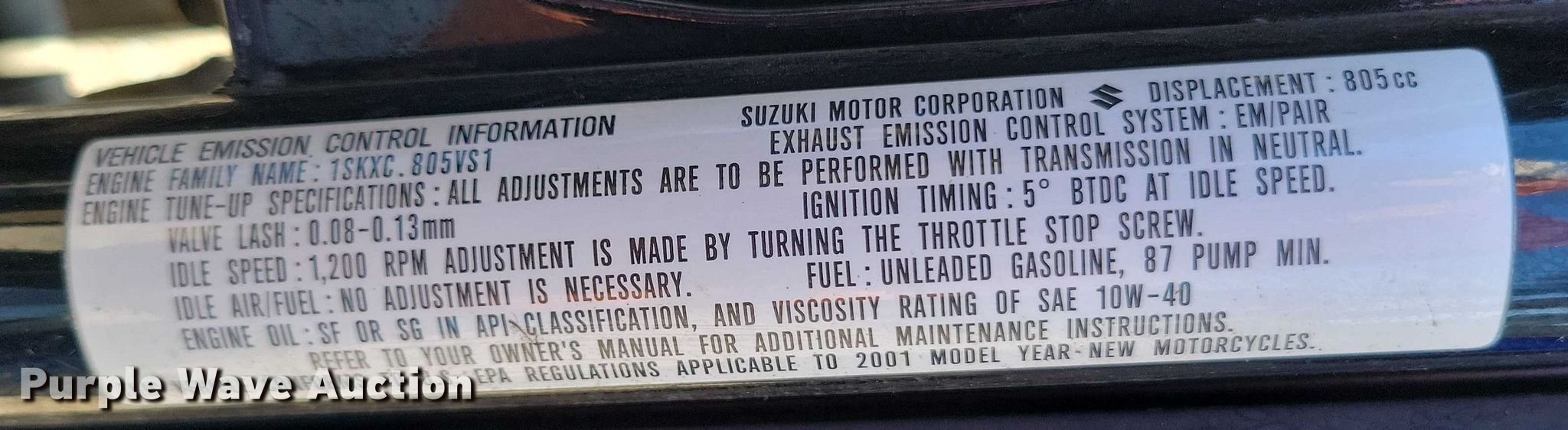 Purple Wave is selling a used Motorcycle in Nebraska. This item is a 2001 Suzuki Marauder motorcycle with the following: Miles: 9,347 on odometer, VIN: JS1VS53A412102693