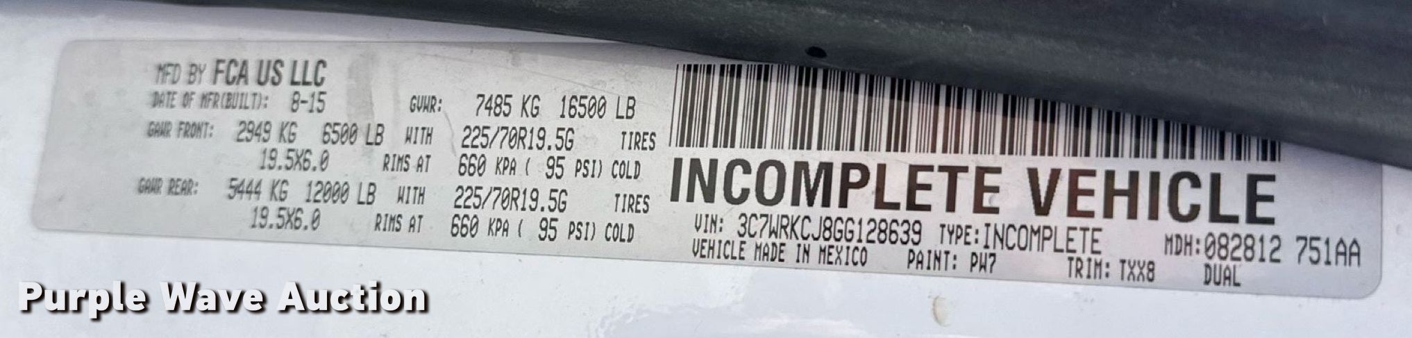 • VIN: 3C7WRKCJ8GG128639
