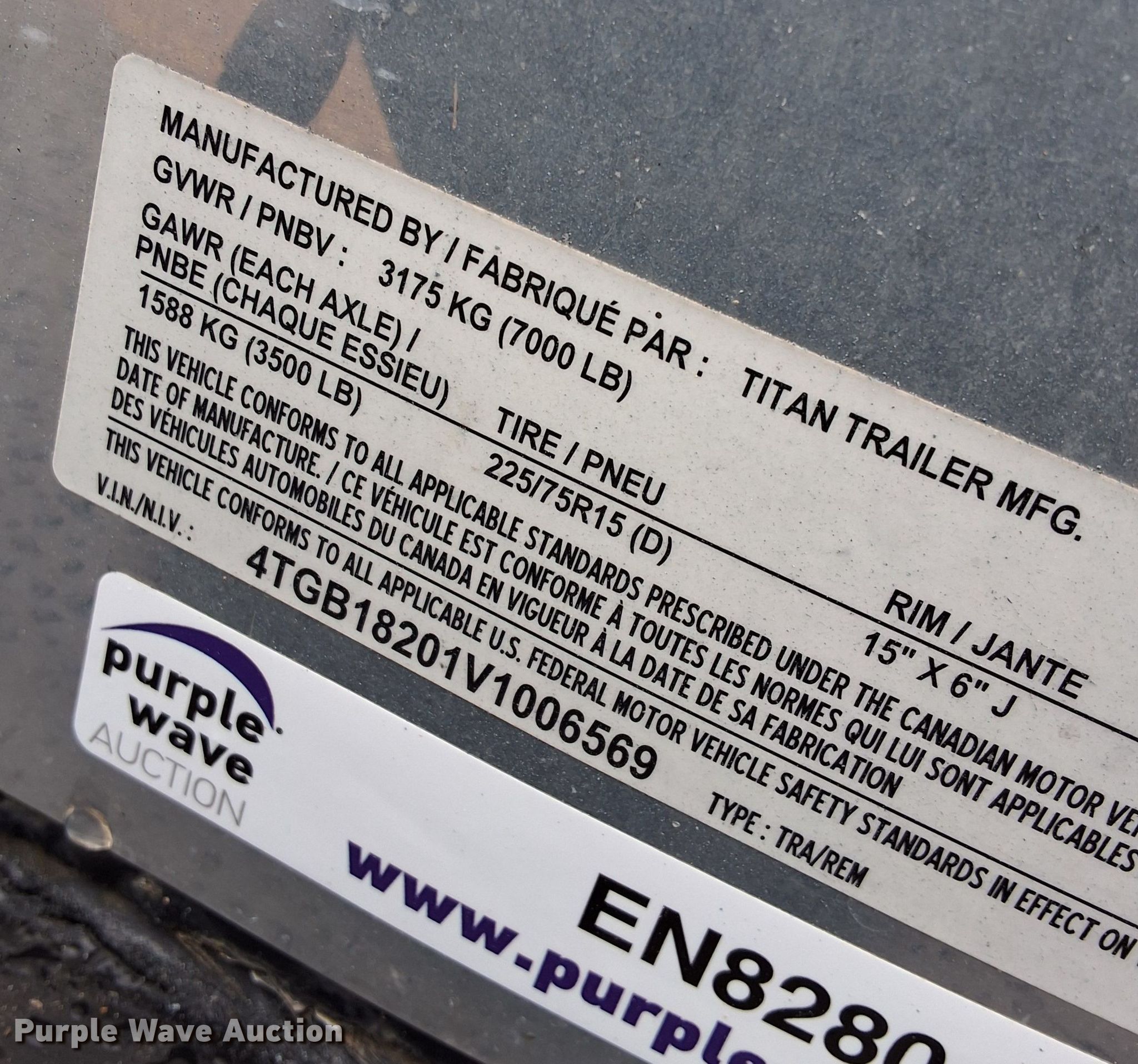 Purple Wave is selling a used Enclosed Cargo Trailer in Oklahoma. This item is a 1997 Titan enclosed cargo trailer with the following: VIN: 4TGB18201V1006569