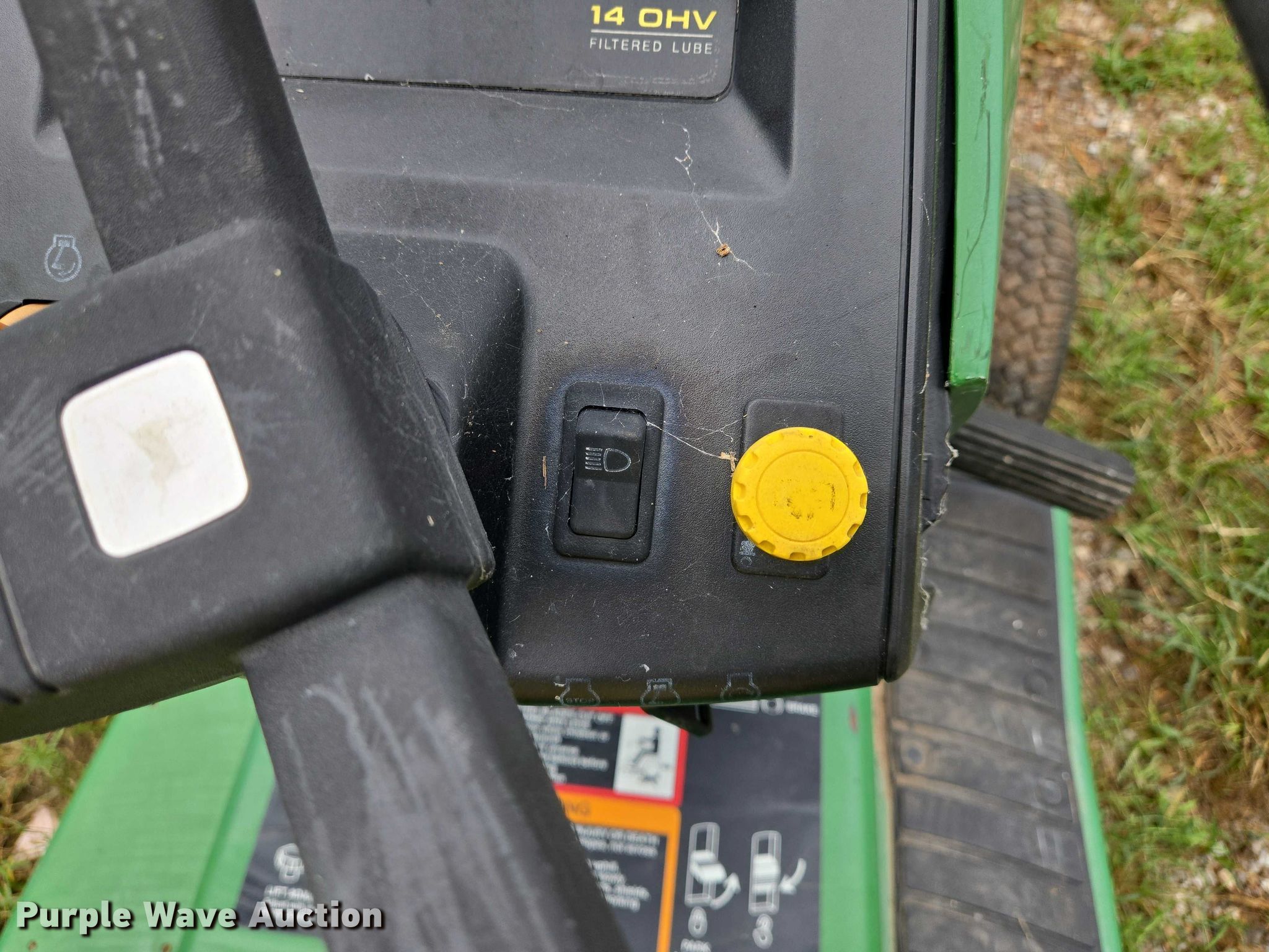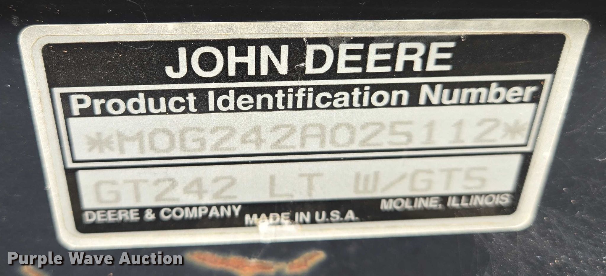 Purple Wave is selling a used Lawn Mower in Oklahoma. This item is a John Deere GT242 lawn mower with the following: Serial: M0G242A025112