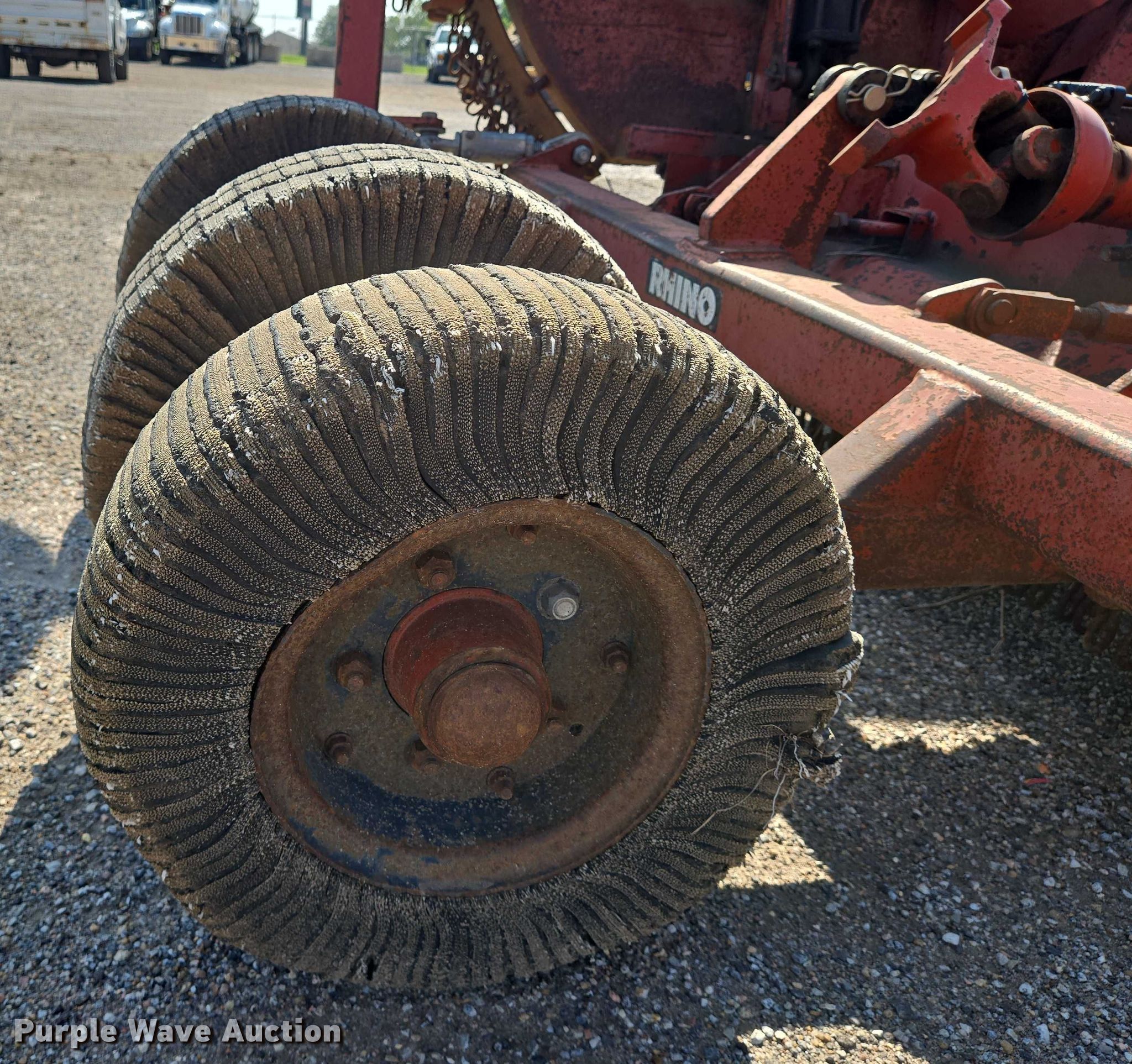 Rhino FM15 batwing rotary mower. Serial: 14429. Features Width: 15', Hydraulic lift, Hydraulic fold, PTO: 1 3/4" 1000. Tires Size: 20", Solid. Notes Non-operational unit. Mies Construction, Inc.. Wichita, KS 67213
