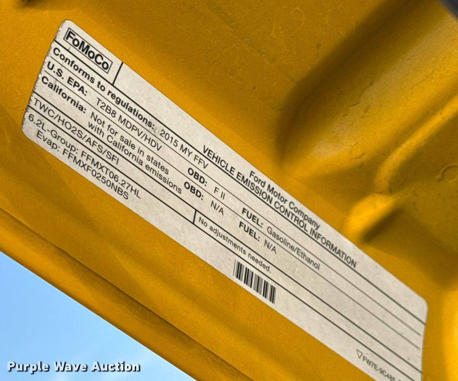 2015 Ford F250 utility bed pickup truck. Miles: 139,178 on odometer, VIN: 1FTRF3B69FEC92834, Unit #: C92834. Engine Displacement: 6.2L V8 OHV, Cylinders: 8, Fuel type: Gas. Transmission Automatic, Four wheel drive. Interior AC, Heat, Heated mirrors, Power windows, Power locks, Cruise control, Auxiliary controls. Features Bed Utility bed, Warner, Length: 8' 2", Width: 80", End gate lift, Air compressor, Fuel transfer tank. Tires Size: LT275/70R17. Notes Dash warning indicator: Check engine. Oklahoma title. Title distribution may be delayed up to 30 days from verification of funds. Gemini Motor Transport. Oklahoma City, OK 73127