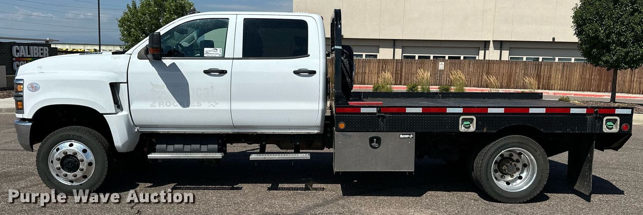 This 2022 Chevrolet 5500 flatbed truck will sell to the highest bidder regardless of price.