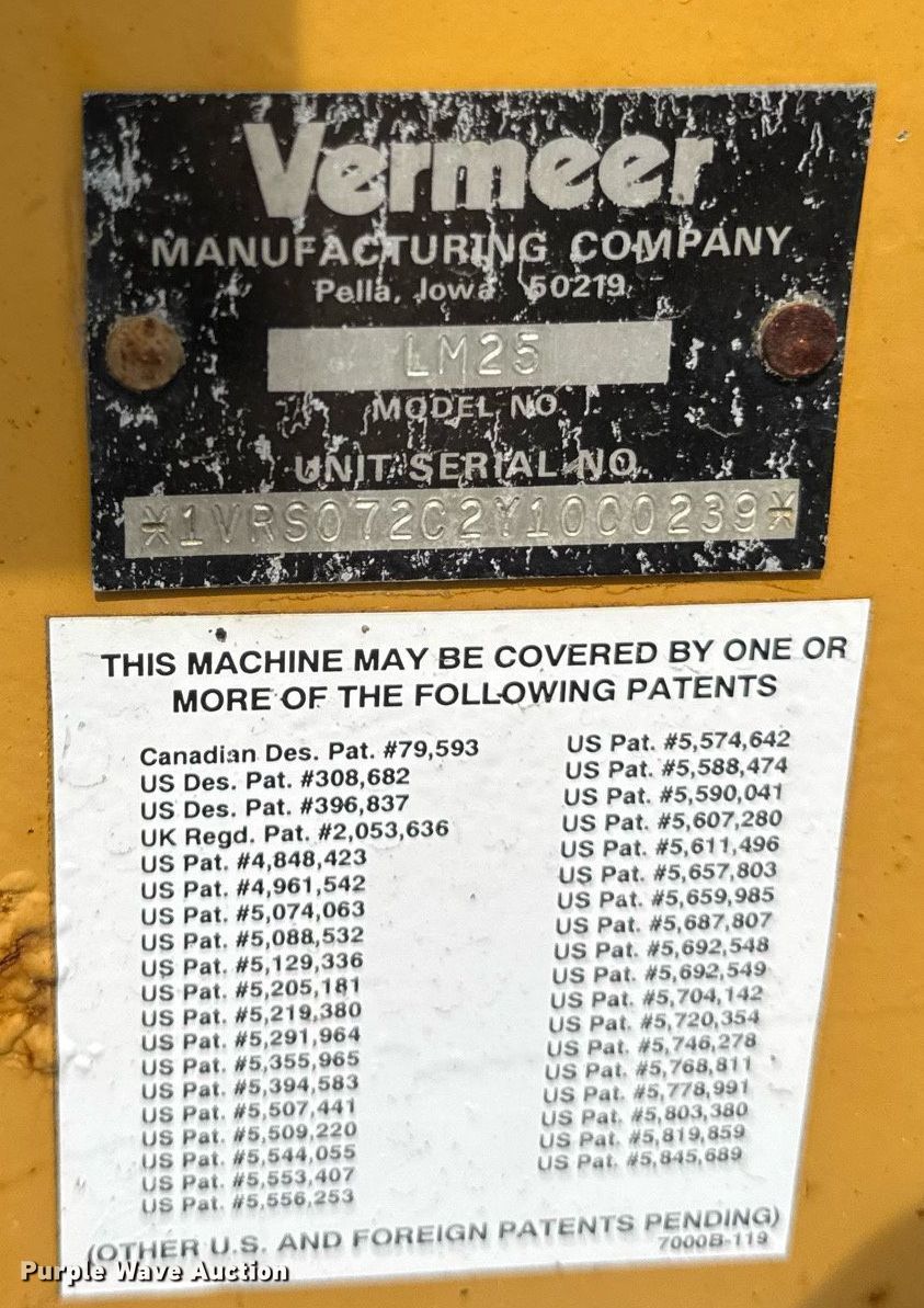Purple Wave is selling a used Cable Plow in Illinois. This item is a 2000 Vermeer LM25 cable plow with the following: Hours: 542 on meter, Serial: 1VRS072C2Y1000239