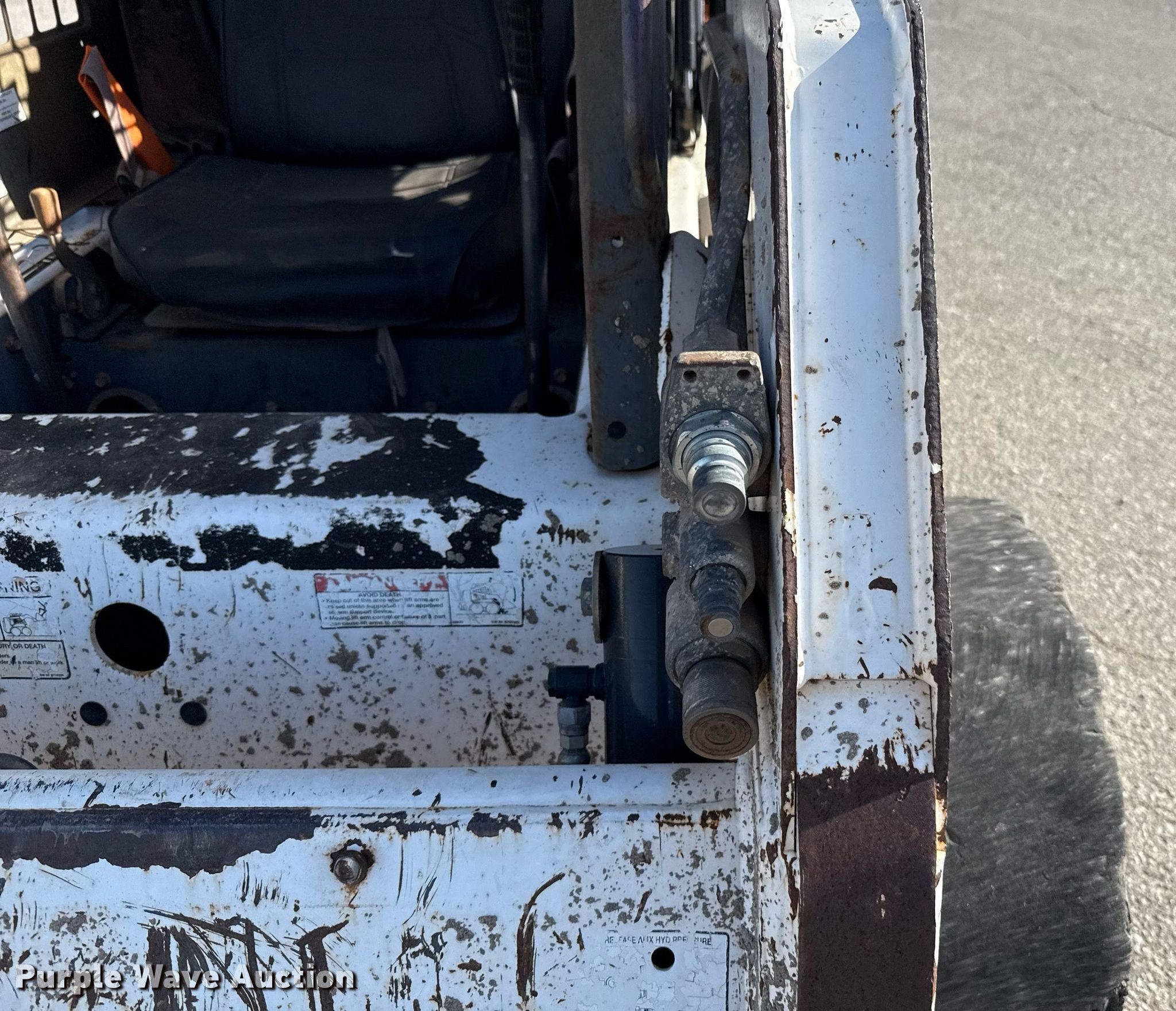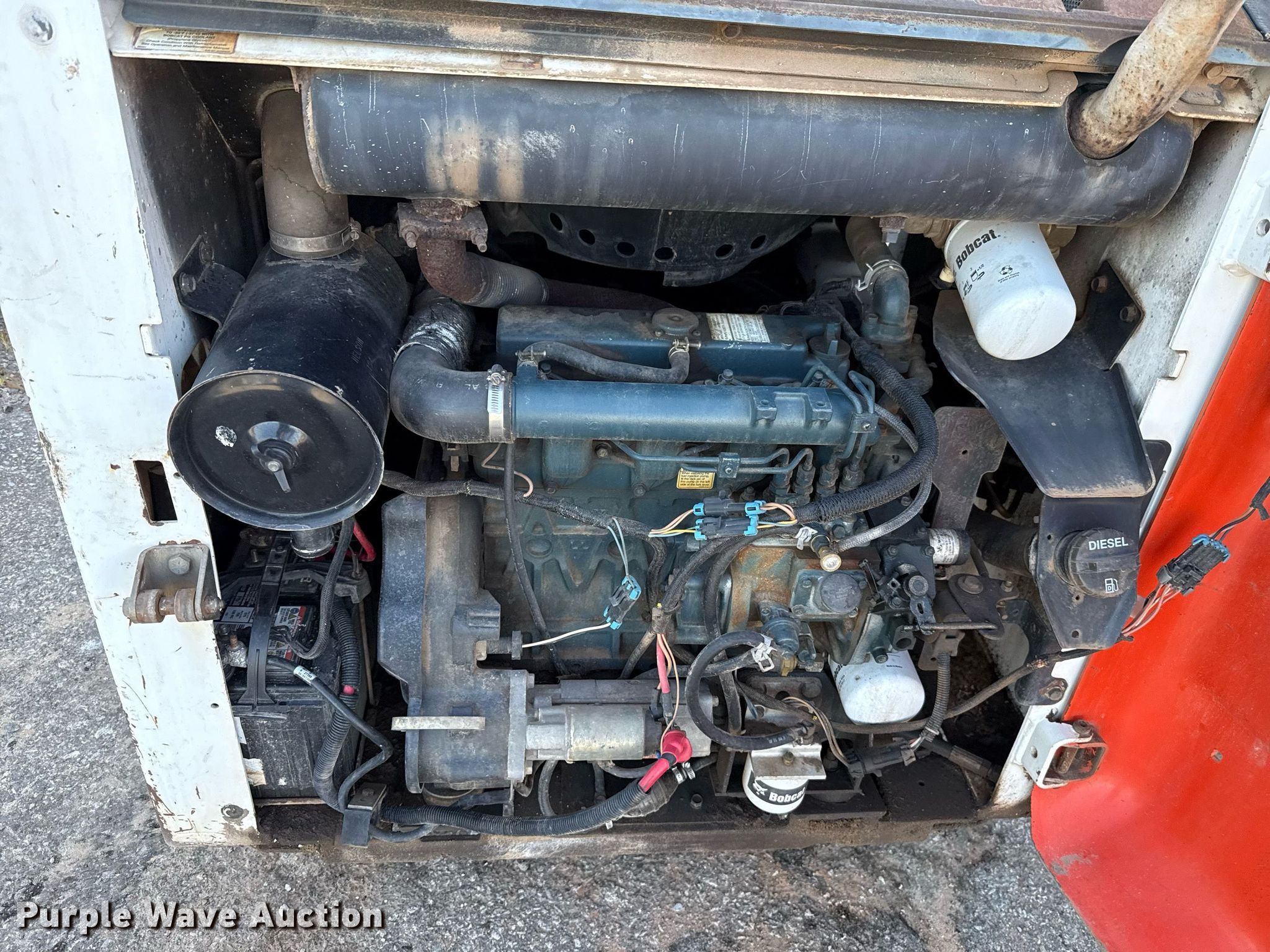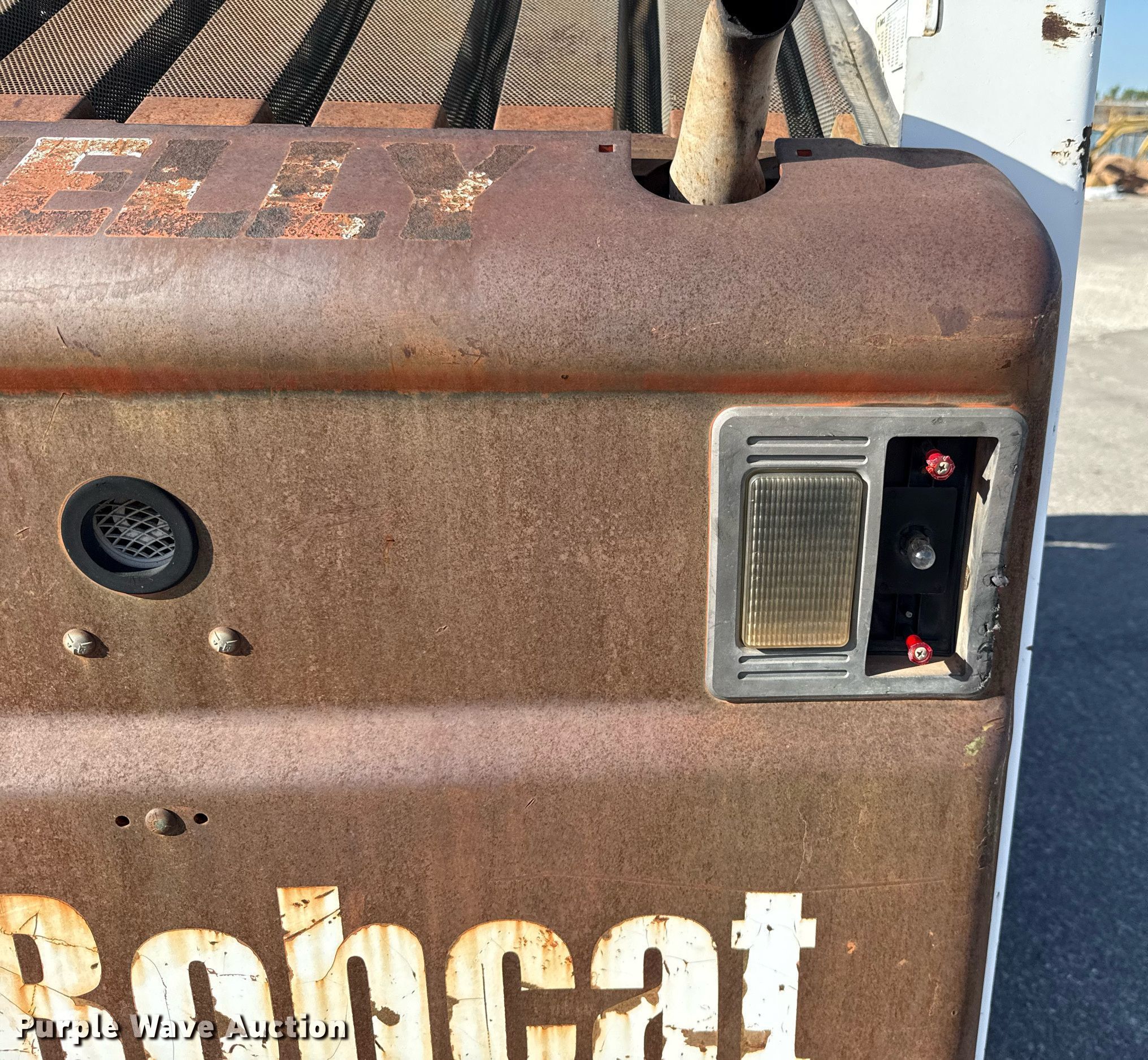 2004 Bobcat S150 skid steer loader. Hours: 6,193 on meter, Serial: 526916148, Unit #: 443. Engine Kubota V2203, Displacement: 2.2L, Cylinders: 4, Fuel type: Diesel. Transmission Hydrostatic. Operators station OROPS, Bucket control: Foot, Electronic Monitoring System panel. Features Auxiliary hydraulics, Quick coupler: Manual, Bucket Bobcat, Width: 67", Low profile, Cutting edge: Weld-on. Tires Size: 10-20, Solid. Notes Hood latch issues, difficult to open, Jump start required during on-site data collection. Connelly Paving & Ready-Mix. Oklahoma City, OK 73107