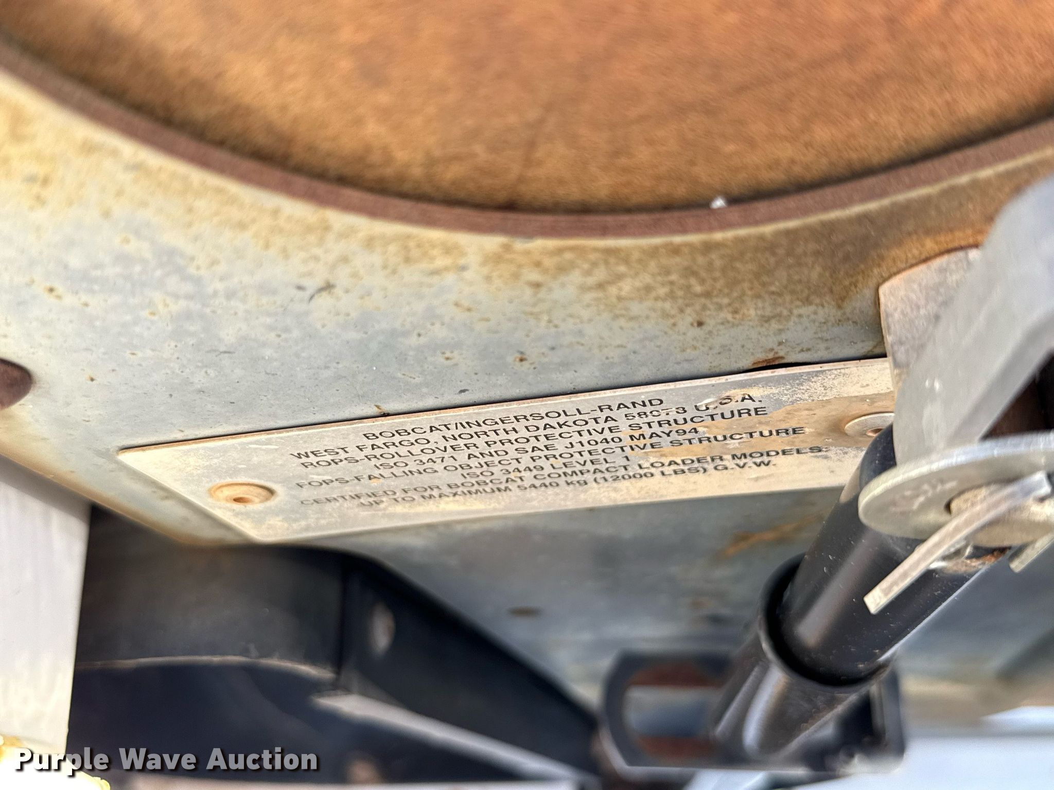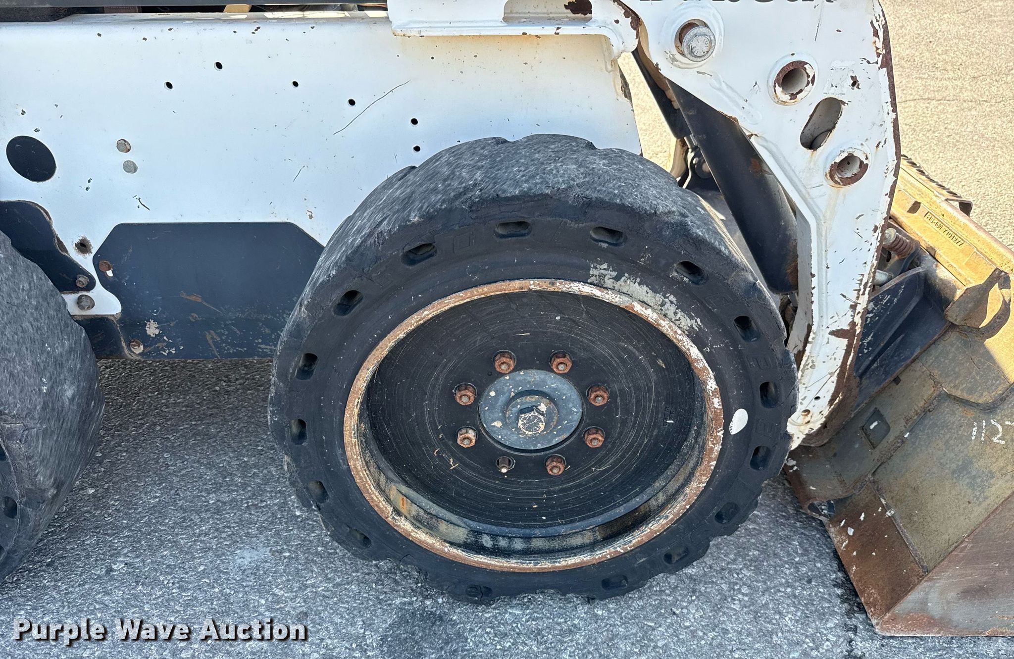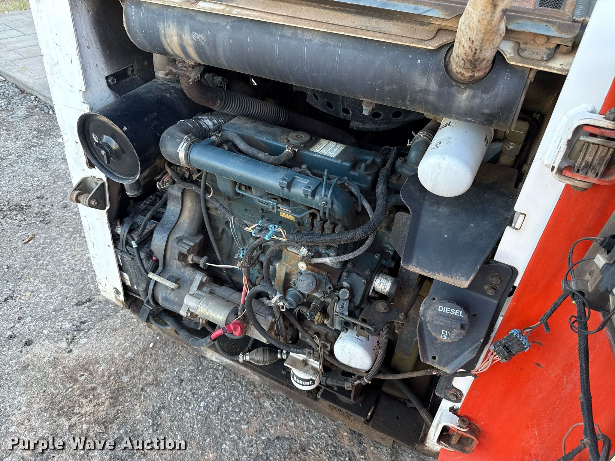 2004 Bobcat S150 skid steer loader. Hours: 6,193 on meter, Serial: 526916148, Unit #: 443. Engine Kubota V2203, Displacement: 2.2L, Cylinders: 4, Fuel type: Diesel. Transmission Hydrostatic. Operators station OROPS, Bucket control: Foot, Electronic Monitoring System panel. Features Auxiliary hydraulics, Quick coupler: Manual, Bucket Bobcat, Width: 67", Low profile, Cutting edge: Weld-on. Tires Size: 10-20, Solid. Notes Hood latch issues, difficult to open, Jump start required during on-site data collection. Connelly Paving & Ready-Mix. Oklahoma City, OK 73107