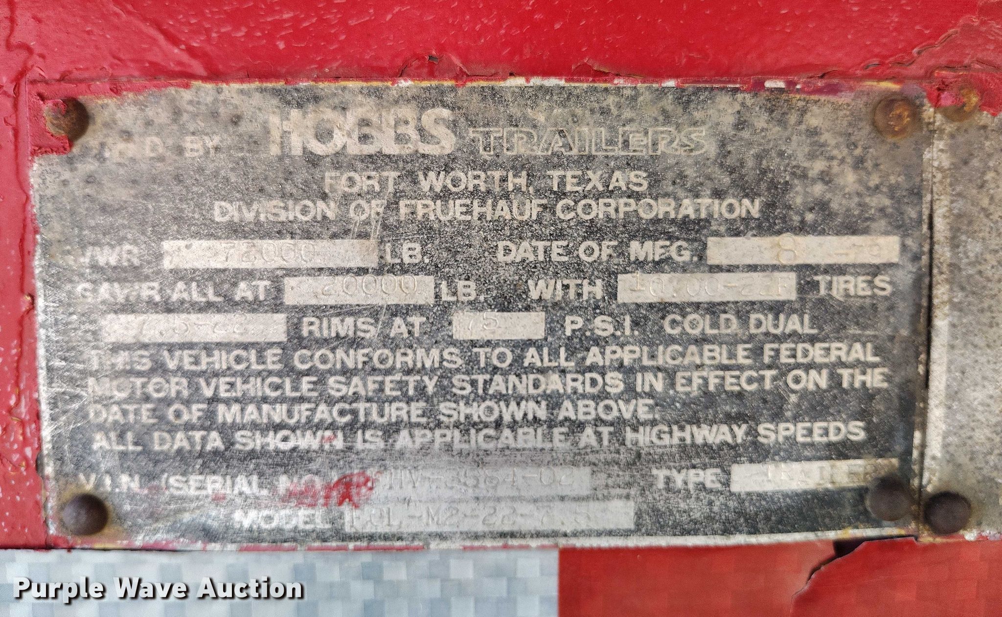 Purple Wave is selling a used End Dump Rock Trailer in Colorado. This item is a 1979 Hobbs FCL-M2-22-7.5 end dump trailer with the following: VIN: FHV358402