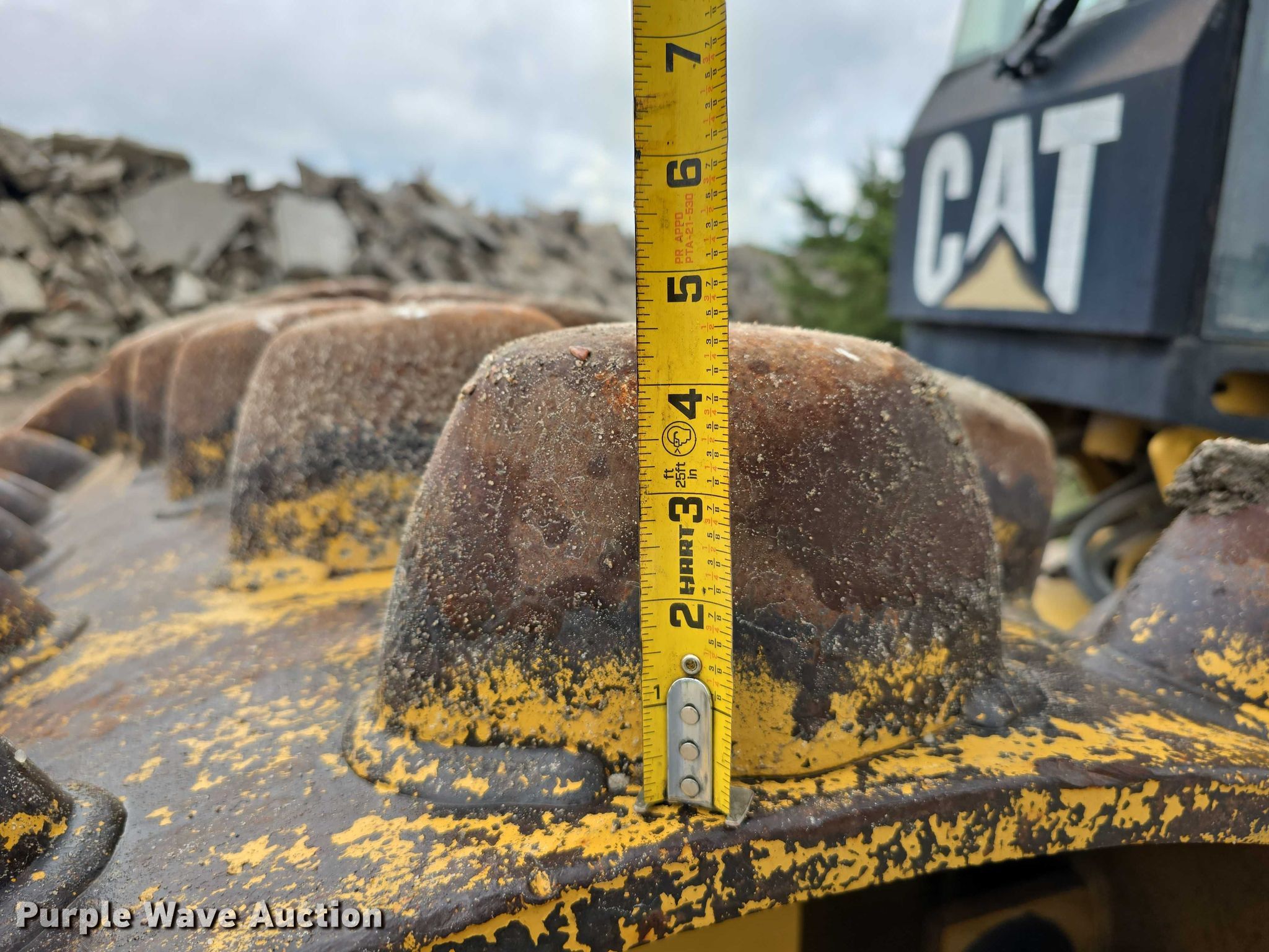 2005 Caterpillar CP-563E single drum vibratory roller. Hours: 3,274 on meter, Serial: CATCP563CCNT01000. Engine Caterpillar, Cylinders: 6, Fuel type: Diesel. Transmission Hydrostatic, Two speed travel. Operators station Enclosed cab, AC, Heat. Features Drum type: Padfoot, Vibratory system: Single, Two speed, Front drum Width: 84", Diameter: 60", Rear drum, Drum scrapers: Front. Tires Size: 23.1-26. Ben Pavelka Ent LLC. Hastings, NE 68901