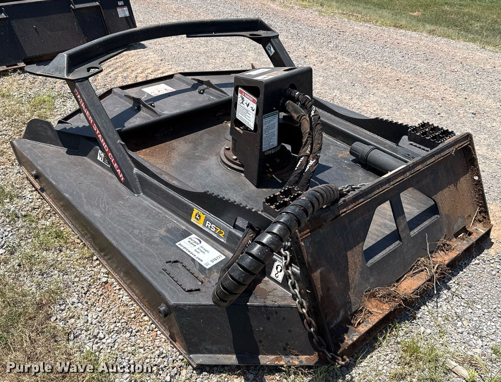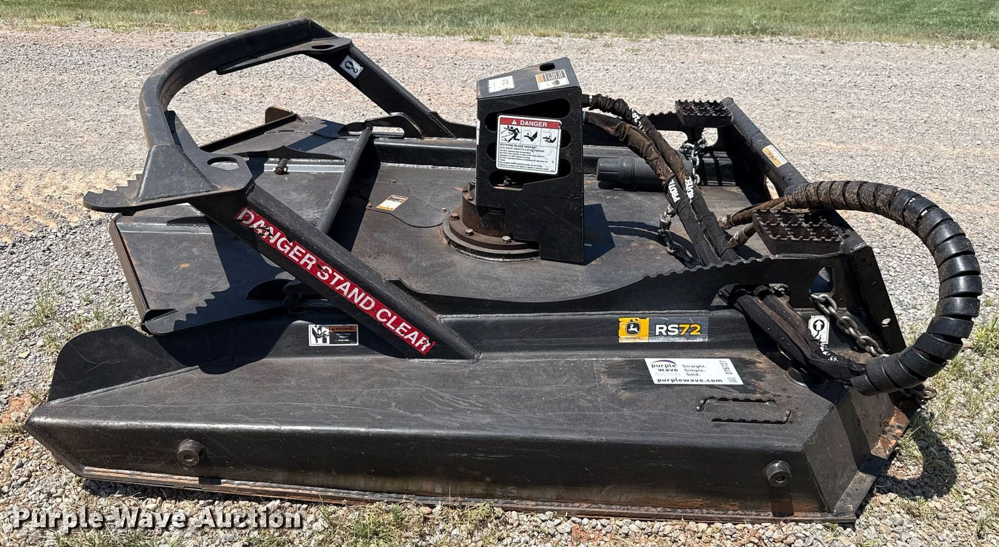 Purple Wave is selling a used Skid Steer Attach. in Oklahoma. This item is a John Deere RS72 skid steer brush mower with the following: Width: 72"
