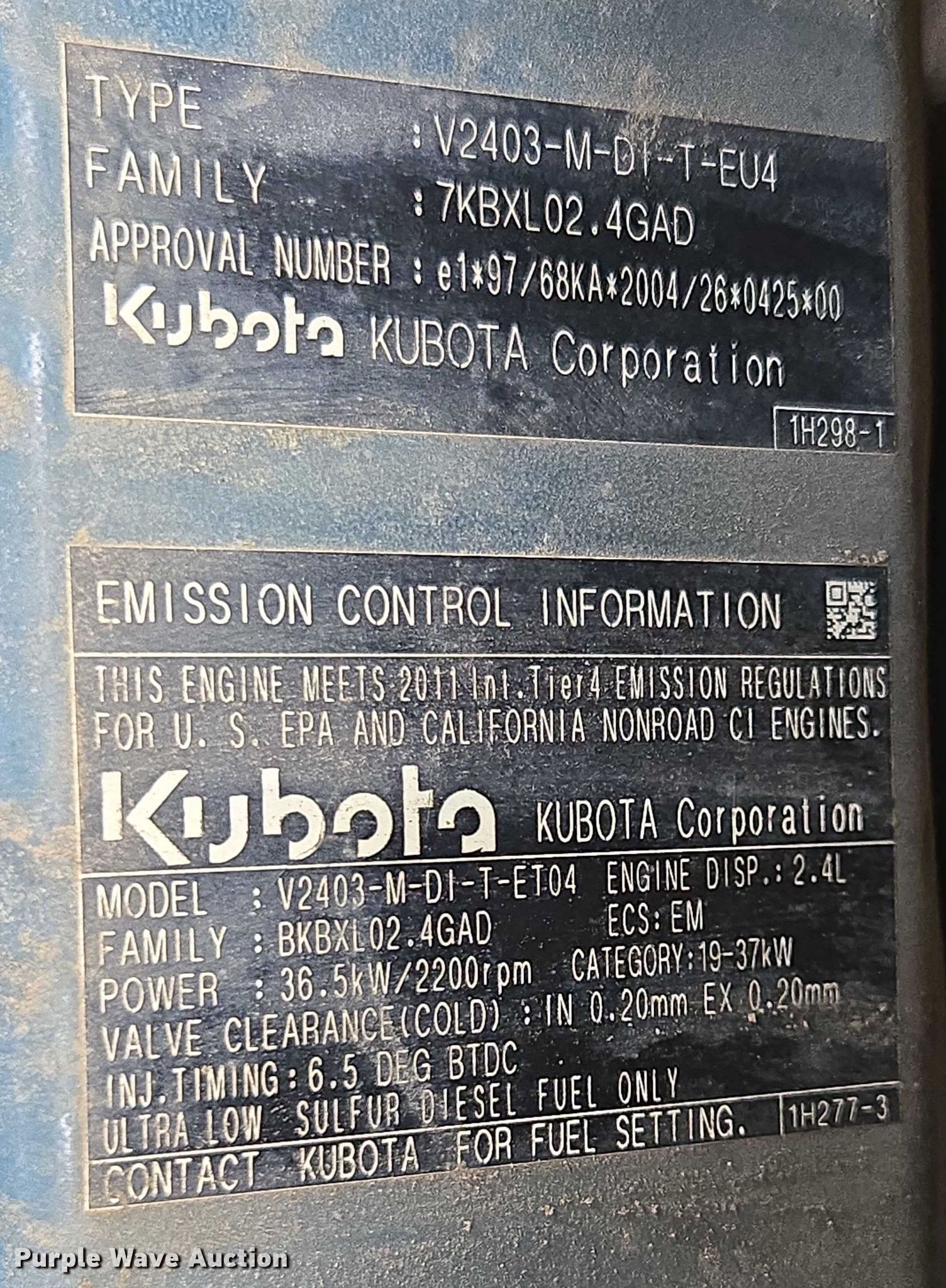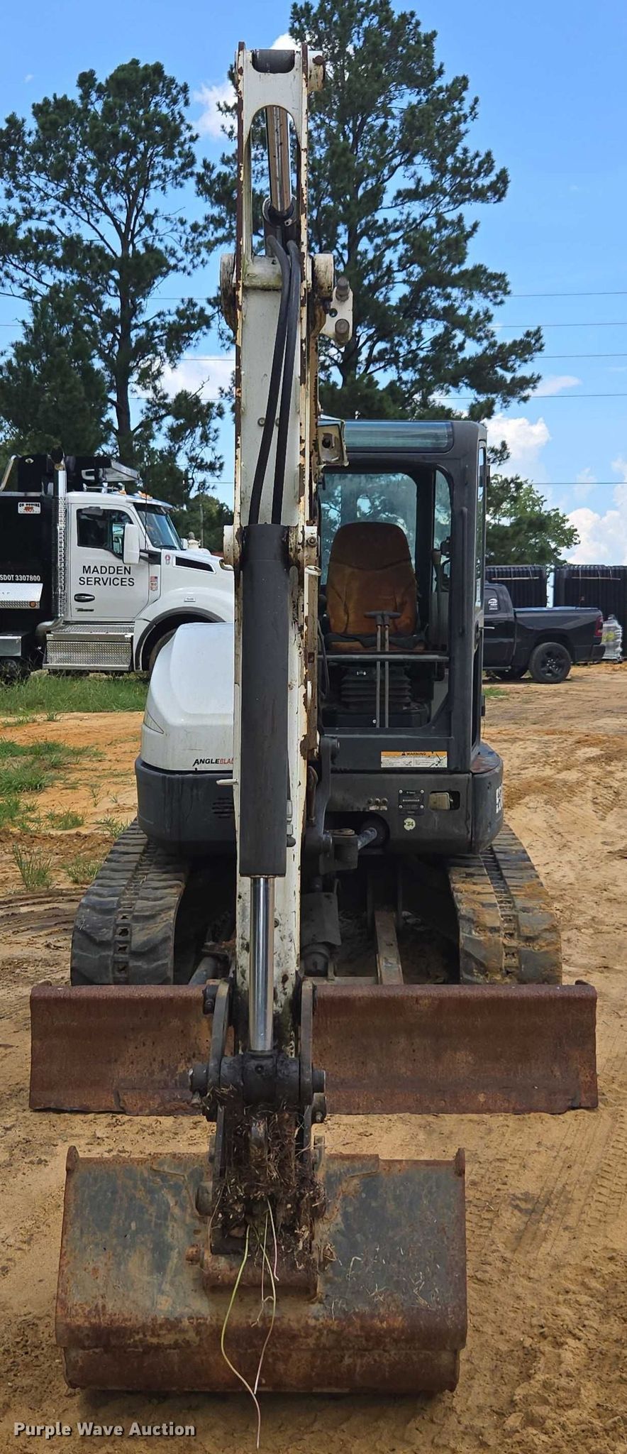 2011 Bobcat E50M mini excavator. Hours: 3,606 on meter, Serial: AG3N12212. Engine Kubota V2403-M-DI-T-ET04, Displacement: 2.4L, Cylinders: 4, Fuel type: Diesel, kW: 36.5. Transmission Hydrostatic, Two speed travel. Operators station Enclosed cab, AC, Heat, Pattern changer. Features Auxiliary hydraulics, Counter weights, Backfill blade Width: 77", Boom Swing, Stick Stick length: 6' 3", Quick coupler: Mechanical, Bucket Width: 34", Teeth: 6. Tracks Width: 16", Rubber. Notes Glass missing, Front window frame damaged. Madden Septic. Laurel Hill, FL 32567