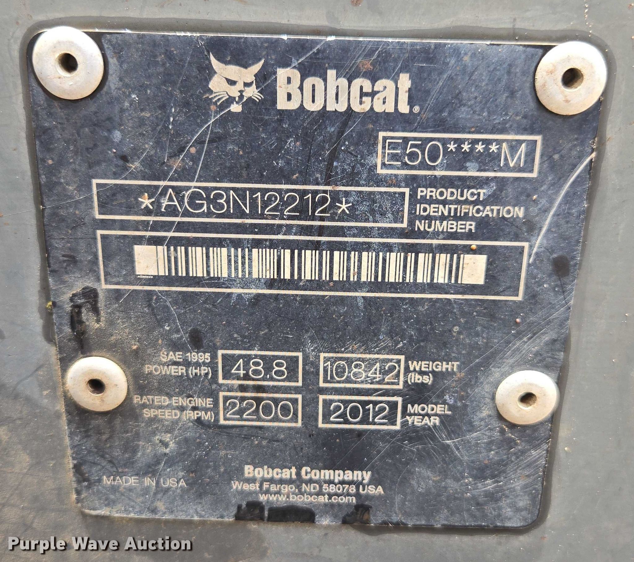 Purple Wave is selling a used Mini Excavator in Florida. This item is a 2011 Bobcat E50M mini excavator with the following: Hours: 3,606 on meter, Serial: AG3N12212