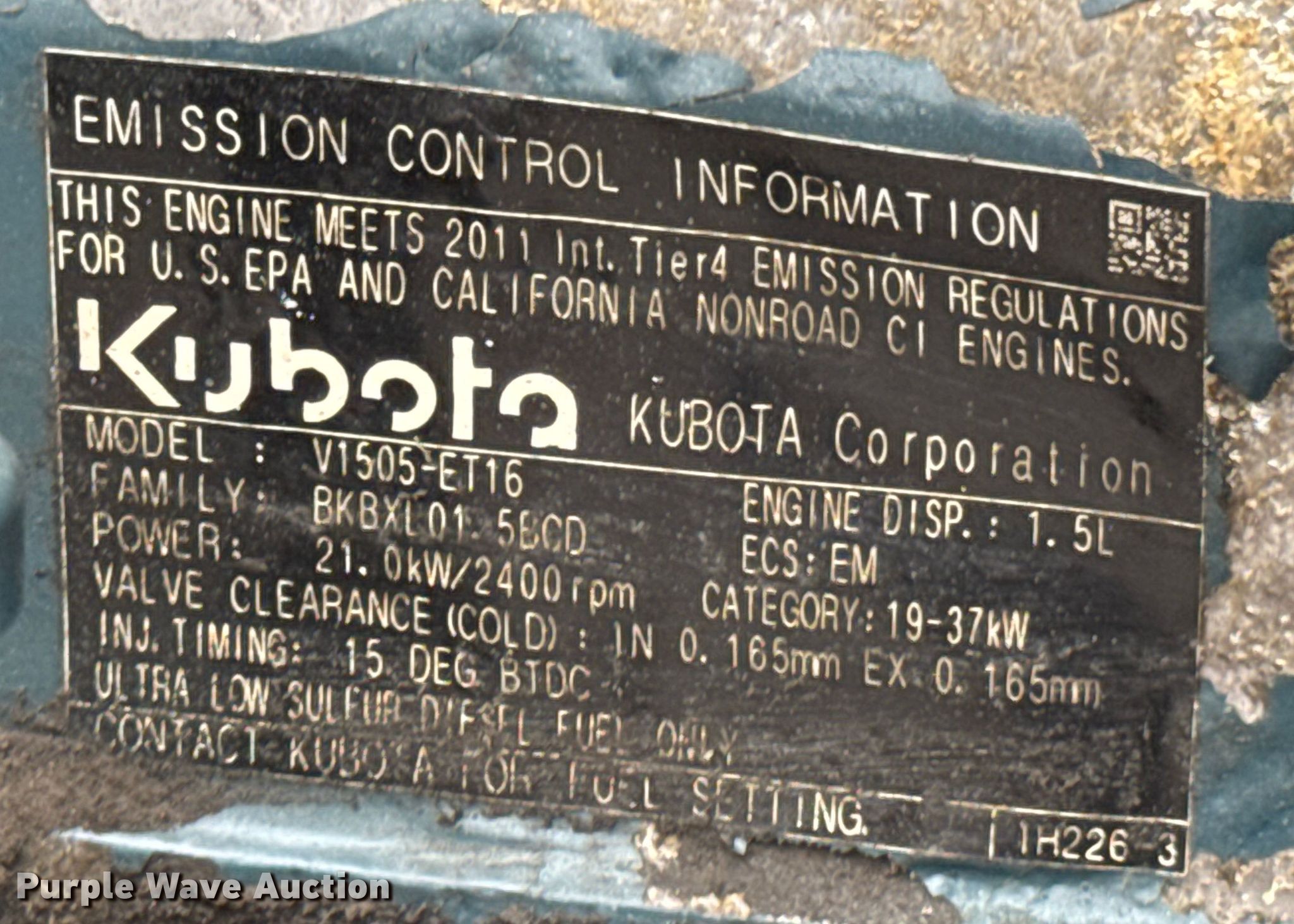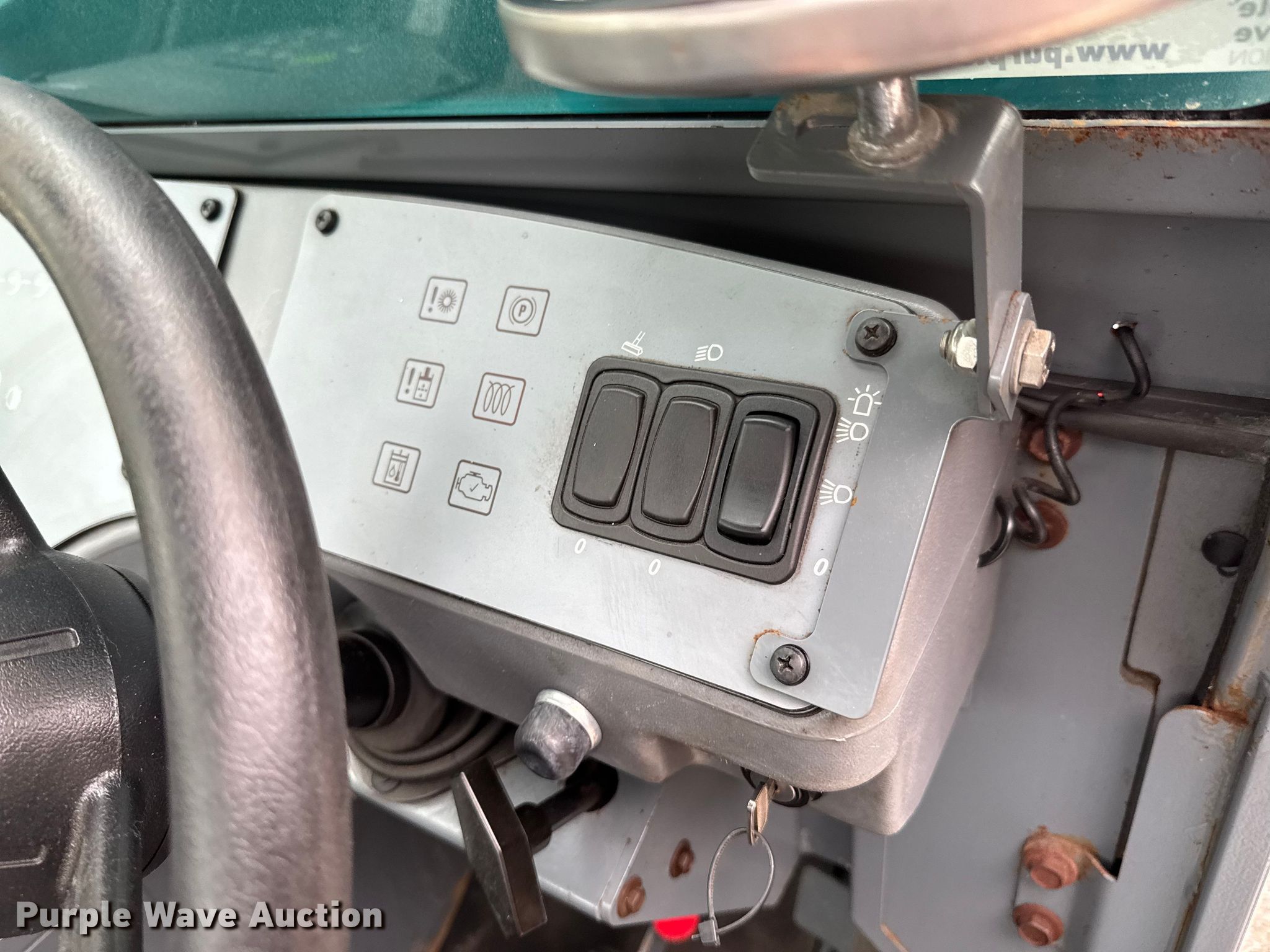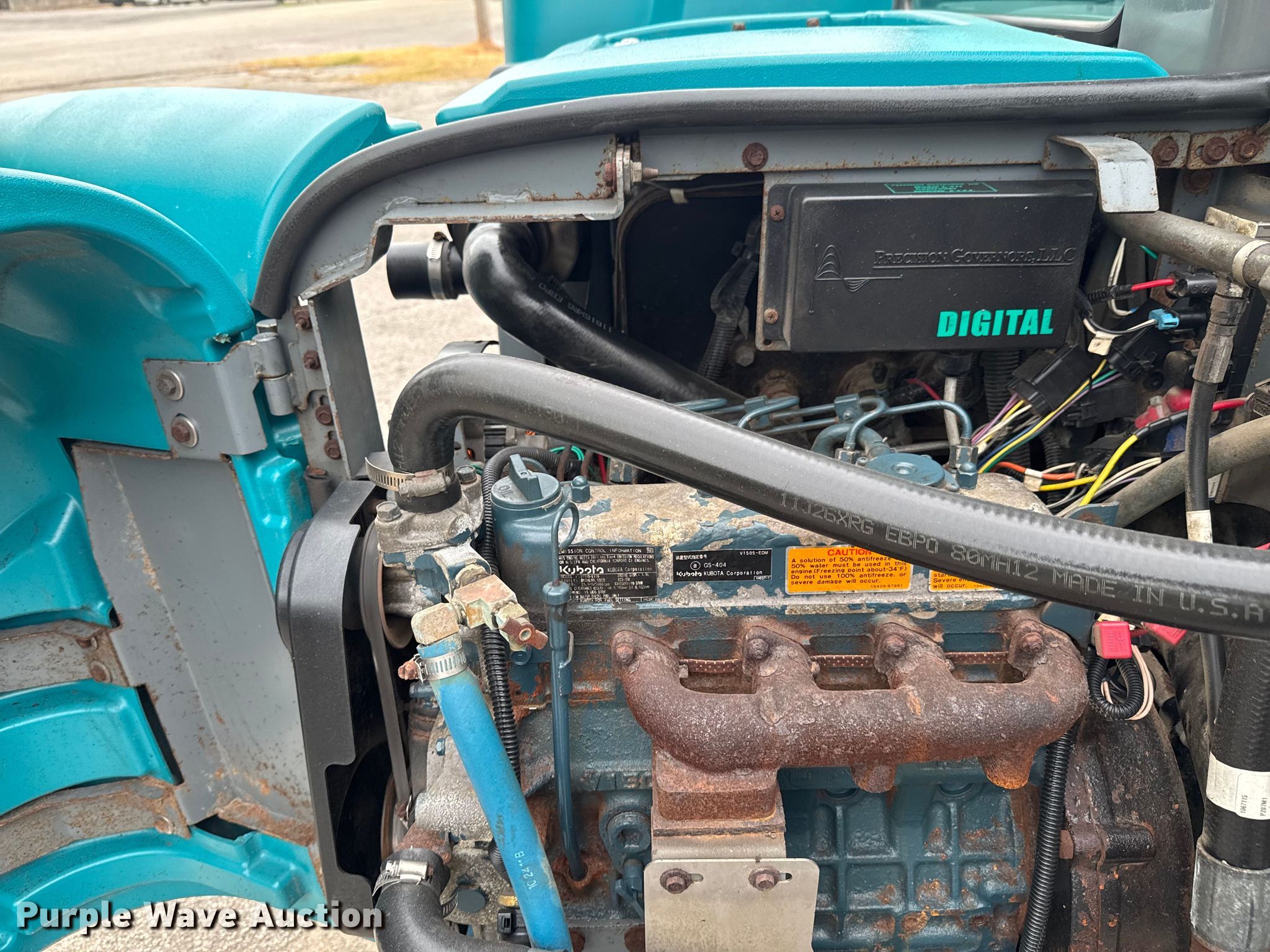 Tennant S30 sweeper. Hours: 525 on meter, Serial: S30-3337. Engine Kubota V1505-ET16, Displacement: 1.5L, Cylinders: 4, Fuel type: Diesel. Transmission Hydrostatic. Chassis GVWR: 5,700 lbs. Operators station Enclosed cab, AC, Heat. Features Broom Width: 60", Left gutter broom Diameter: 12", Right gutter broom Diameter: 12". Tires Size: 180/70-8/4.30. Collinsville, OK 74021