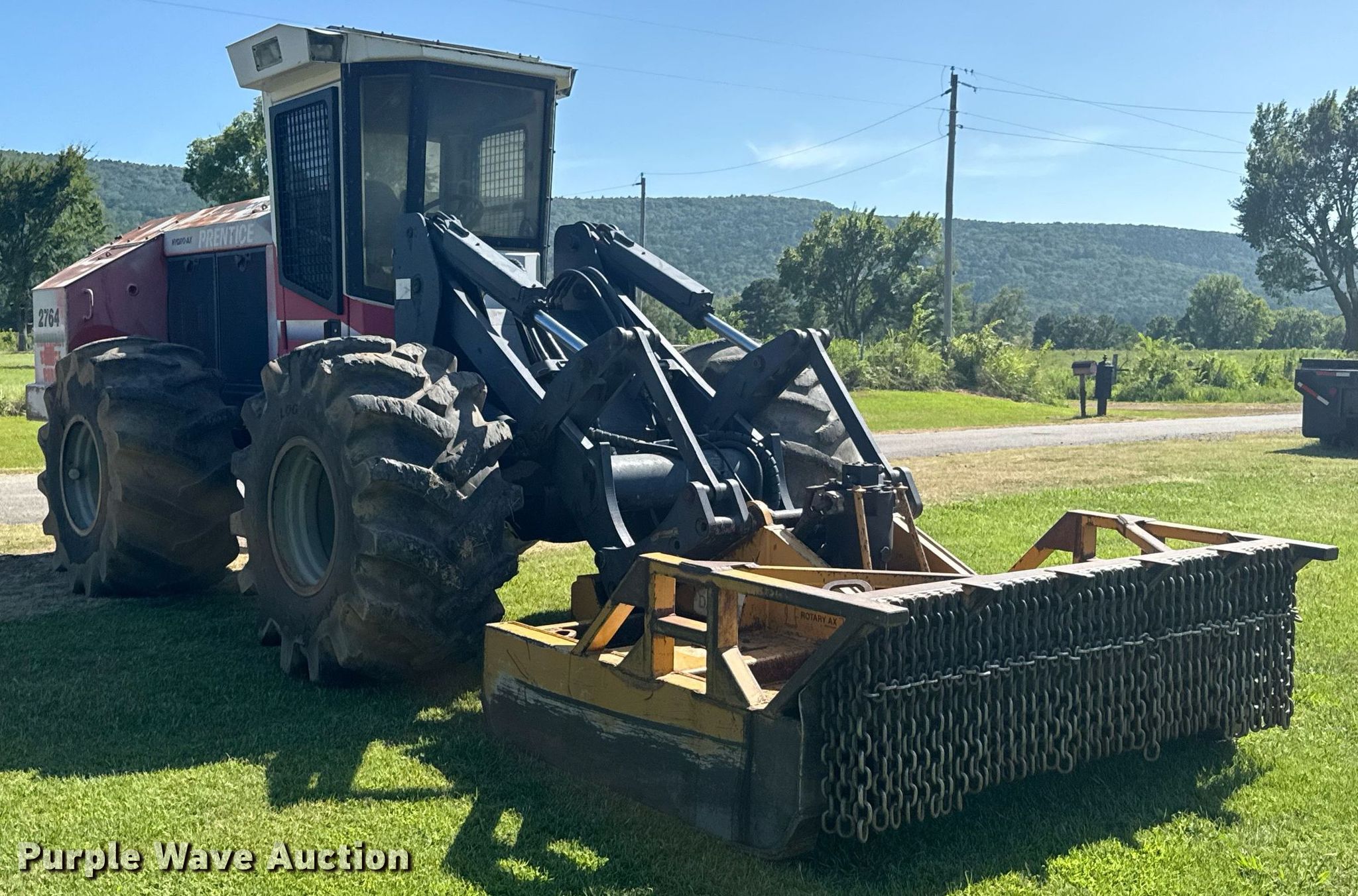 Purple Wave is selling a used Brush Mower in Oklahoma. This item is a Prentice Hydro Ax 2764 mulcher with the following: Hours: 3,194 on meter, Serial: PI19480