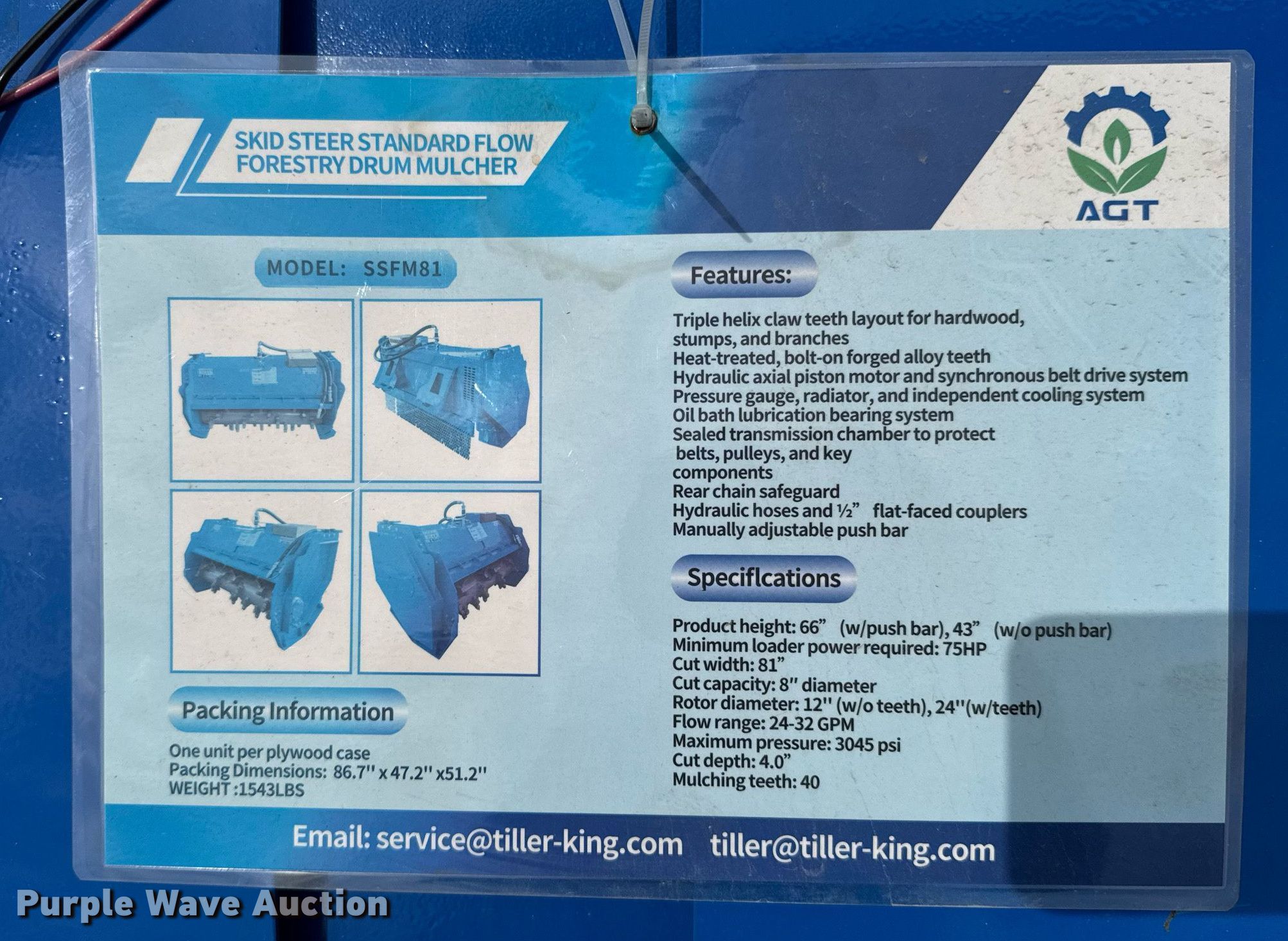 This 2025 AGT SSFM81 skid steer mulcher will sell to the highest bidder regardless of price.