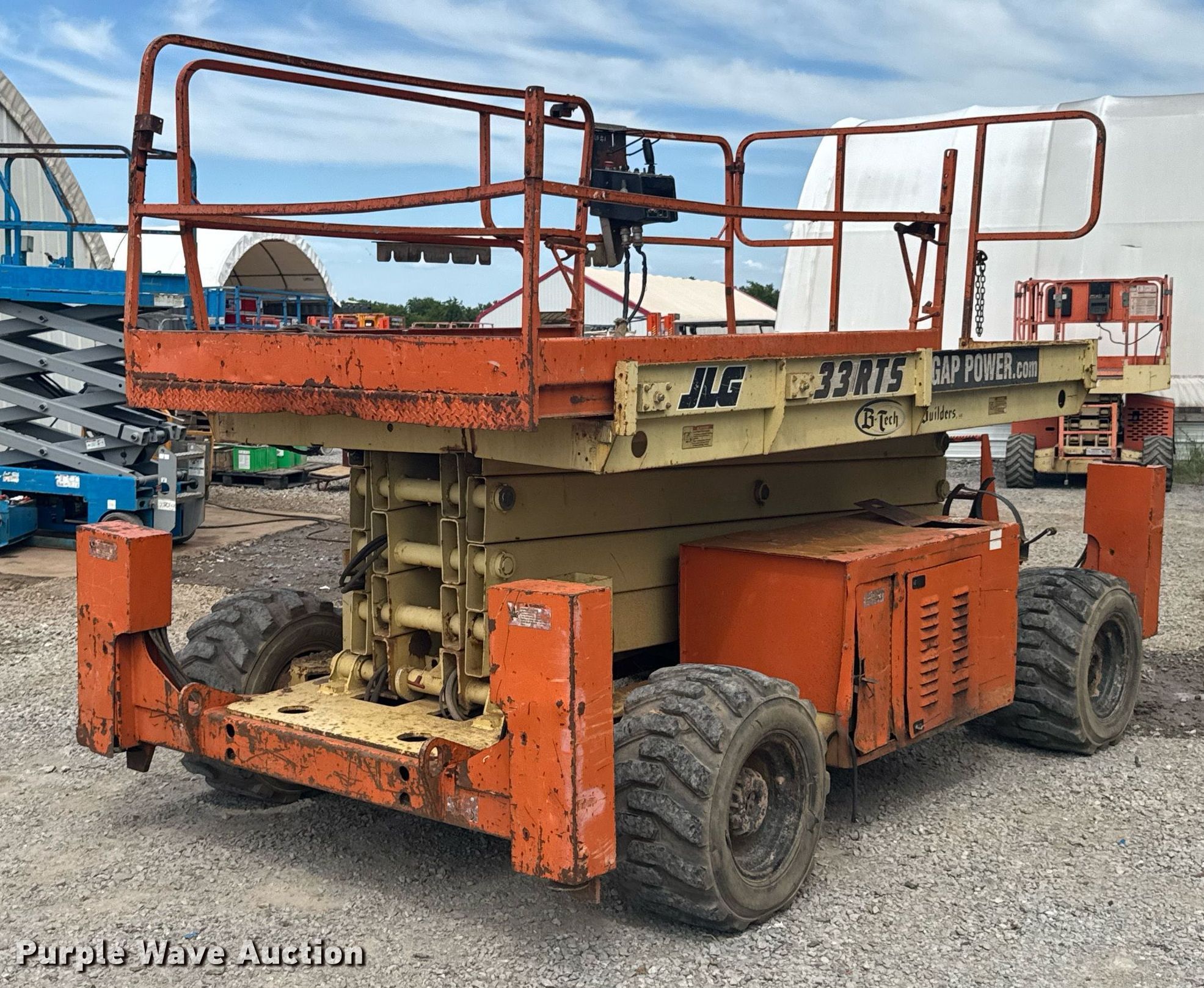 Purple Wave is selling a used Scissor or Vertical Lift in Oklahoma. This item is a 2001 JLG 33RTS scissor lift with the following: Hours: 5,542 on meter, Serial: 0200096797
