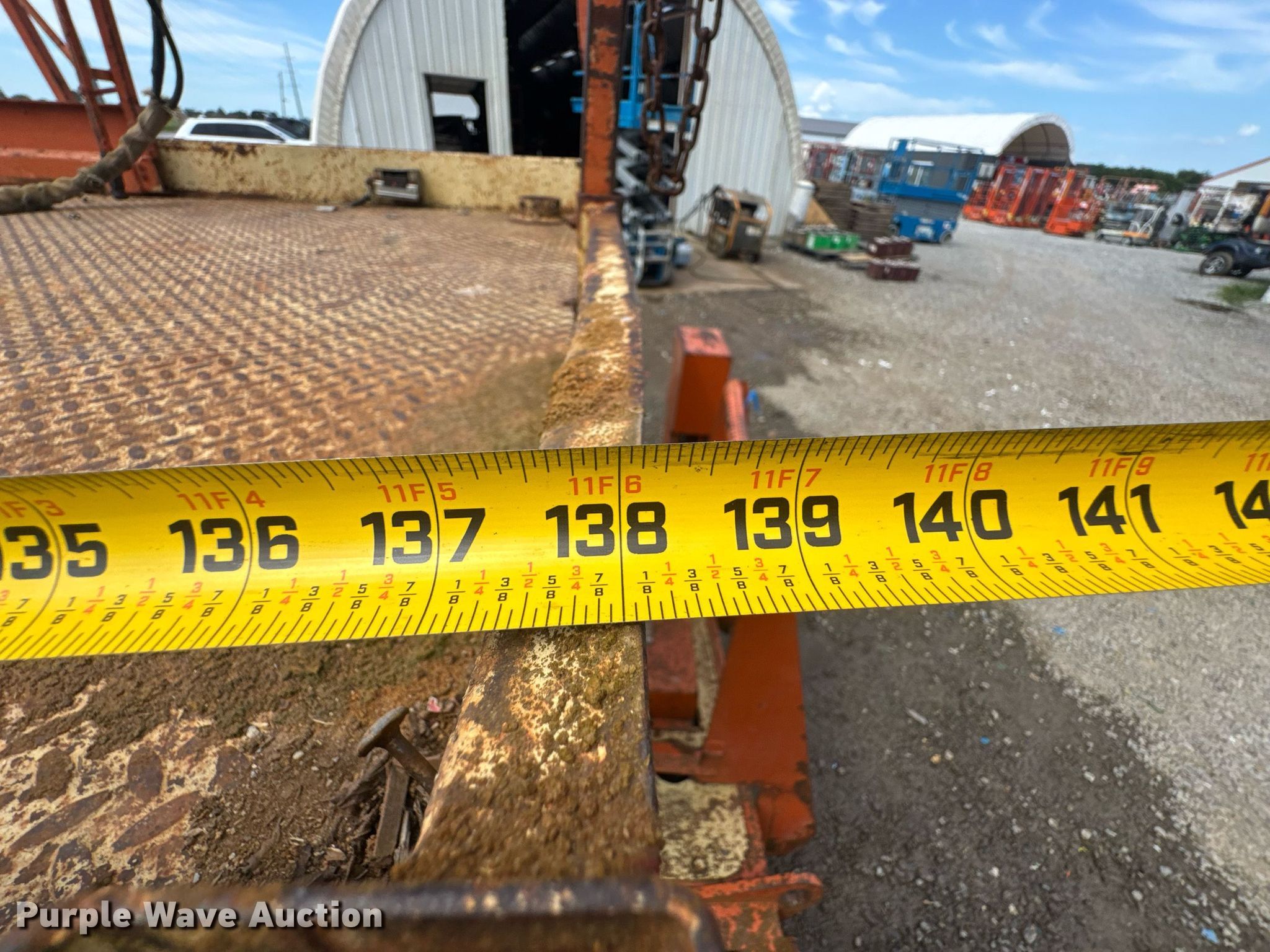 2001 JLG 33RTS scissor lift. Hours: 5,542 on meter, Serial: 0200096797. Engine Cylinders: 4, Fuel type: Dual fuel. Features Maximum lift capacity: 1,250 lbs, Maximum lift height: 33', Hydraulic outriggers, Platform: 138" L x 68" W, AC power outlet, Controls: Platform, Platform extensions: Manual. Tires Tire size: 31x15.5-15. Notes Non-operational outriggers. Chupp Industrial Marketing, Inc.. Chouteau, OK 74337