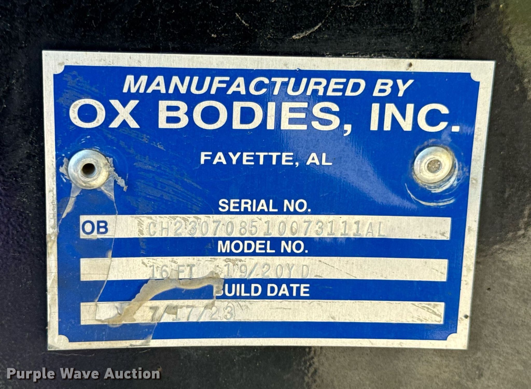 2024 Mack Granite GR64F dump truck. Miles: 54,992 on odometer, Hours: 1,811 on meter, Miles or hours may vary, unit still in use, VIN: 1M2GR2GC1RM039441. Engine Mack MP7-425M, Serial: 647510, Displacement: 10.8L, Cylinders: 6, Fuel type: Diesel, HP: 425, Engine brake. Transmission Automated manual. Chassis Axles: Tandem, Differential lock: Inter-axle, Suspension: Camelback, Brakes: Air, PTO, GVWR: 62,000 lbs FAWR: 18,000 lbs, IAWR: 22,000 lbs, RAWR: 22,000 lbs. Interior AC, Heat, Heated mirrors, Power windows, Cruise control, Brake controller. Features Bed Dump bed, Ox Bodies 16FT 19/20YD, Serial: OBCH230708510073111AL, Length: 16', Width: 98", Side height: 52", Bed type: Steel, Roll tarp, Ram: Single, End gate: Air operated. Tires Front: 425/65R22.5, Rear: 11R24.5. Notes Standard Mack heavy duty coverage valid until July 26, 2028 or 500,000 miles, Warranty and build sheet information available upon request to [email protected], Two-way radio not included, Windshield chipped or cracked. Missouri title. Title has a lien that will be released following the close of the auction. Title distribution may be delayed up to 30 days from verification of funds. Miller County, MO. Tuscumbia, MO 65082