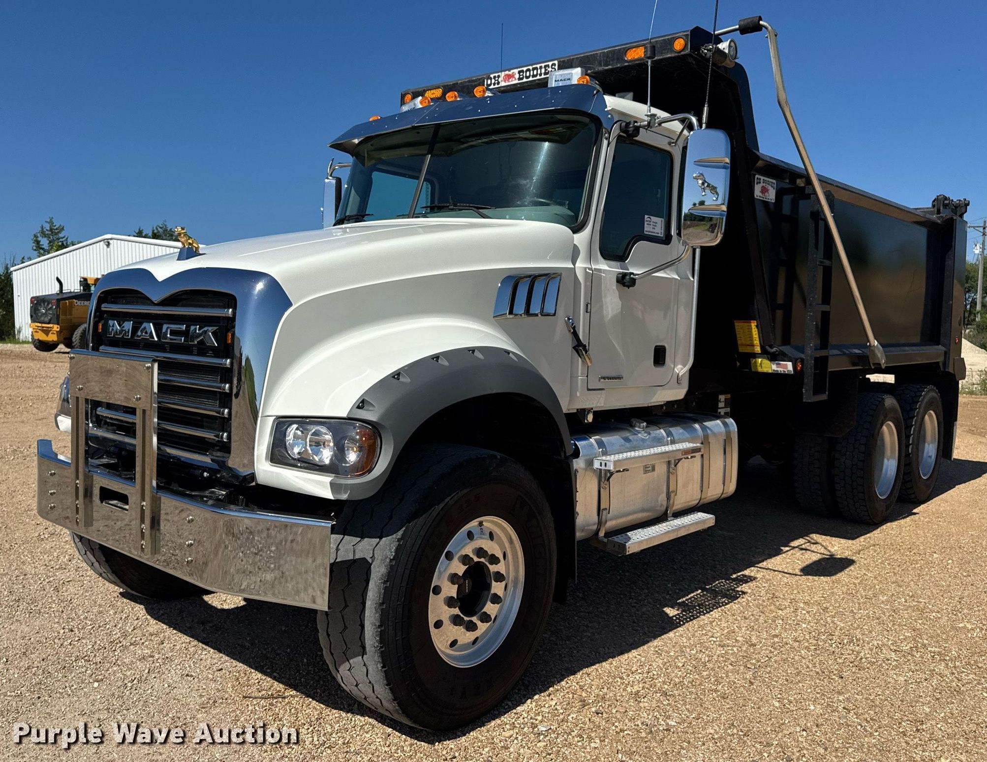 Purple Wave is selling a used Construction Dump Truck in Missouri. This item is a 2024 Mack Granite GR64F dump truck with the following: Miles: 41,805 on odometer, Hours: 1,402 on meter, Miles or hours may vary, unit still in use, VIN: 1M2GR2GCXRM039437