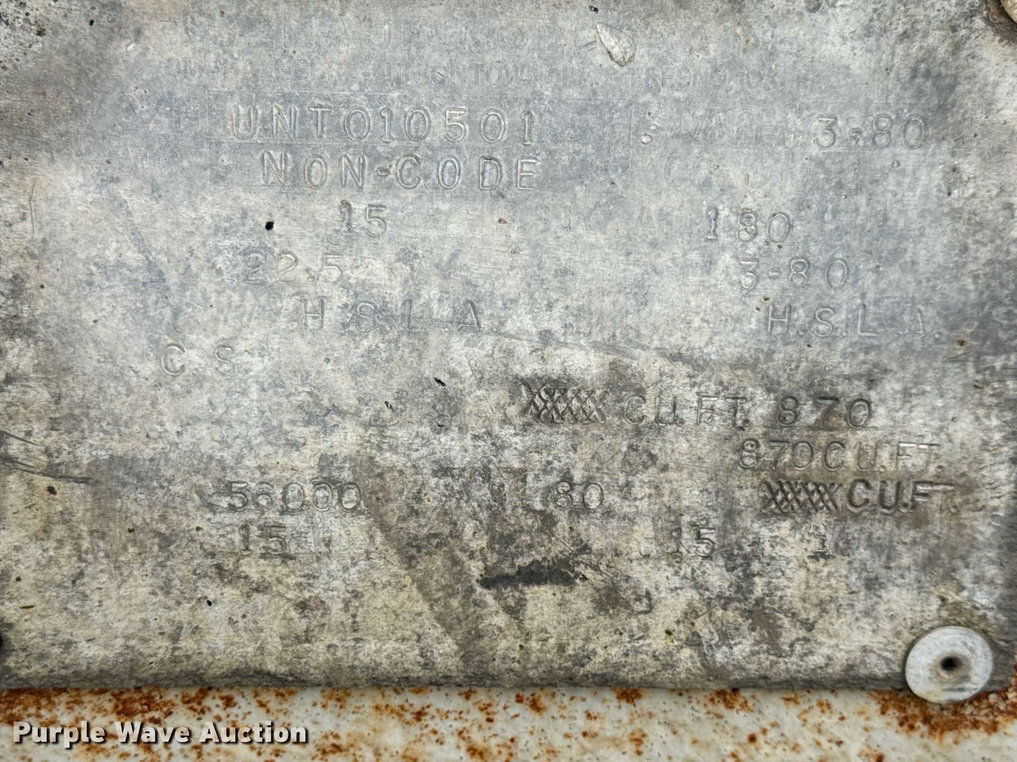 Purple Wave is selling a used Tank Trailer in Missouri. This item is a 1980 Frue pneumatic dry bulk trailer with the following: VIN: UNT010501, Unit #: 87-324