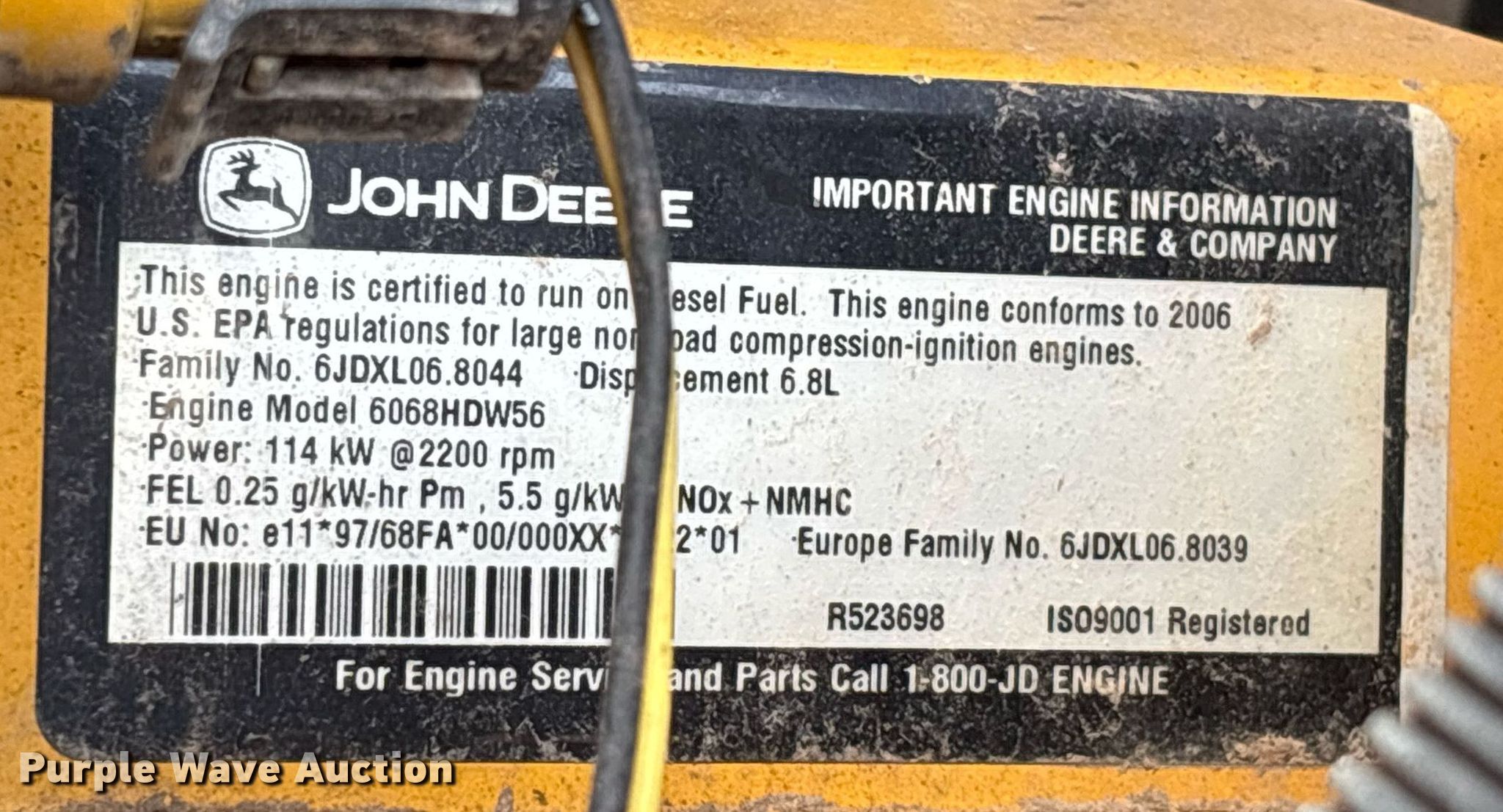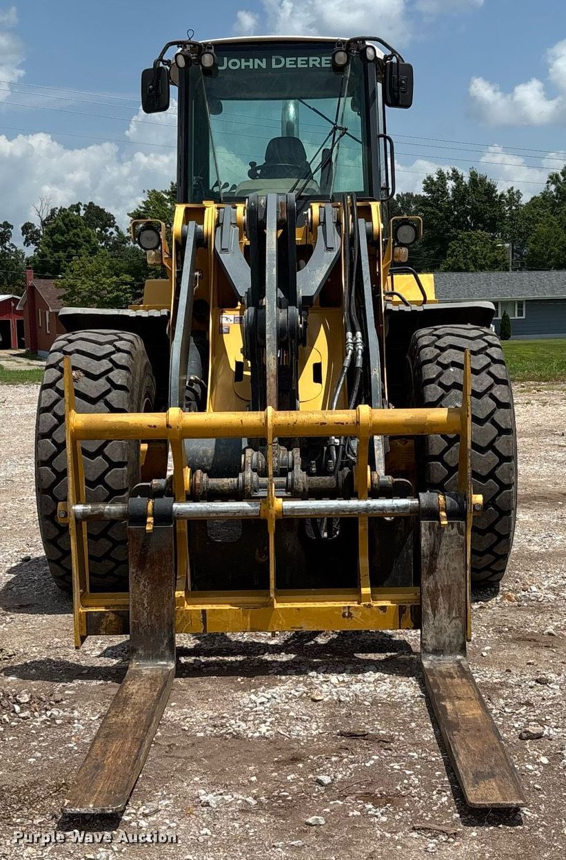 2006 John Deere 544J high lift wheel loader. Hours: 11,590 on meter, Miles or hours may vary, unit still in use, Serial: DW544JP606695, Unit #: 2. Engine John Deere 6068HDW56, Displacement: 6.8L, Cylinders: 6, Fuel type: Diesel. Transmission Powershift, 4F - 3R. Chassis Differential lock. Operators station Enclosed cab, AC, Heat, Bucket controls: Two-lever, Ride control. Features Auxiliary hydraulics: Front, Quick coupler: Hydraulic, Counter weights, Self- leveling, Forks John Deere 444-624, Length: 60". Tires Size: 20.5R25. Perryville Stave Company Inc.. Perryville, MO 63775