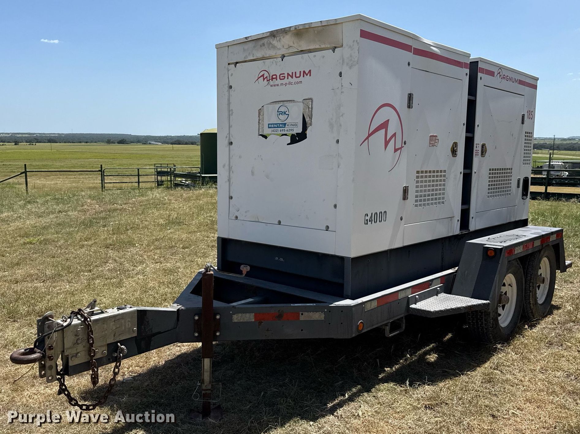 Magnum MMG185 generator. Hours: 12,239 on meter, Serial: 1204299. Engine John Deere 6068, Displacement: 6.8L, Cylinders: 6, Fuel type: Diesel. Features Generator Magnum MMG185, kVA: 202, kW: 162, Phase: Single, Three, Electric start, Fuel tank. Trailer 18' L x 86" W, Hitch: Pintle, Suspension: Torsion, Brakes: Electric, Axles: Tandem, Tire size: 235/80R16. This is worksite support equipment and will not come with a title. Transfer of ownership documentation will be a bill of sale. Florence, TX 76527