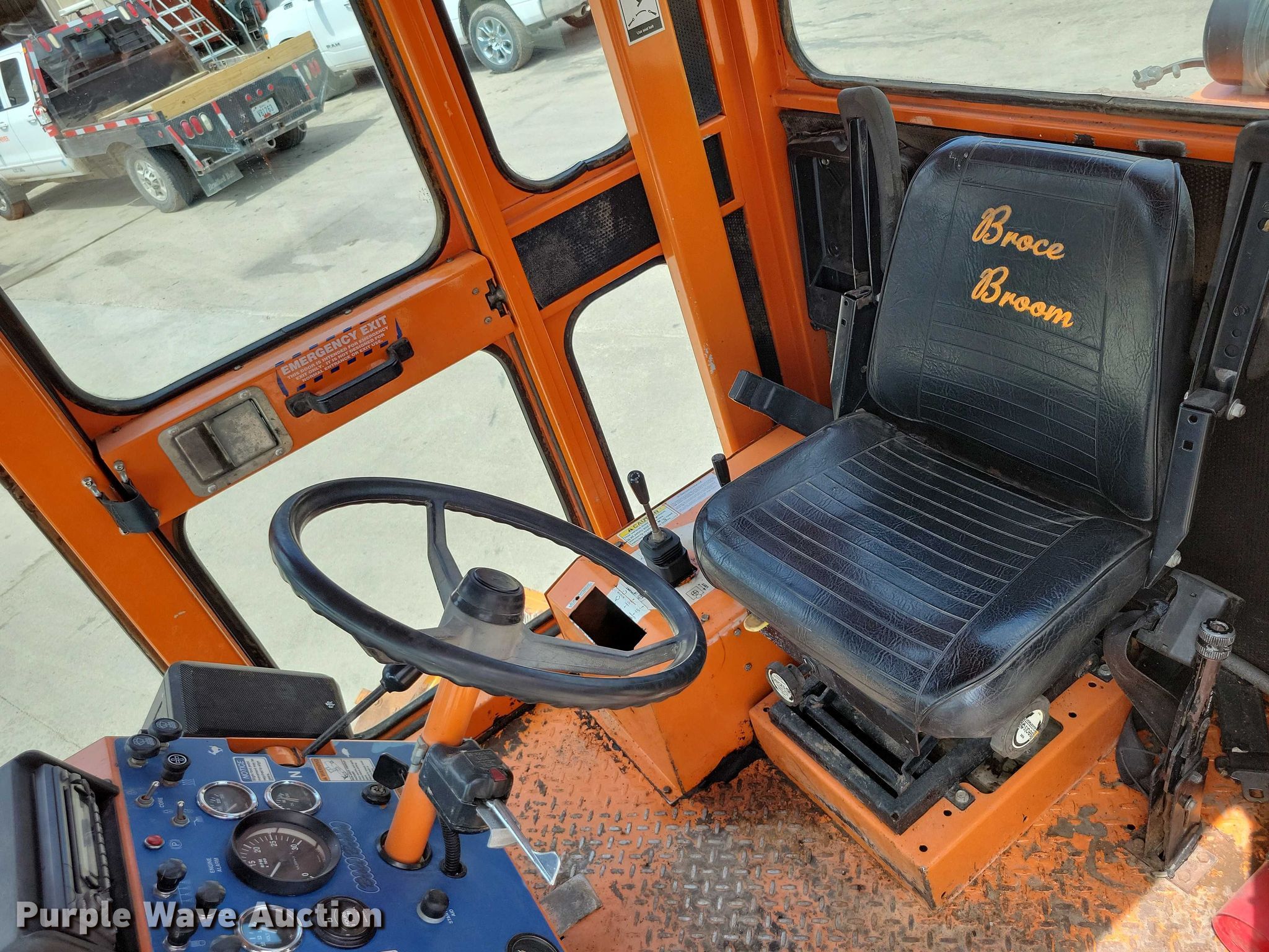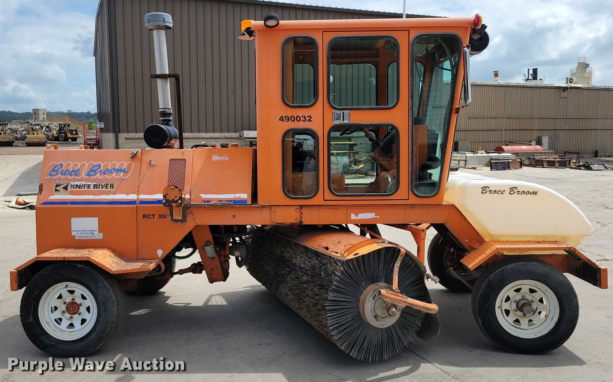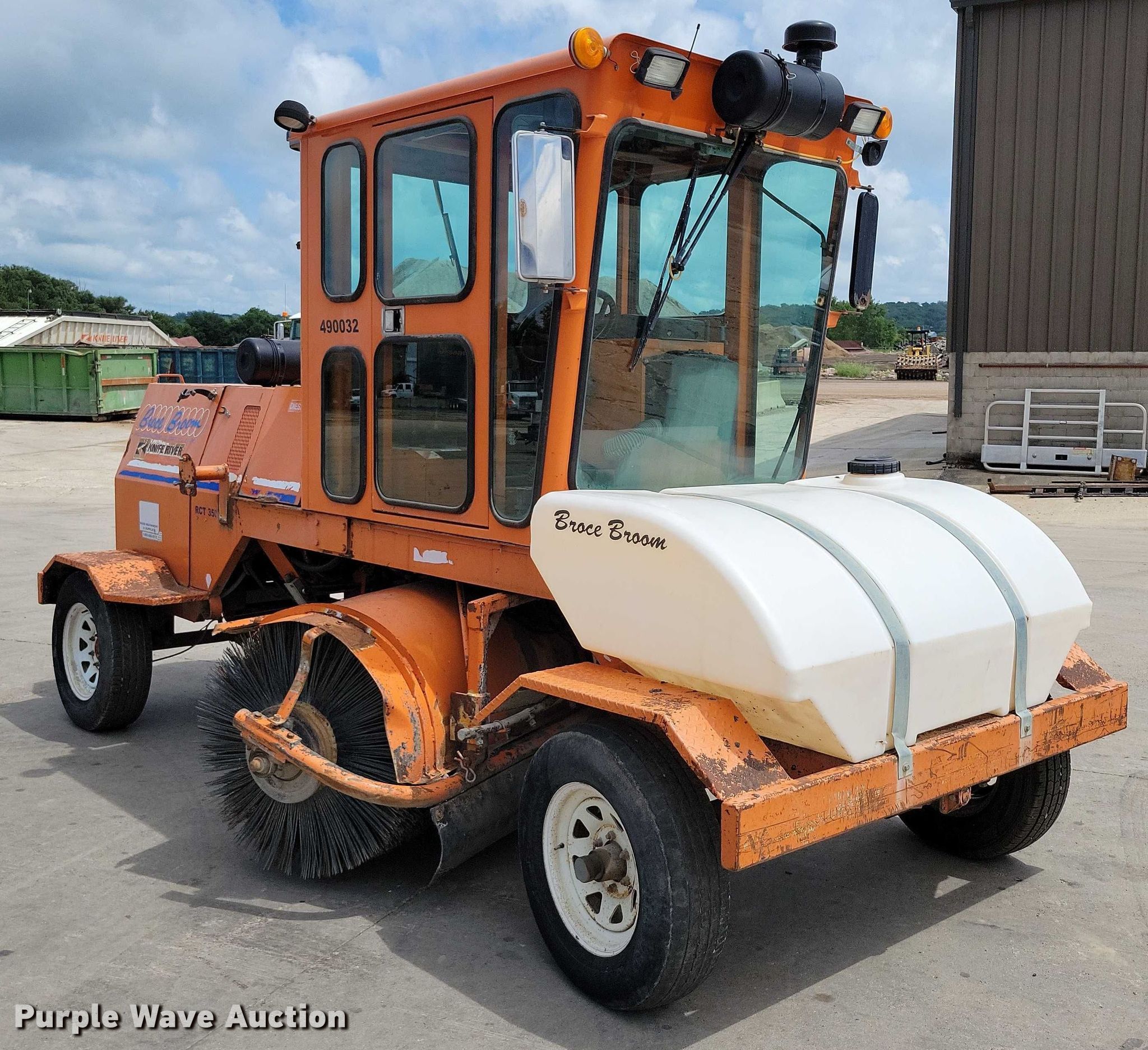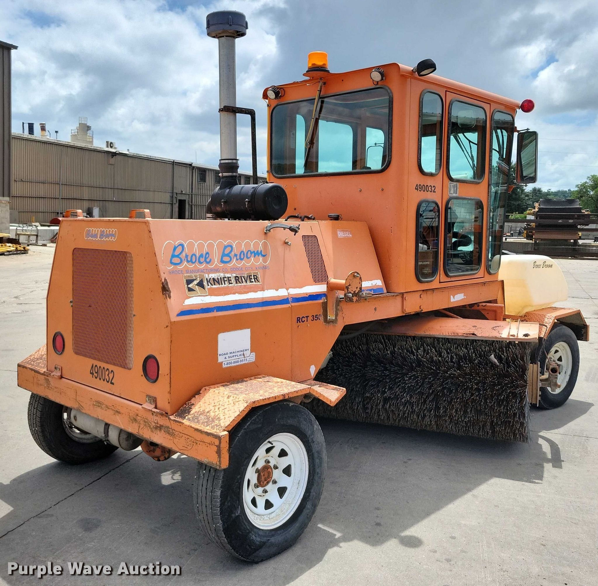 2010 Broce Broom RCT350 broom. Hours: 4,077 on meter, Serial: 406891. Engine Cummins B, Displacement: 3.9L, Cylinders: 4, Fuel type: Diesel. Transmission Hydrostatic, Speed: 2. Chassis Brakes: Hydraulic. Operators station Enclosed cab, AC. Features Broom Width: 96", Water spray system. Tires Front: 225/75R16C, Rear: LT225/75R16. Knife River Corporation. Sioux City, IA 51105