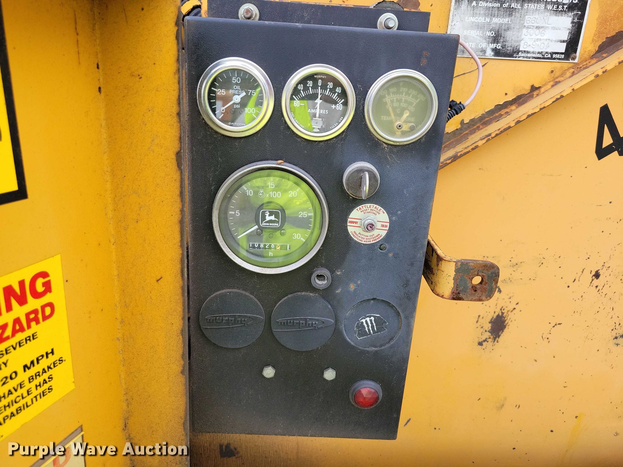 2004 Lincoln 660XL windrow elevator. Hours: 10,827 on meter, Serial: 3006. Engine John Deere Power Tech, Cylinders: 4, Fuel type: Diesel. Features Hitch: Pintle, Pickup conveyor: 5'. Tires Size: 750X15 NHS. Notes Unknown operating condition. Knife River Corporation. Sioux City, IA 51105