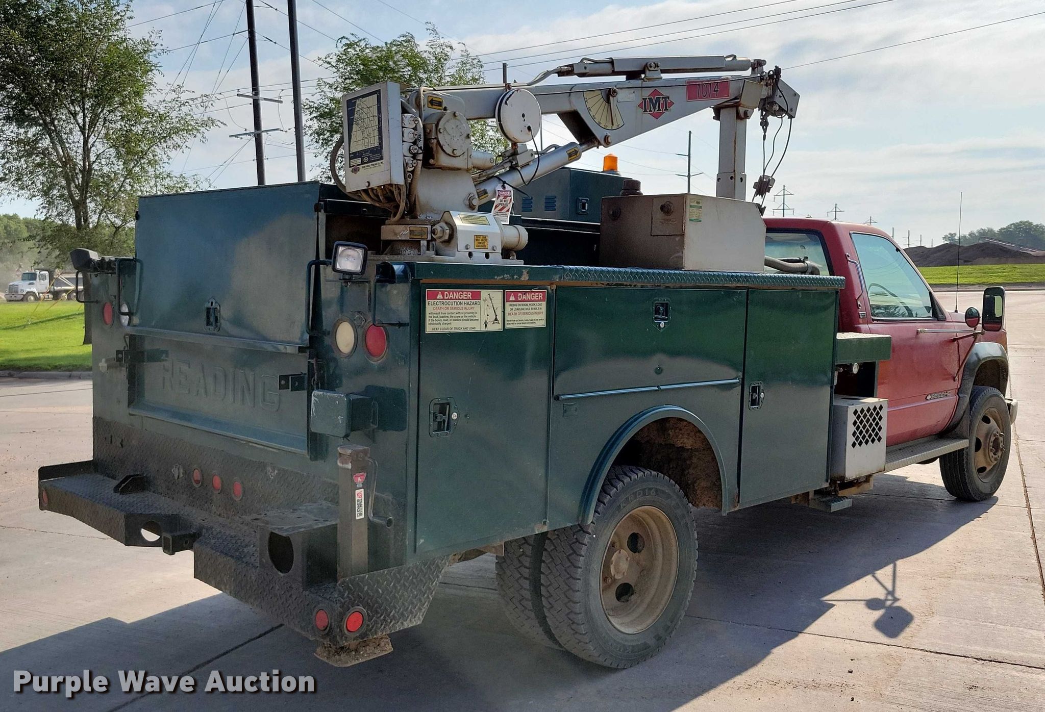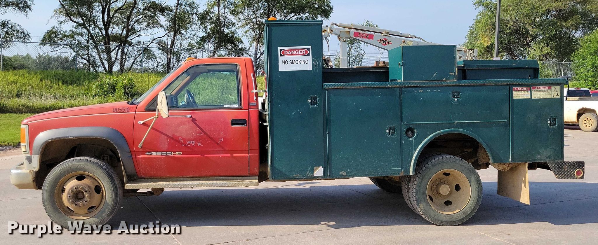 1993 Chevrolet C3500 utility bed pickup truck. Miles: 197,763 on odometer, VIN: 1GBKC34N3PJ109309. Engine Displacement: 7.4L V8 OHV, Cylinders: 8, Fuel type: Gas. Transmission Manual, Speed: 5. Chassis Axles: Single, Suspension: Spring, Brakes: Hydraulic. Interior AC, Heat, Auxiliary controls. Features Bed Utility bed, Reading, Length: 11', Width: 90", Crane IMT 1014, Maximum boom length: 15' Maximum lift capacity: 3,200 lbs.. Tires Size: 225/70R19.5. Notes Unknown operating condition of crane. South Dakota title. Title distribution may be delayed up to 14 days from verification of funds. Concrete Materials - Sweetman Const.. Sioux Falls, SD 57107