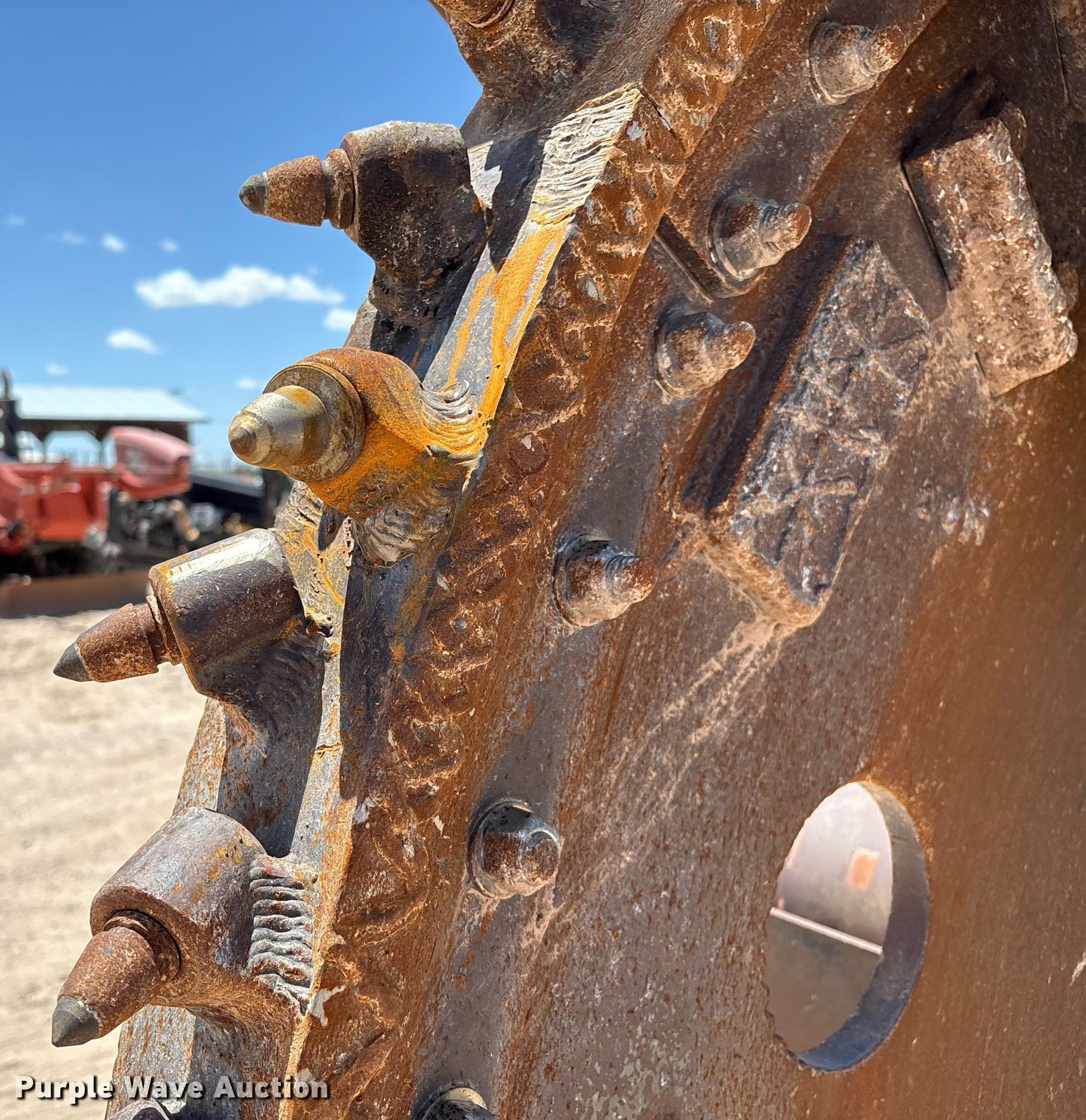 2006 Ditch Witch RT115 rock saw. Hours: 296 on meter, Serial: CMWRT115C60000188. Engine John Deere 4045TF275, Serial: PE4045T601896, Displacement: 4.5L, Cylinders: 4, Fuel type: Diesel, kW: 82. Transmission Hydrostatic, Two speed travel. Chassis Four wheel drive, Differential lock. Operators station Canopy. Features Model: Hydra Wheel, Rock wheel Model: HB-1036B, Wheel diameter: 88", Cutting width: 4", Backfill blade Width: 80". Tires Size: 33x18.00-20. Shalom Equipment LLC. Hobbs, NM 88240