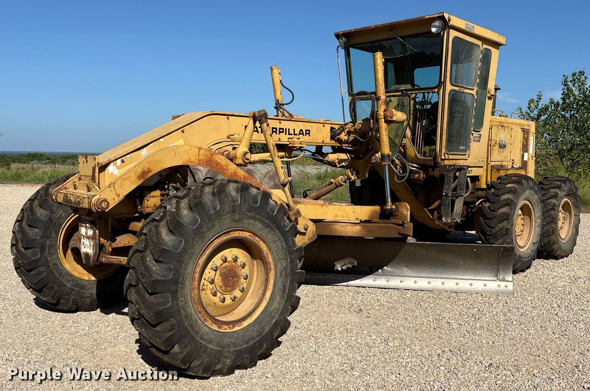 Purple Wave is selling a used Motor Grader in Oklahoma. This item is a 1982 Caterpillar 120G motor grader with the following: Hours: 2,723 on meter, Serial: 87V06228