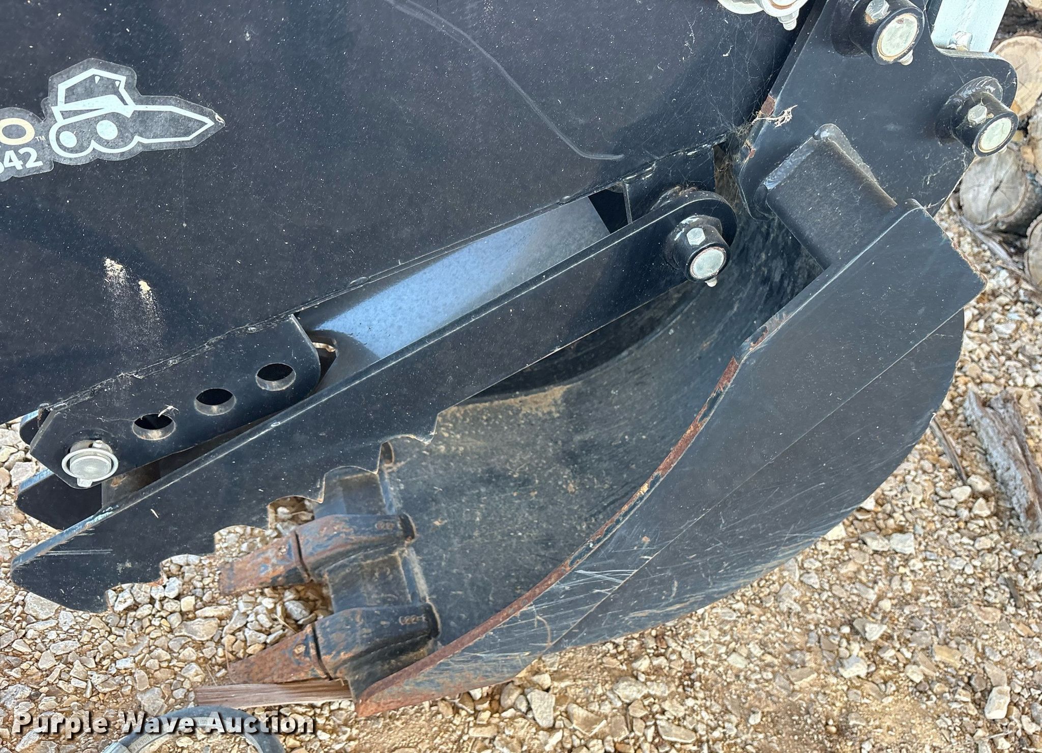 Purple Wave is selling a used Skid Steer Attach. in Oklahoma. This item is a Eagle HBU3510-ORB-DK skid steer backhoe with the following: Width: 18", Cutting edge: Bolt-on, Teeth: Bolt-on, Thumb: Mechanical