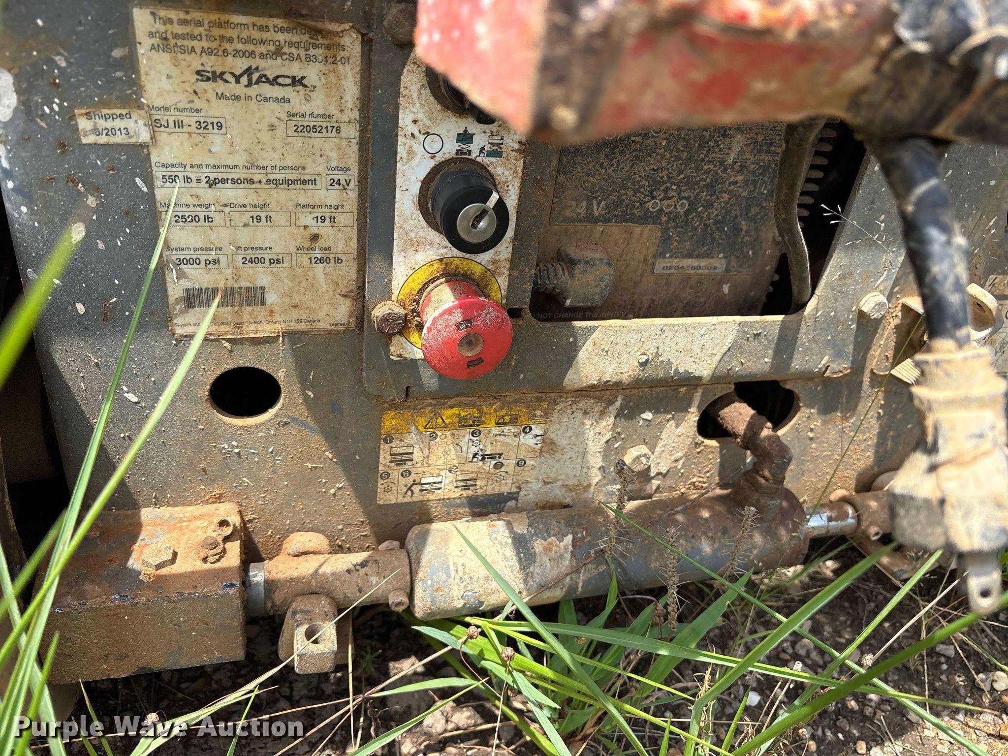 2013 Sky Jack SJIII 3219 scissor lift. Hours: 189 on meter, Serial: 22052176, Unit #: 2925. Electric Motor Volts: 24. Features Maximum lift capacity: 550 lbs, Maximum lift height: 19', Platform: 65" L x 28" W, Controls: Platform, Platform extensions: Manual. Tires Tire size: 12x4, Solid. Tatum Excavating Company. Texarkana, TX 75501
