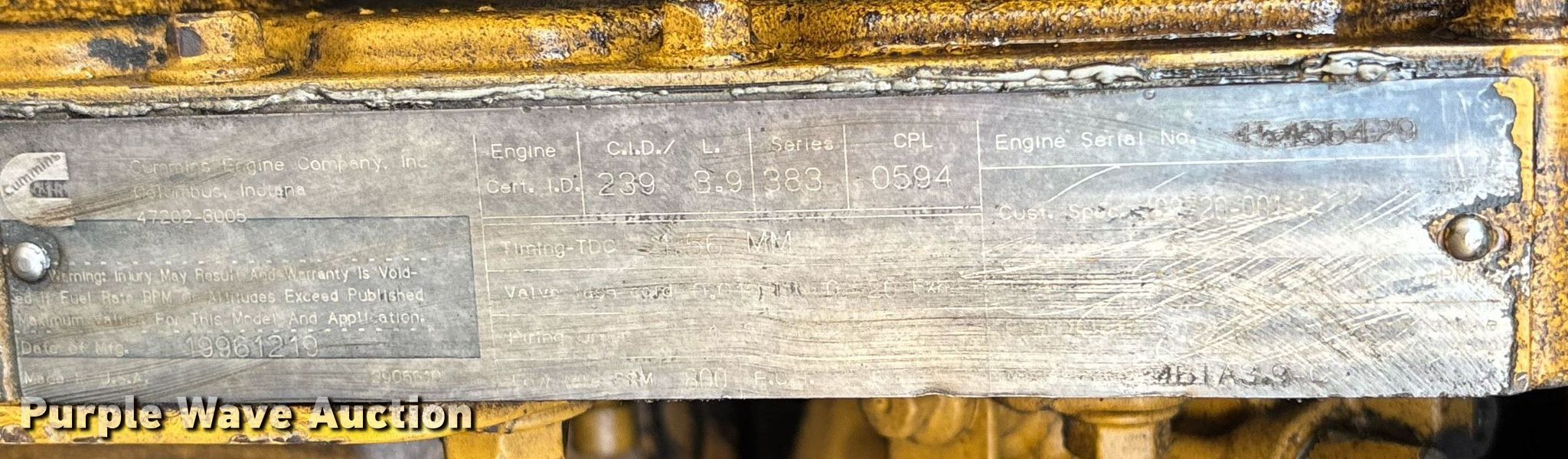 1997 Vermeer Flex track 114 vibratory cable plow. Hours: 1,786 on meter, Serial: 1VRK102E2V1000291. Engine Cummins, Serial: 4546429, Displacement: 3.9L, Cylinders: 4, Fuel type: Diesel. Transmission Hydrostatic, Two speed travel. Features Attachments Plow Vermeer, Vibratory, Depth: 54", Front cable reel Width: 60".. Tracks Width: 26", Grouser pads: Single, Bottom rollers: 6. Garden City, KS 67846