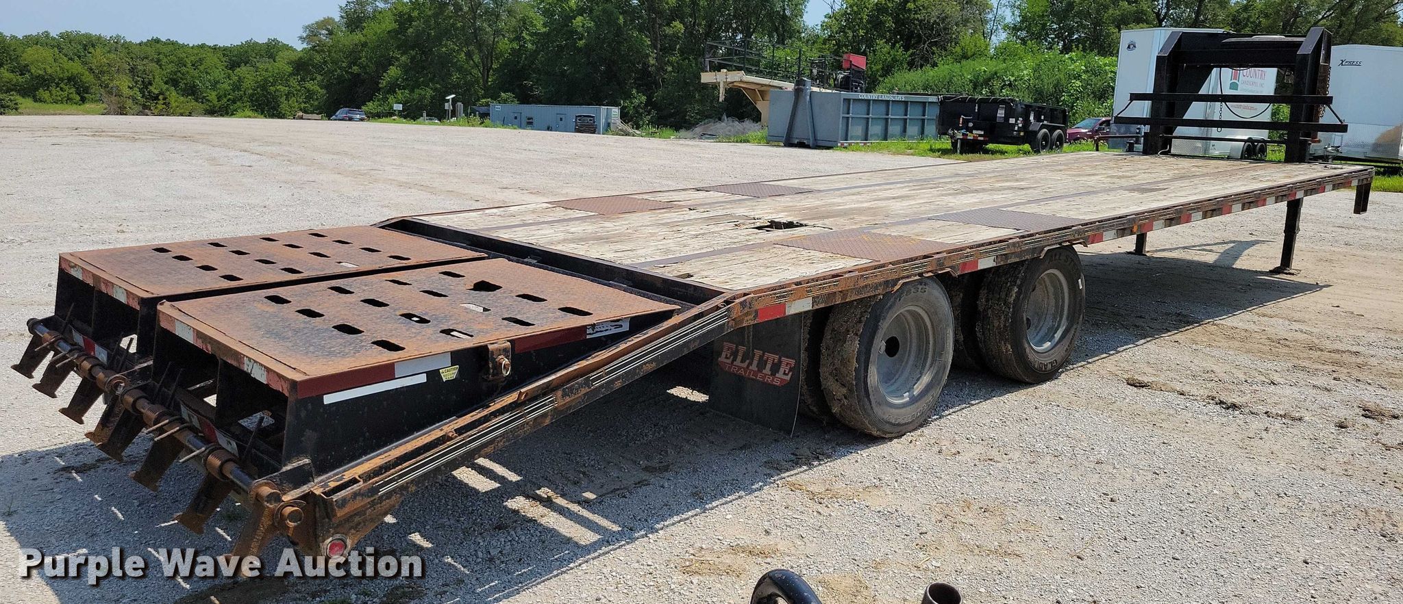 2018 Elite equipment trailer. VIN: 1E9BF3020JS230444. Dimensions Overall Length: 39', Width: 102", Deck Length: 30', Width: 102", Deck height: 33", Tail length: 5', Ramps: Manual Length: 5'. Features Deck type: Wood. Chassis Hitch: Gooseneck, Ball hitch: 2 5/16", Landing gear: Dual, Suspension: Spring, Brakes: Electric, Axles: Tandem, GVWR: 22,500 lbs, GAWR: 10,000 lbs. Tires Steel wheels, Size: ST235/80R16. Iowa title. Title distribution may be delayed up to 14 days from verification of funds. Country Landscapes, Inc.. Ames, IA 50010