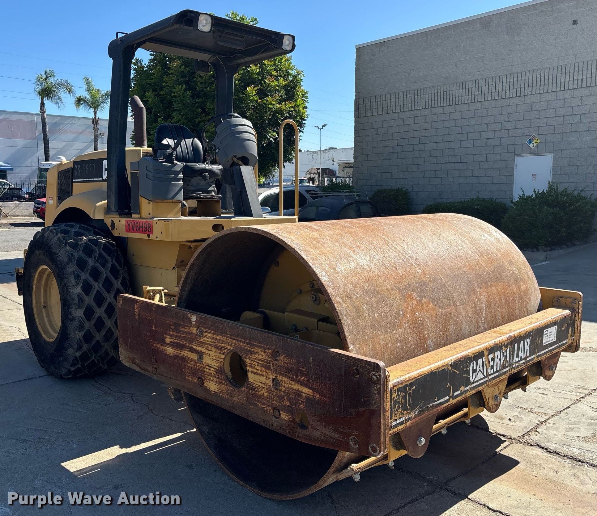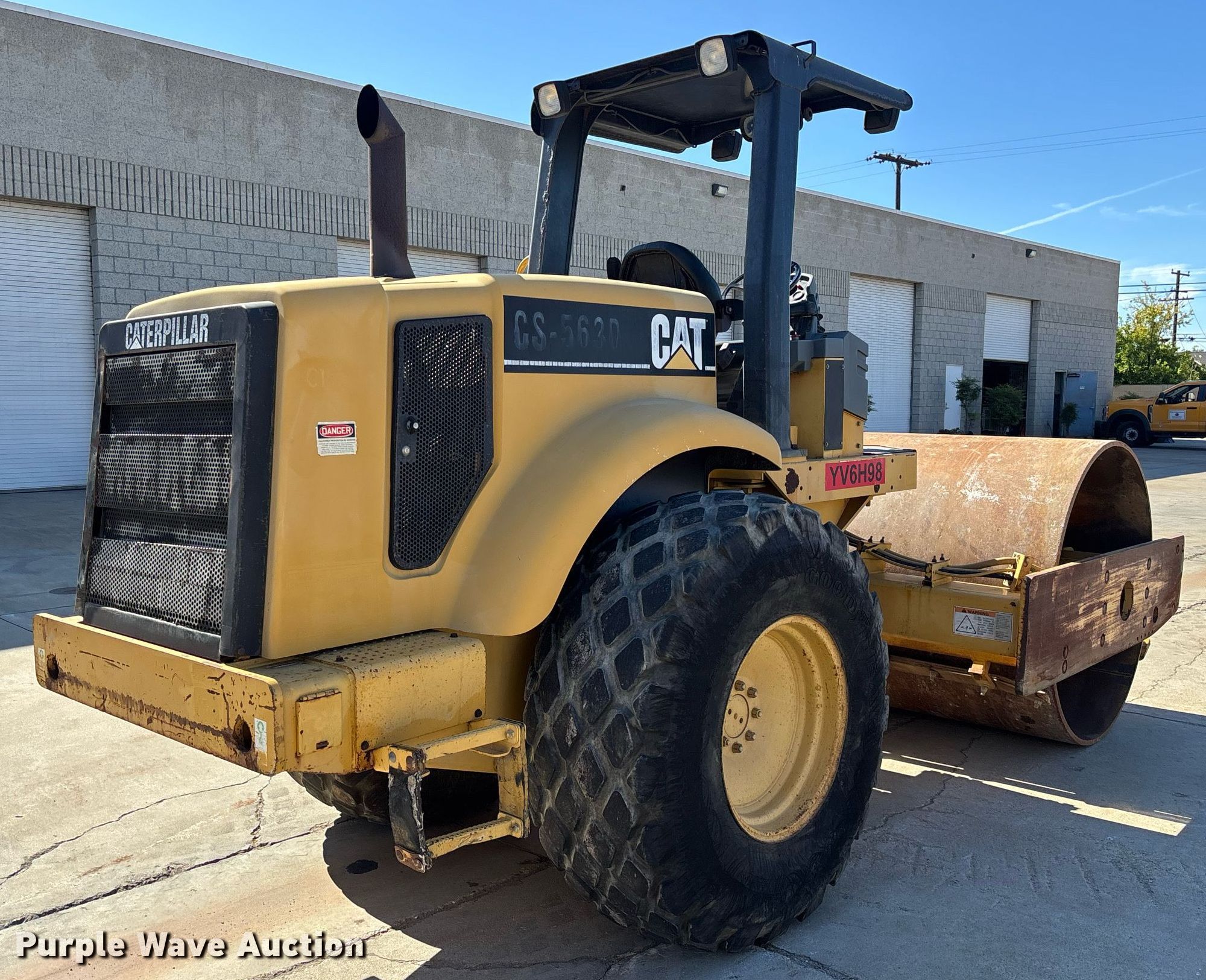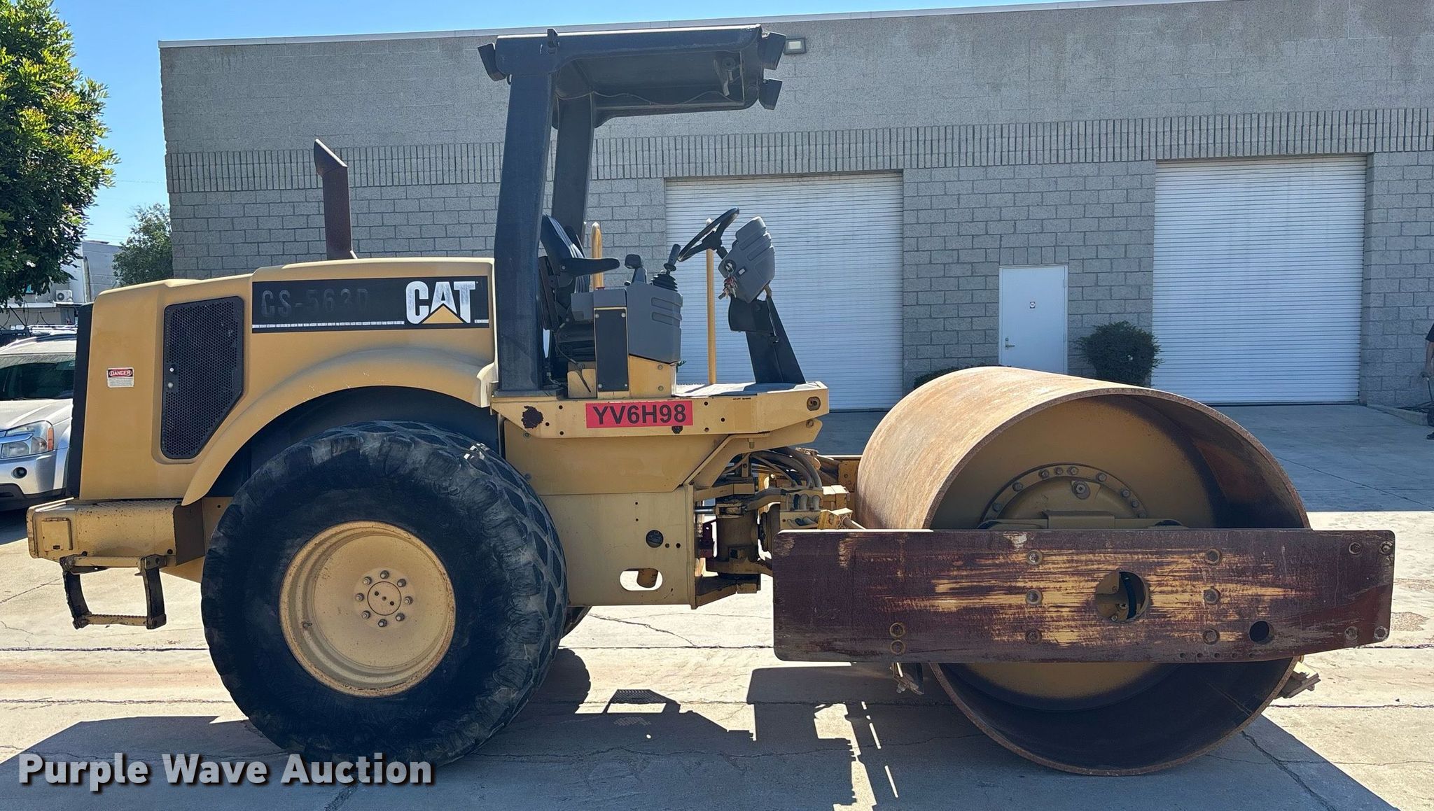 Purple Wave is selling a used Single Drum Roller Compactor in California. This item is a 2000 Caterpillar CS-563D single drum vibratory roller with the following: Hours: 2,077 on meter, Serial: 9MW00156