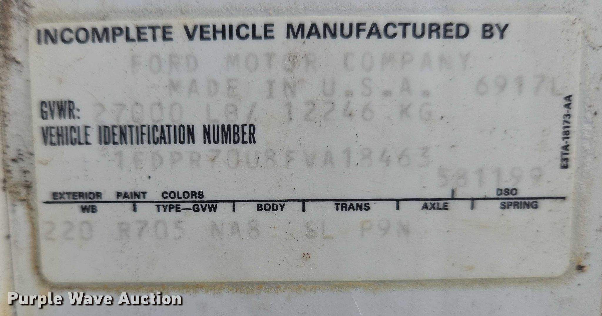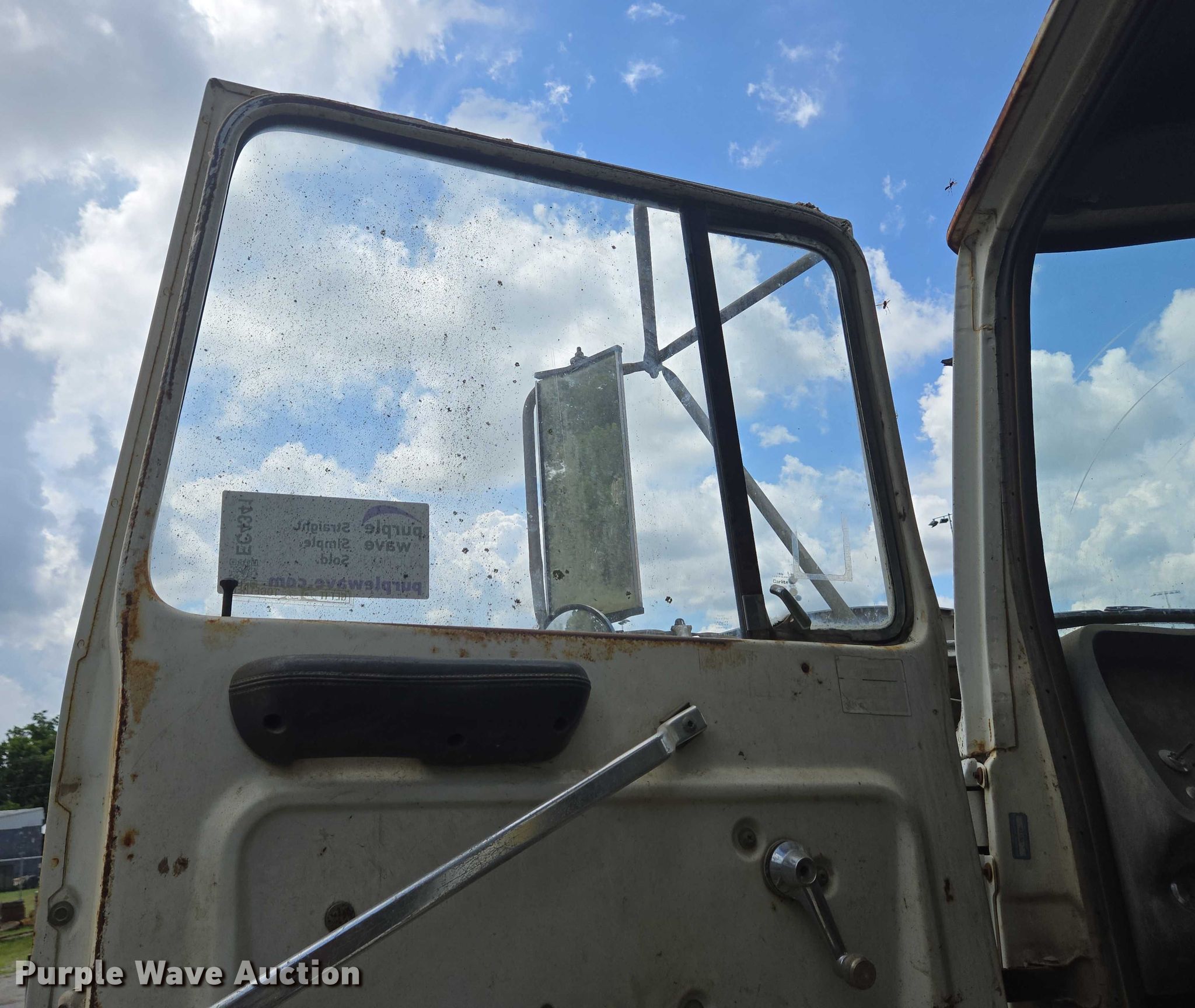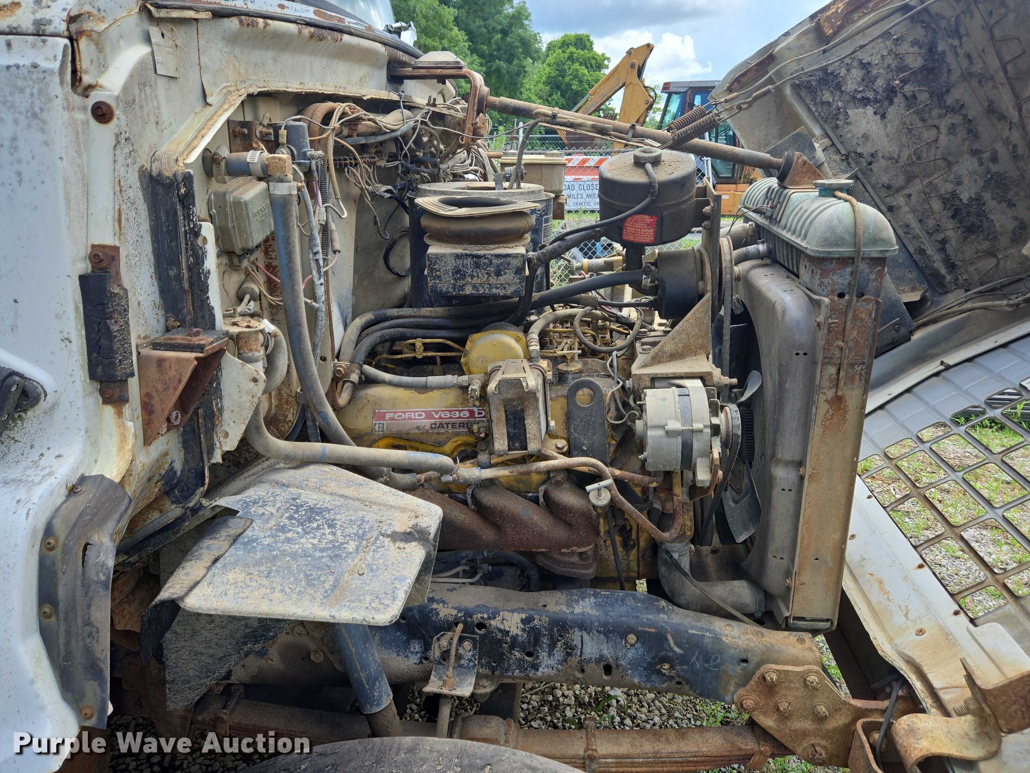 1985 Ford F700 dump truck. Miles: 163,841 on odometer, VIN: 1FDPR70U8FVA18463. Engine Caterpillar V636, Displacement: 10.4L, Cylinders: 8, Fuel type: Diesel. Transmission Manual. Chassis Axles: Single, Suspension: Spring, Brakes: Hydraulic, PTO. Interior Heat. Features Side height: 27" Bed type: Steel, Ram: Single. Tires Front: 255/80R22.5, Rear: 11R22.5, 275/80R22.5. Notes Fuel issues , Engine issues Unit must be towed or hauled, Unknown operating condition. Kentucky title. Title distribution may be delayed up to 14 days from verification of funds. Todd Johnson Contracting, Inc.. Danville, KY 40422