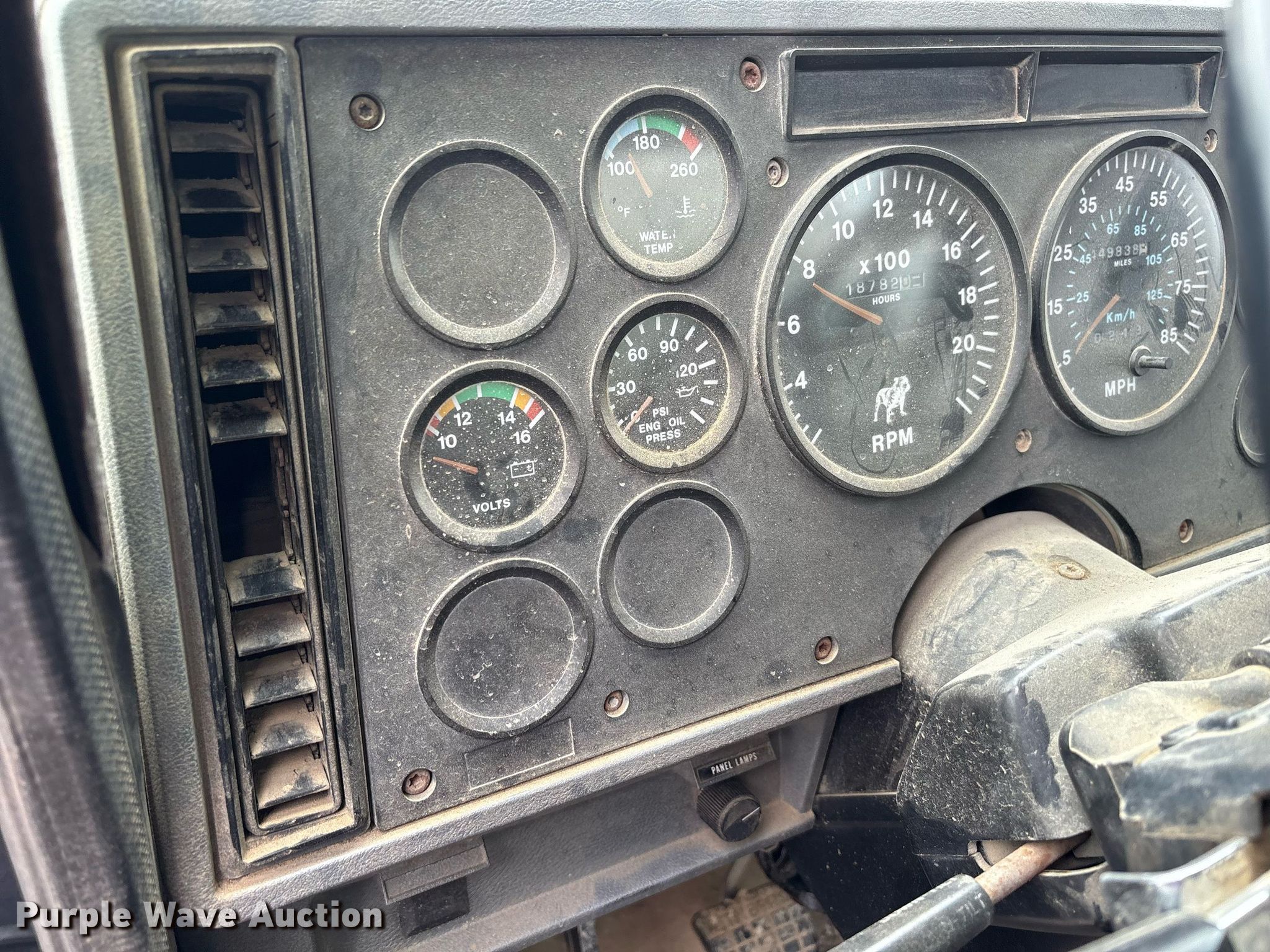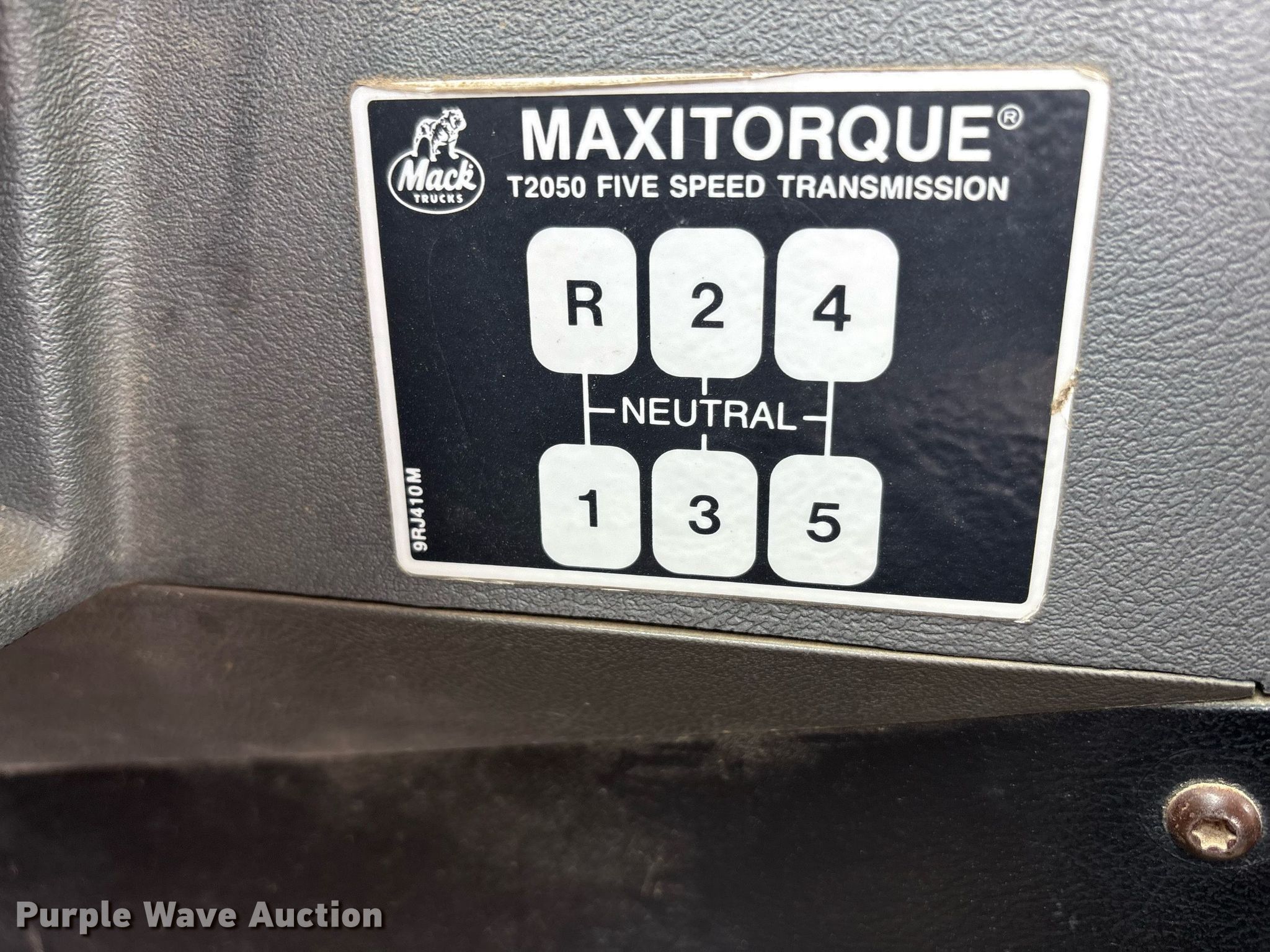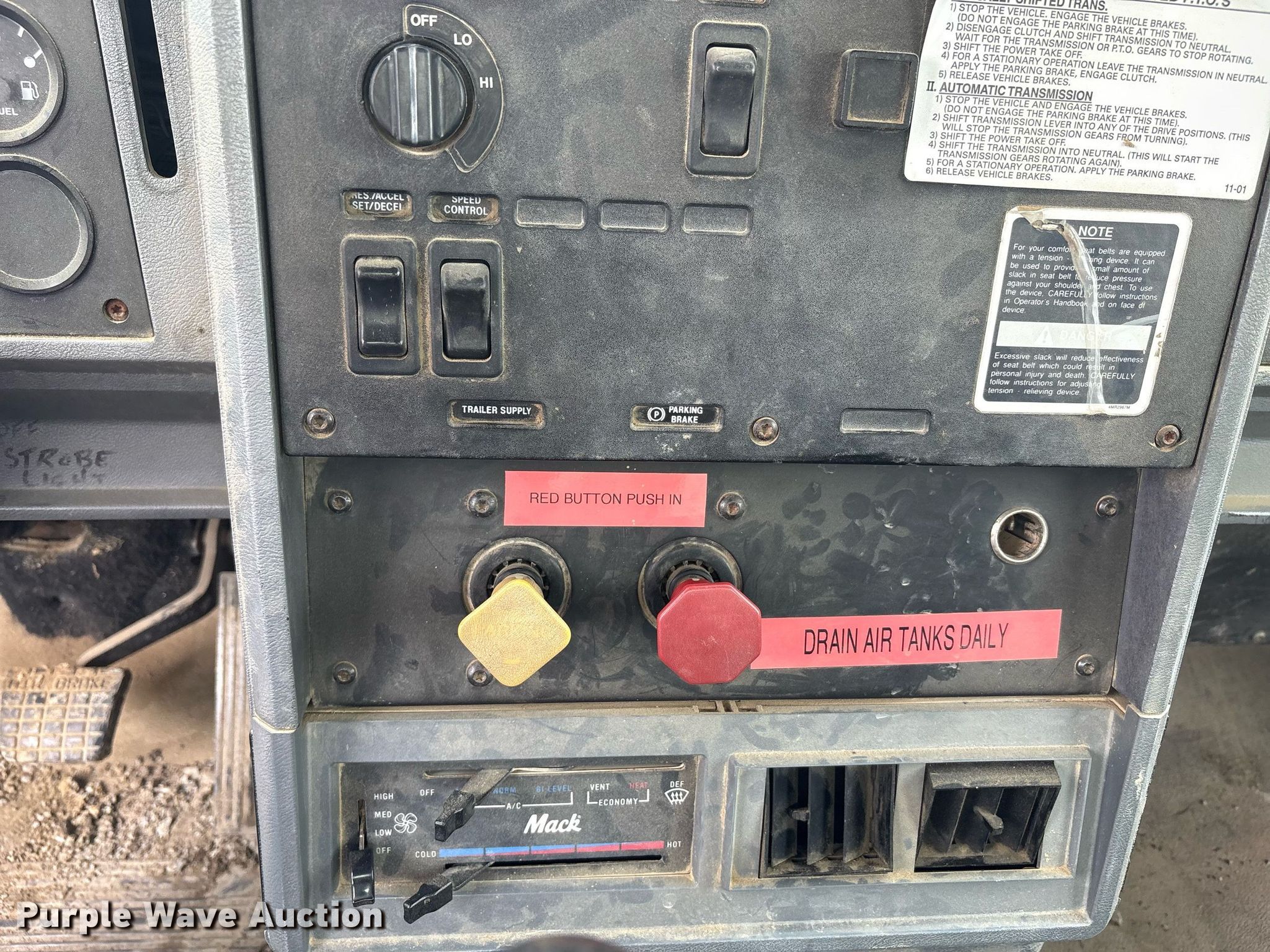 1997 Mack CH613 water truck. Miles: 449,838 on odometer, Hours: 18,782 on meter, VIN: 1M1AA12YXVW071334. Engine Mack, Displacement: 12.0L, Cylinders: 6, Fuel type: Diesel. Transmission Mack, Manual, Speed: 5. Chassis Axles: Tandem, Suspension: Spring, Brakes: Air, PTO. Interior AC, Heat, Cruise control. Features Bed Tank bed, Diversified Fabricators Inc, Serial: 2520, Spray bar: Front, Rear, Top fill, Rear outlet: 3.5". Tires Size: 11R22.5. Notes Water tank rust issues, Right front sprayer issues, leaks, Pipe issues, need replaced, Maintenance records available upon request at [email protected]. Ohio title. Mileage has not been verified. Odometer discrepancy will be marked on the title. Title distribution may be delayed up to 14 days from verification of funds. Miller Bros Const Inc. Archbold, OH 43502