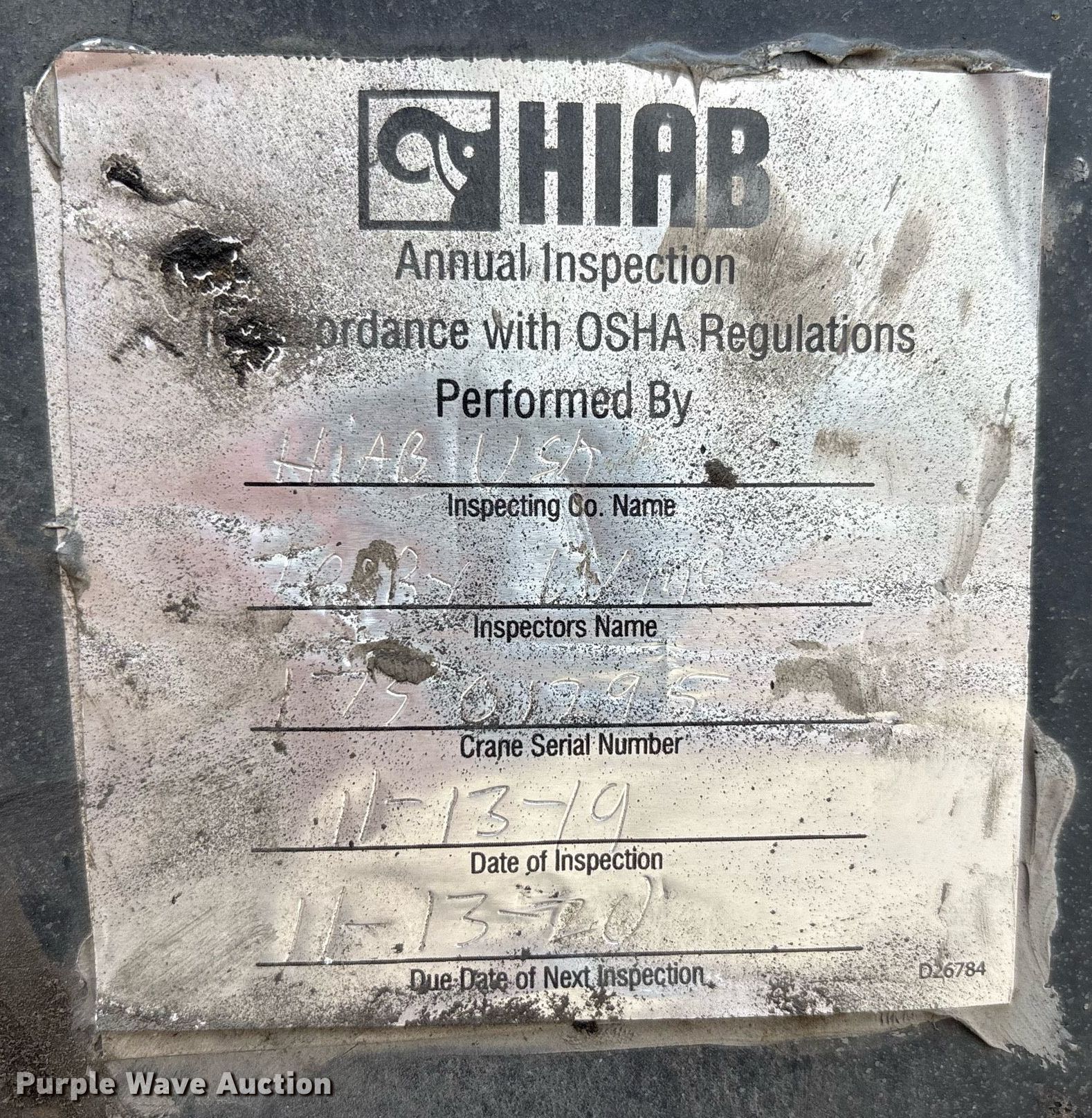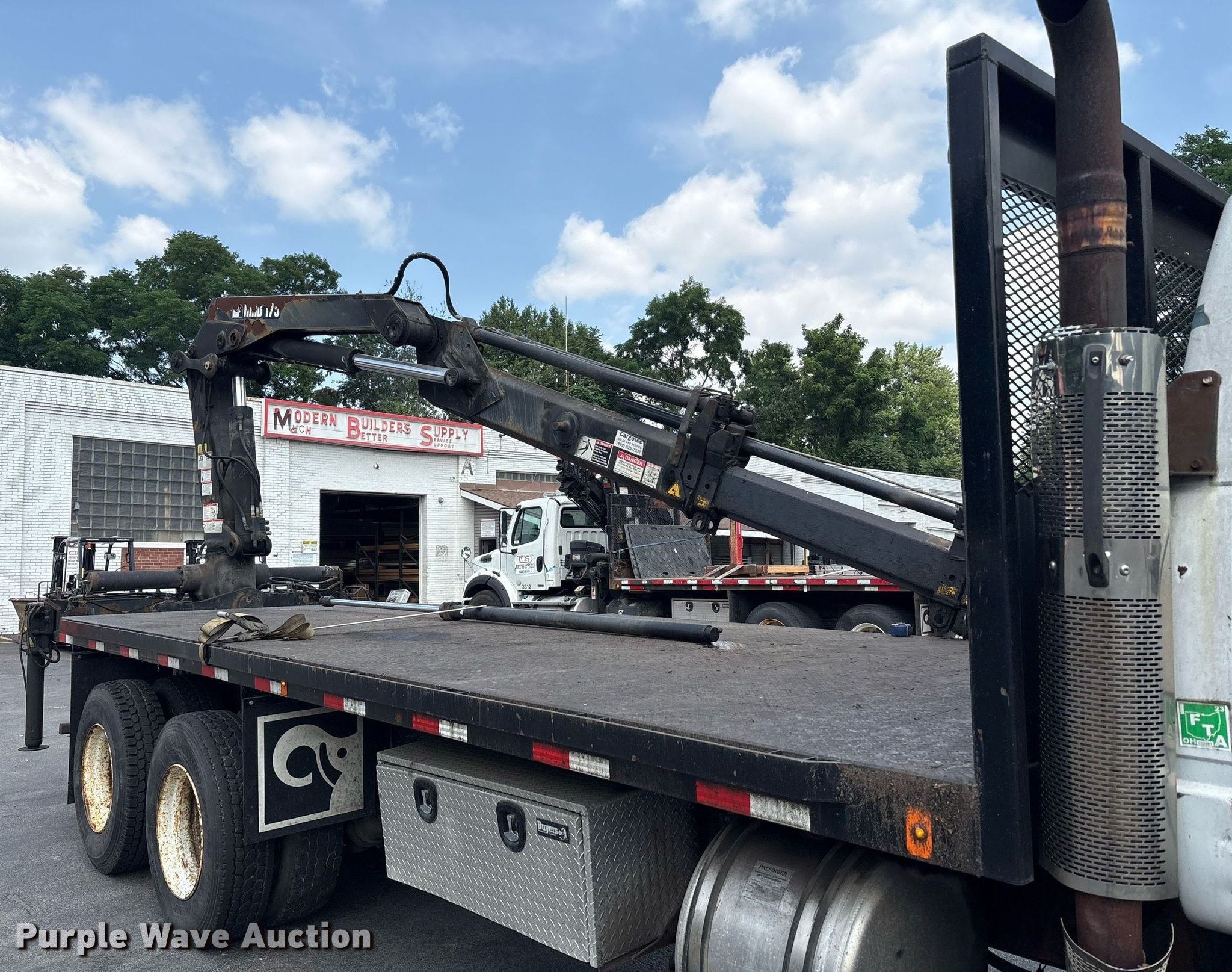 2000 GMC C8500 crane truck. Miles: 287,308 on odometer, VIN: 1GDT7H4C4YJ504435. Engine Caterpillar LG5, Displacement: 7.2L OHV, Cylinders: 6, Fuel type: Diesel. Transmission Manual. Chassis Axles: Tandem, Differential lock: Inter-axle, Suspension: Spring over walking beam, Brakes: Air, PTO, GVWR: 53,220 lbs FAWR: 13,220 lbs, RAWR: 40,000 lbs. Interior AC, Heat. Features Bed Flatbed, Length: 20' 3", Width: 91", Crane HIAB 175, Telescopic, Knuckle, Maximum boom length: 38' Sections: 5, Maximum lift capacity: 13,450 lbs, Boom controls Ground, Certification valid through: 11/2020. Tires Size: 11R22.5. Notes Non-operational crane, disassembled, Hydraulic system open. Ohio title. Title distribution may be delayed up to 30 days from verification of funds. Modern Builders Supply. Akron, OH 44306