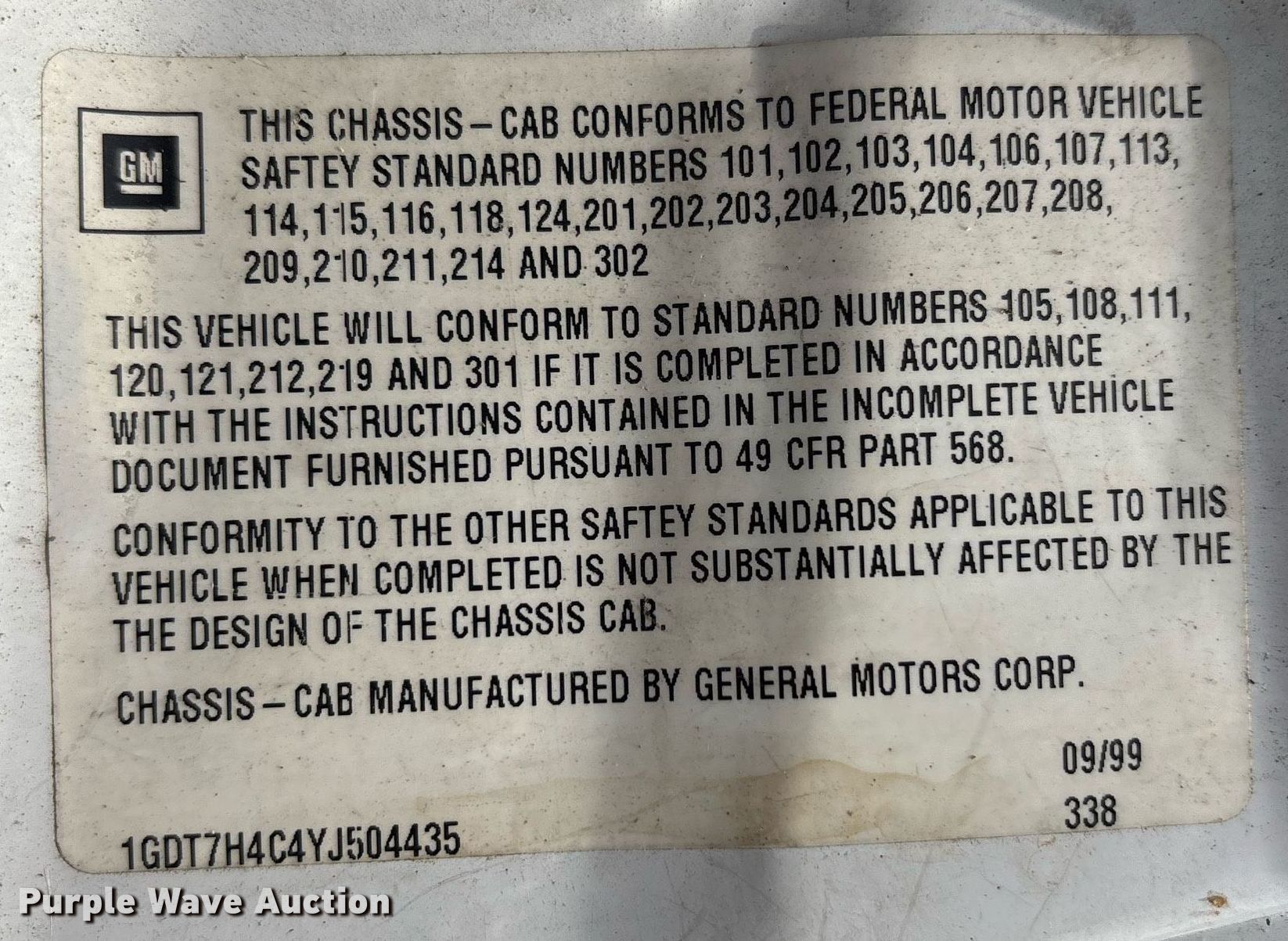 Purple Wave is selling a used Crane Truck in Ohio. This item is a 2000 GMC C8500 crane truck with the following: Miles: 287,308 on odometer, VIN: 1GDT7H4C4YJ504435