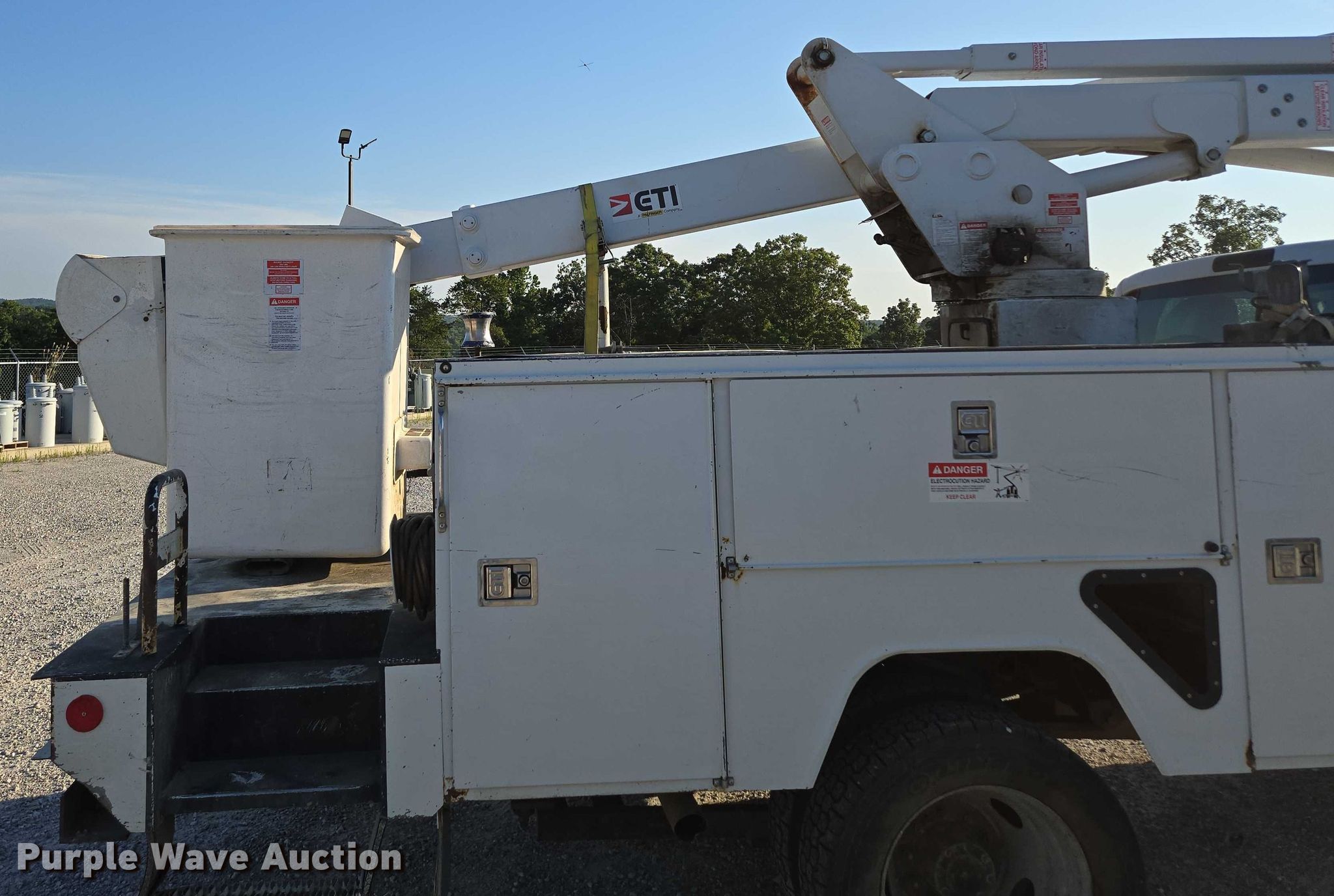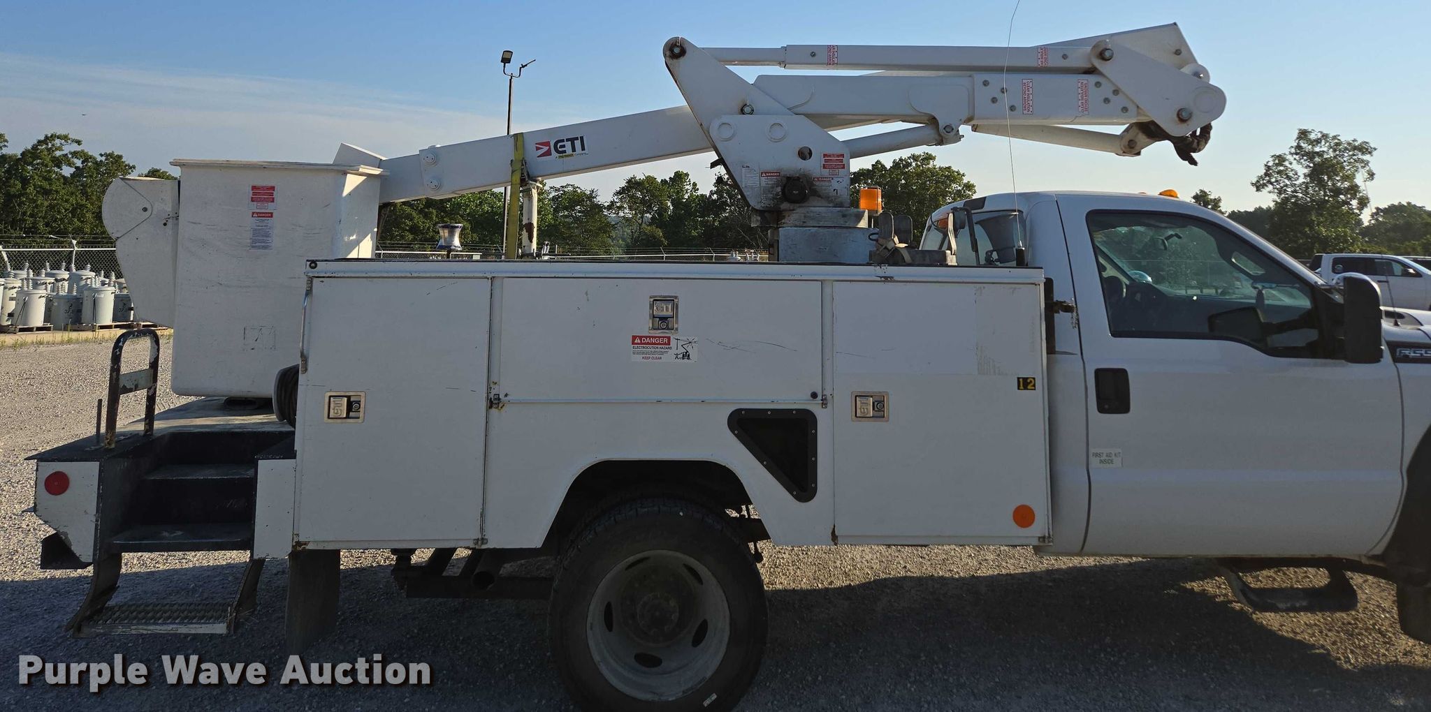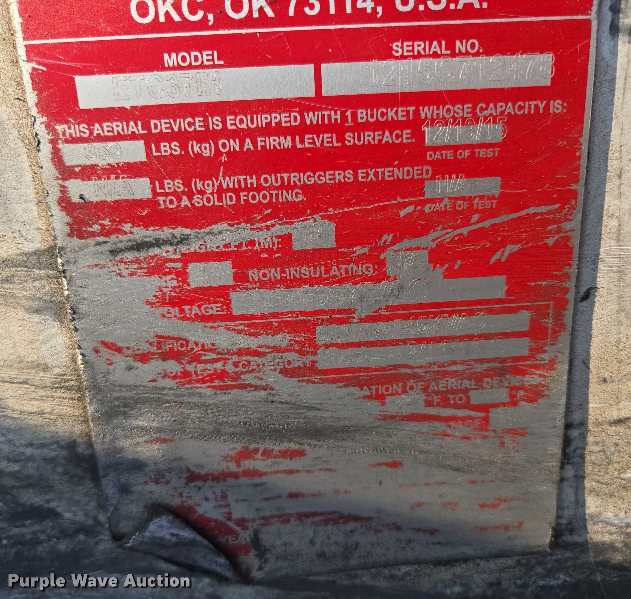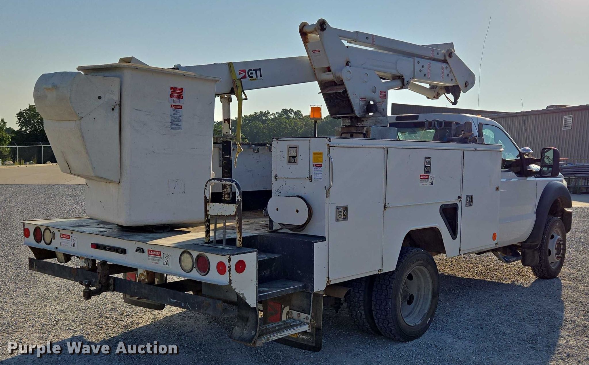 2016 Ford F550 Super Duty XL bucket truck. Miles: 163,440 on odometer, VIN: 1FDUF5HYXGEA99698, Unit #: 12. Engine Displacement: 6.8L V10 DOHC, Cylinders: 10, Fuel type: Gas. Transmission Automatic. Chassis Four wheel drive, Axles: Single, Suspension: Spring, Brakes: Hydraulic, GVWR: 19,000 lbs. Interior AC, Heat, Auxiliary controls, Brake controller. Features Bed ETI SB108DD96A36R, Length: 12', Width: 96", Boom ETI ETC37IH, Serial: 1215C712478, Boom length: 14' 7", Maximum lift capacity: 350 lbs, Boom type: Insulated, Telescopic, Man basket, Boom controls Ground, Platform/ basket.. Tires Size: 225/70R19.5. Notes Muffler damaged, hole. Missouri title. Title distribution may be delayed up to 14 days from verification of funds. Mansfield, MO 65704