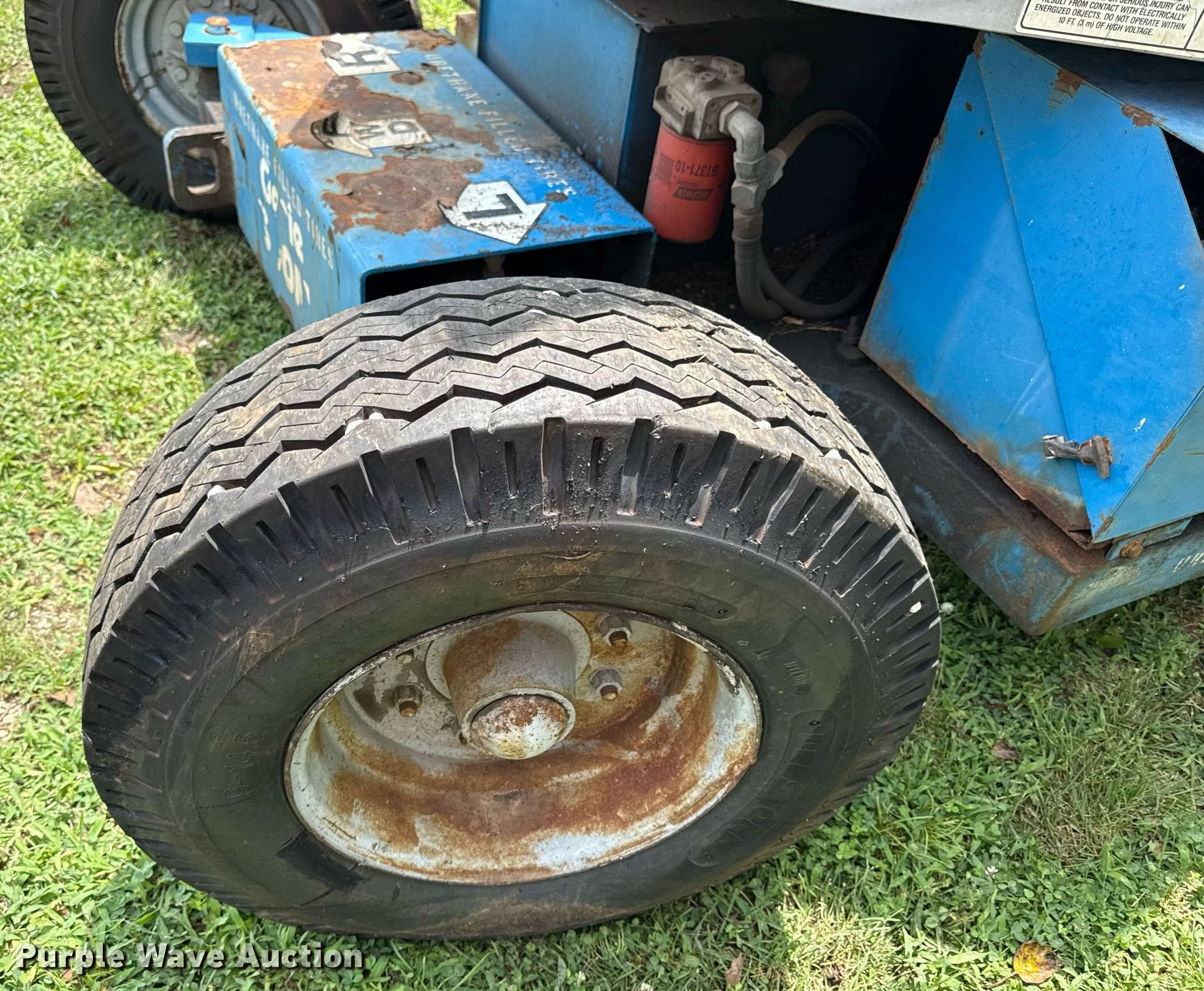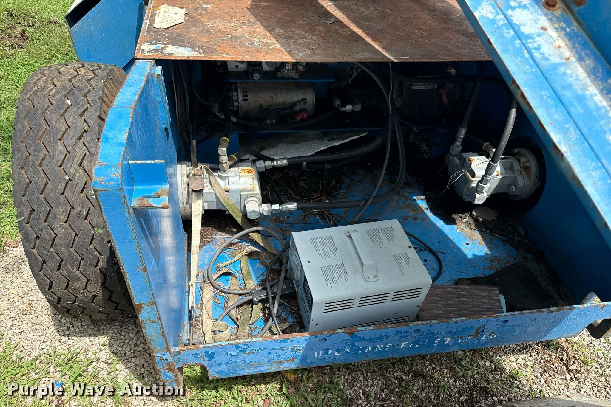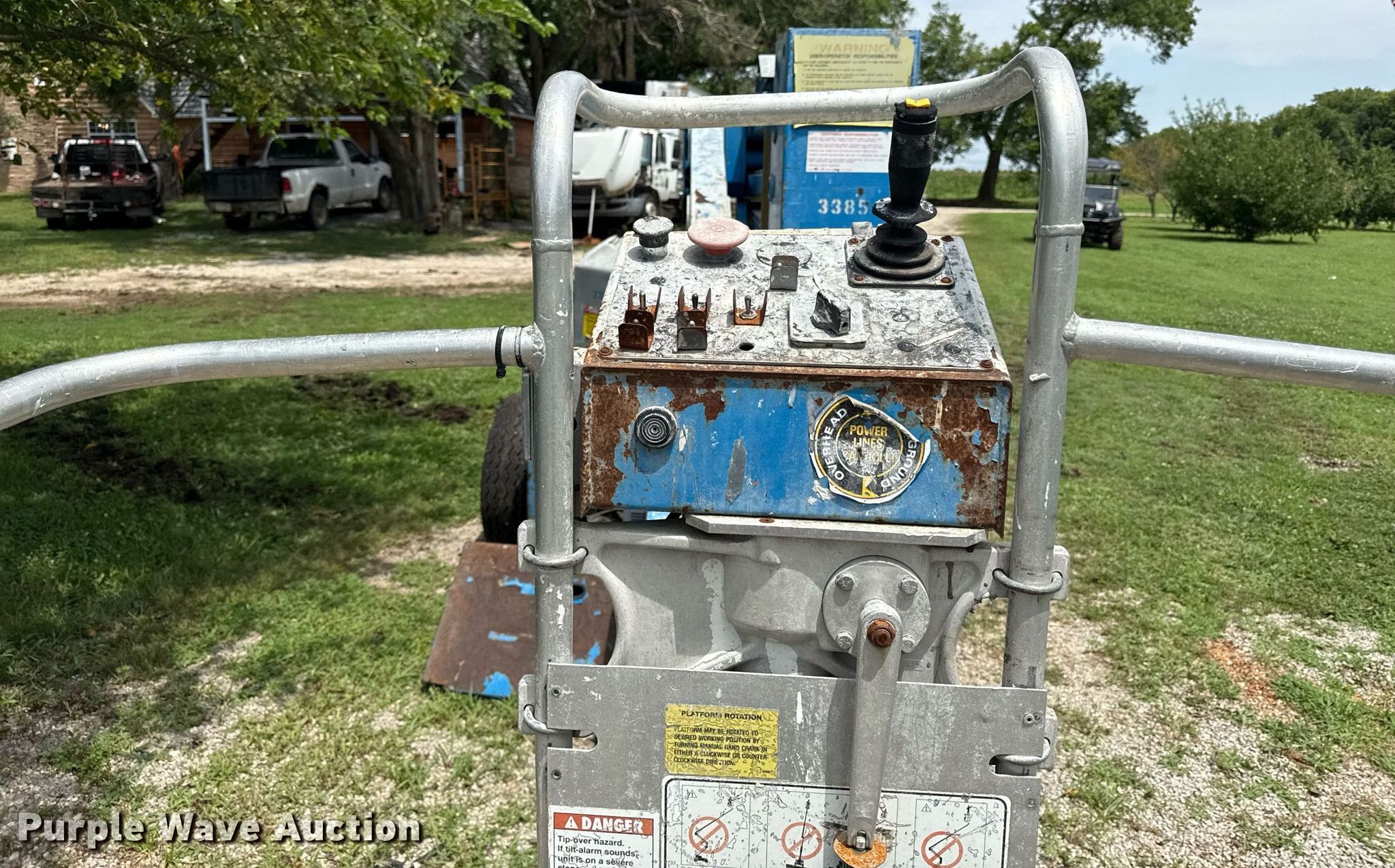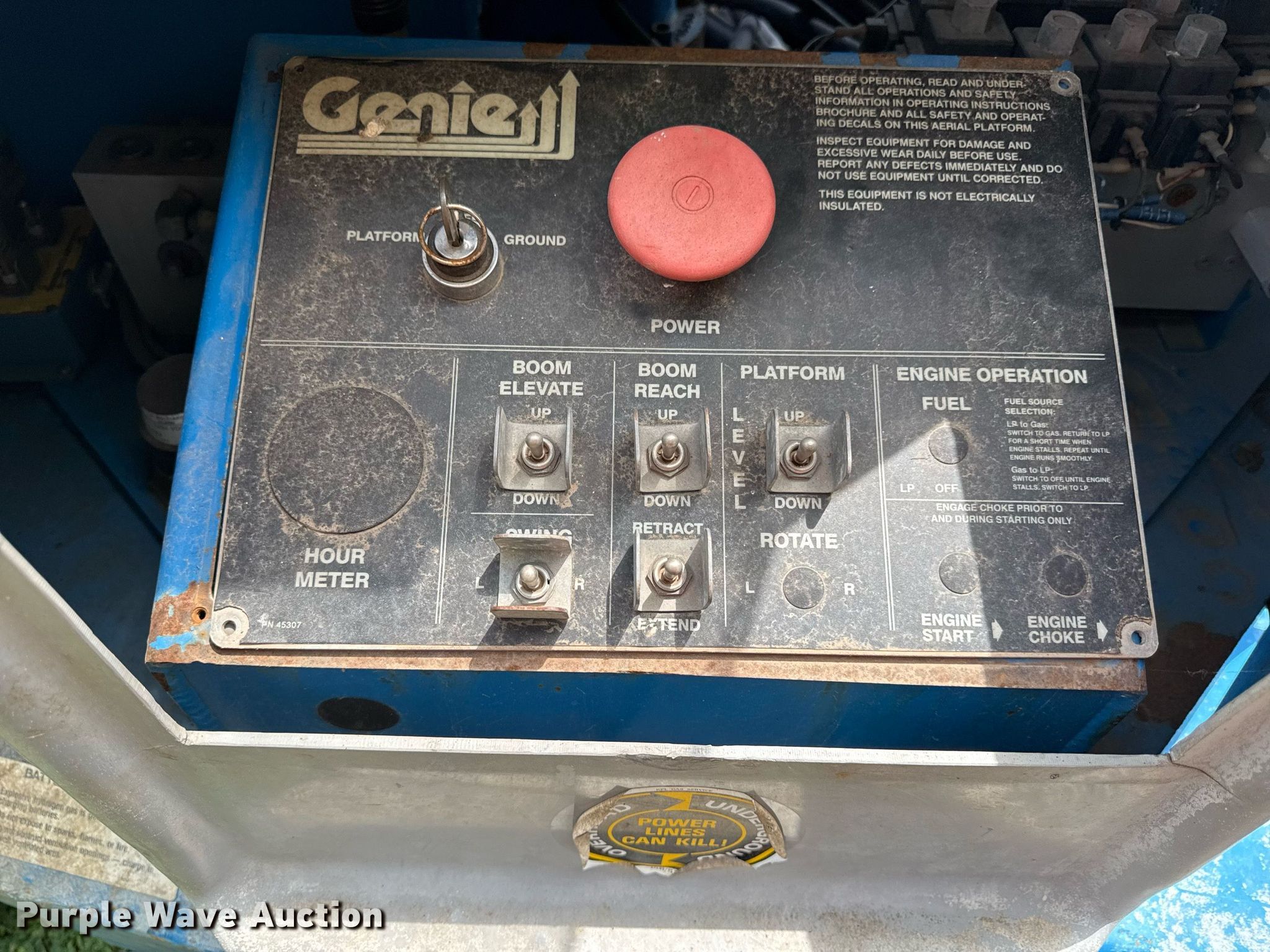 1996 Genie Z-45/22 boom lift. Serial: 3385. Electric Motor Volts: 36. Features Rough terrain, Boom type: Articulating, Telescopic, Maximum lift capacity: 500 lbs, Maximum lift height: 45', Platform: 48" L x 28" W, AC power outlet, Controls: Platform, Ground. Tires Tire size: 9-14.5, Foam filled. Notes Batteries may need replaced, Dead battery, Unknown operating condition. Colony, KS 66015