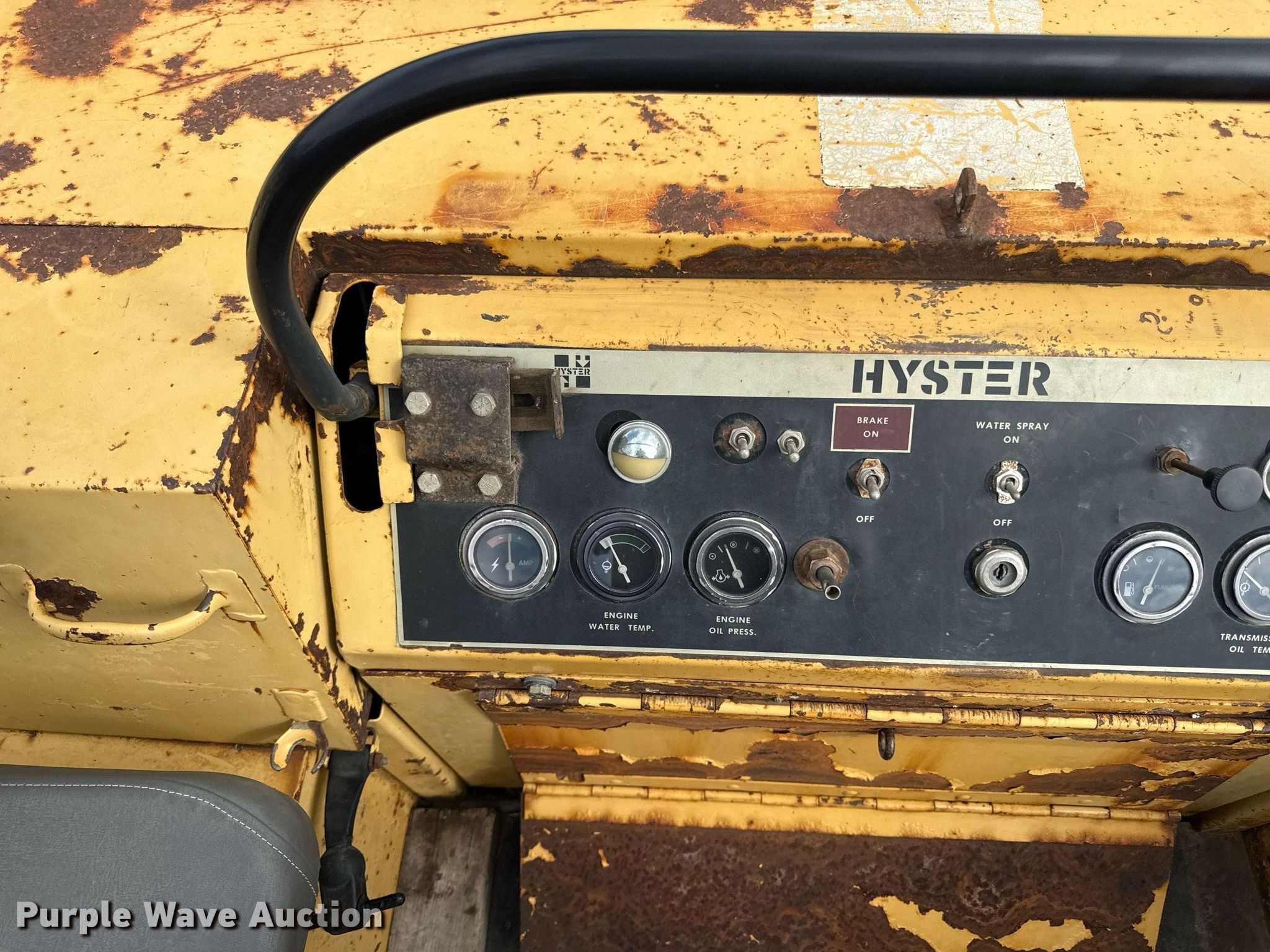 Hyster C350C double drum roller. Hours: 550 on meter, Serial: C89C5430G. Engine Cylinders: 4, Fuel type: Diesel. Transmission Hydrostatic. Features Drum type: Smooth, Front drum Width: 53", Diameter: 48", Rear drum Width: 54", Diameter: 60", Drum scrapers: Front, Rear, Water spray applicator: Front, Rear. Little Joe's Asphalt, Inc... Bonner Springs, KS 66012