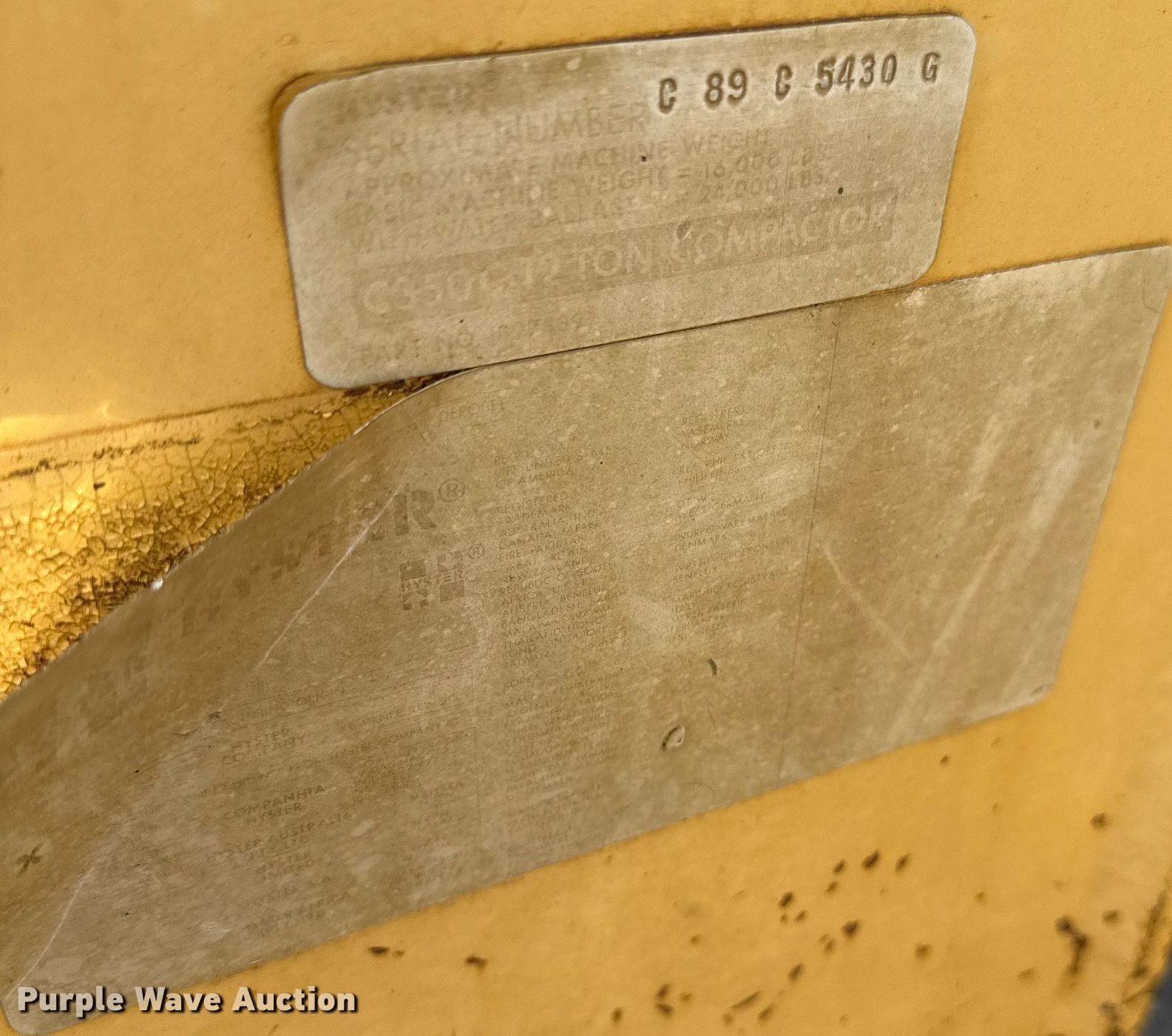 Purple Wave is selling a used Double Drum Roller Compactor in Kansas. This item is a Hyster C350C double drum roller with the following: Hours: 550 on meter, Serial: C89C5430G