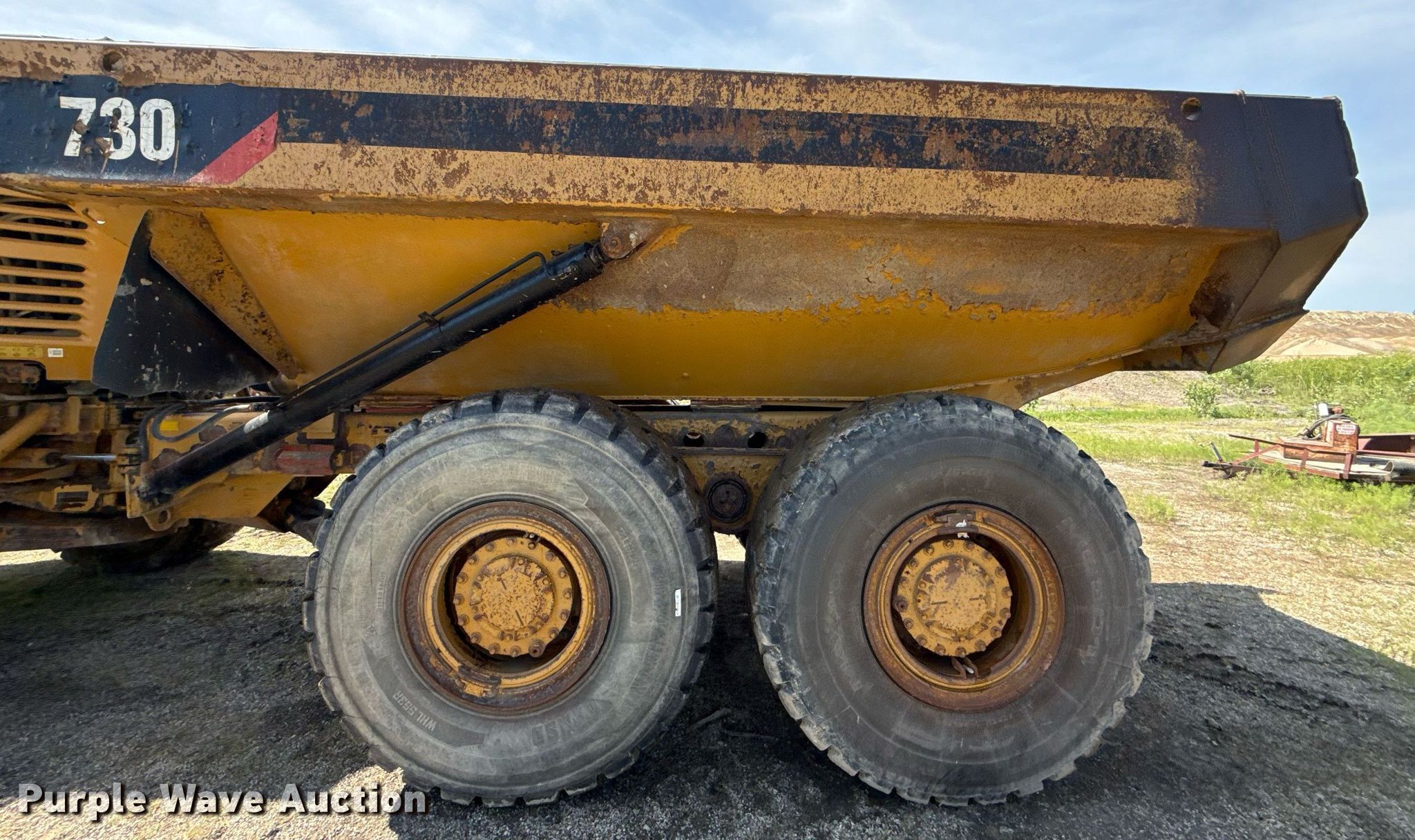 Purple Wave is selling a used Articulated Haul Truck in Kansas. This item is a 2007 Caterpillar 730 articulated haul truck with the following: Hours: 27,421 on meter, Serial: B1M01088