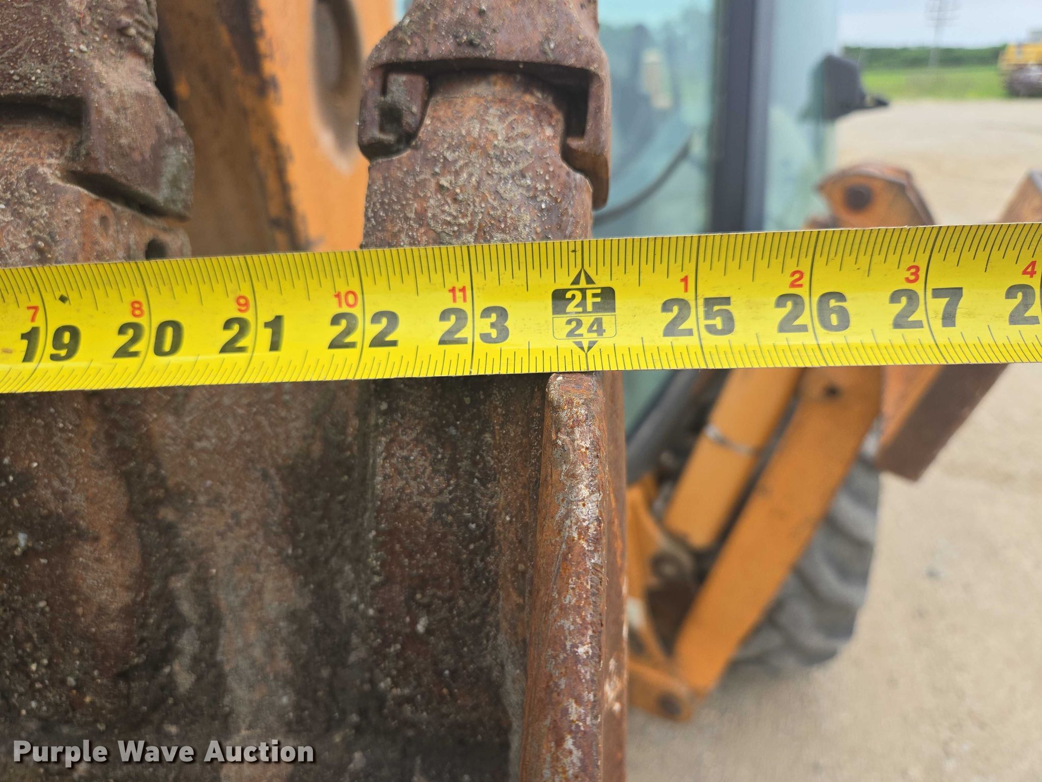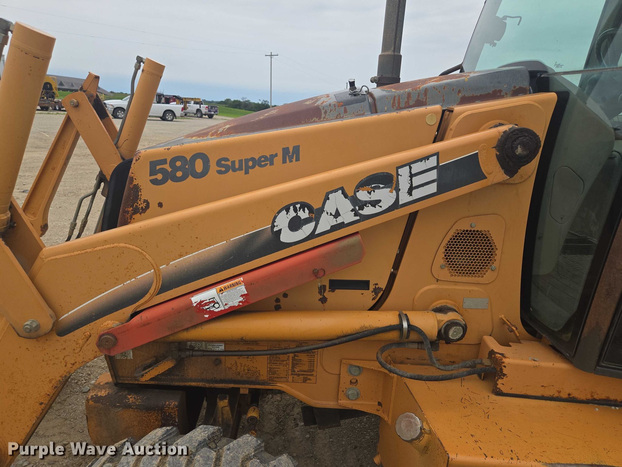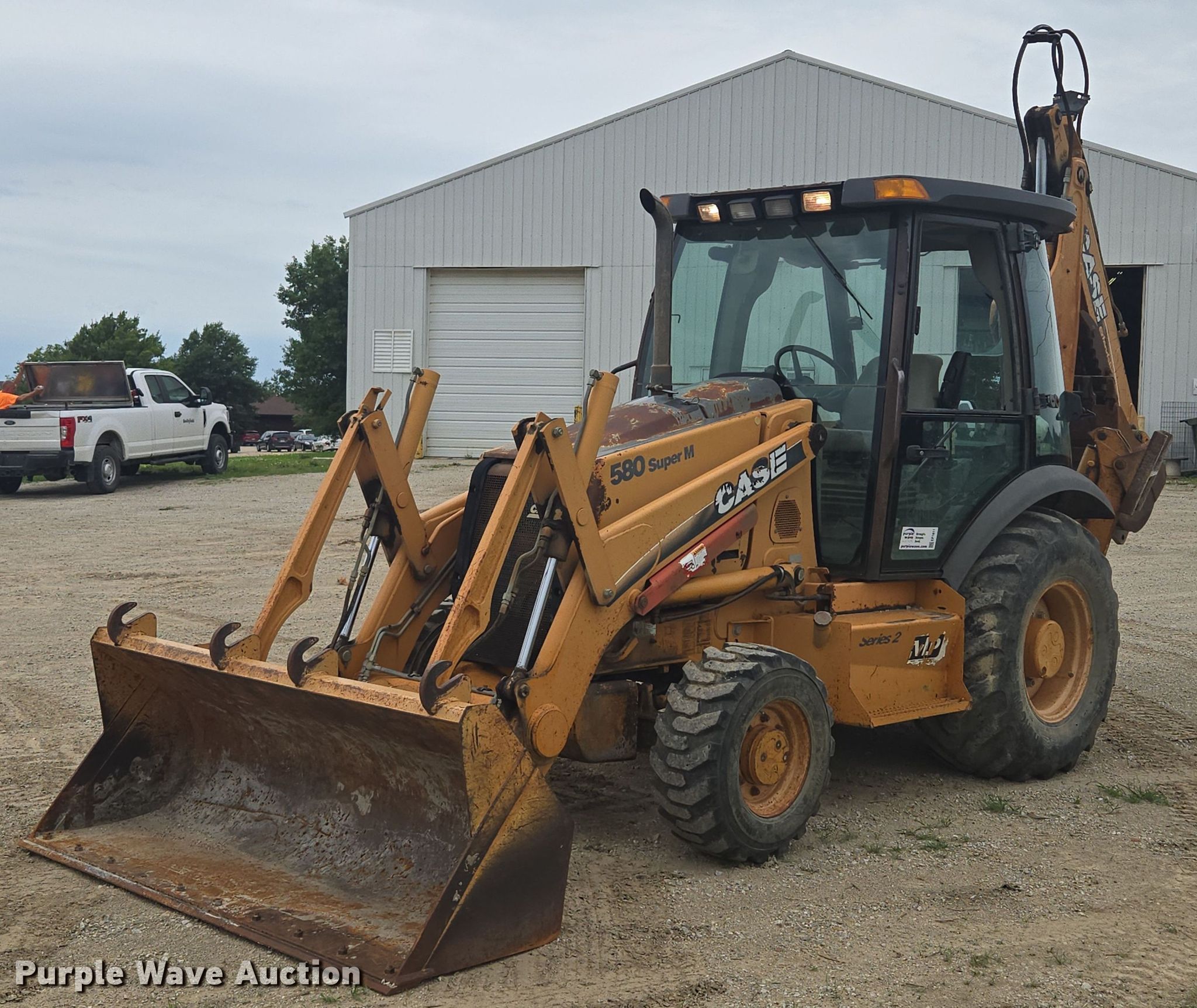 2005 Case 580 Super M backhoe. Hours: 6,742 on meter, Serial: N5C385611. Engine Case 445T, Cylinders: 4, Fuel type: Diesel. Transmission Shuttle shift, 4F - 4R. Chassis Four wheel drive. Operators station Enclosed cab, AC, Heat, Backhoe controls: Four stick. Features Loader Bucket Width: 83", Cutting edge: Bolt-on, Backhoe Extendable stick, Thumb: Manual, Bucket WB, Width: 24", Cutting edge: Weld-on, Teeth: 5.. Tires Front: 12-16.5, Rear: 19.5-24. Notes Door glass missing. Princeton, MO 64673