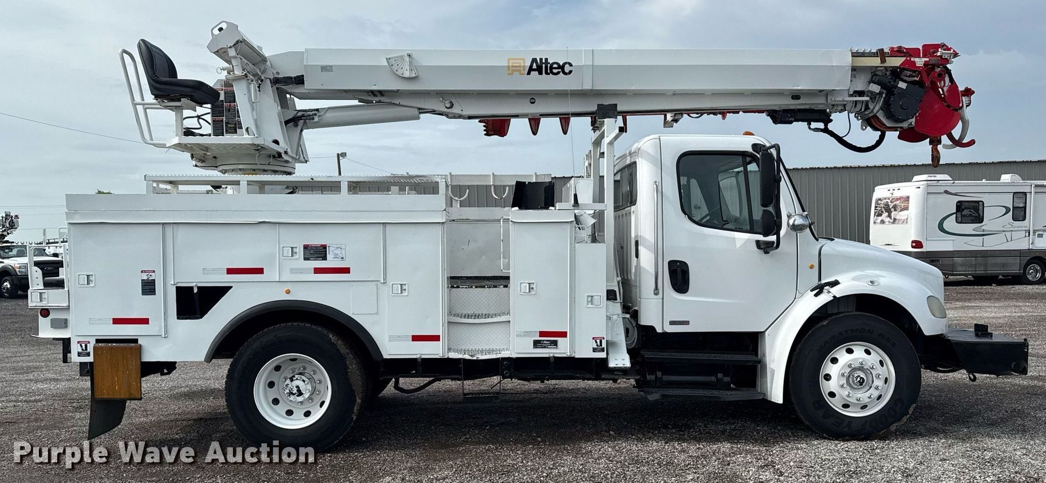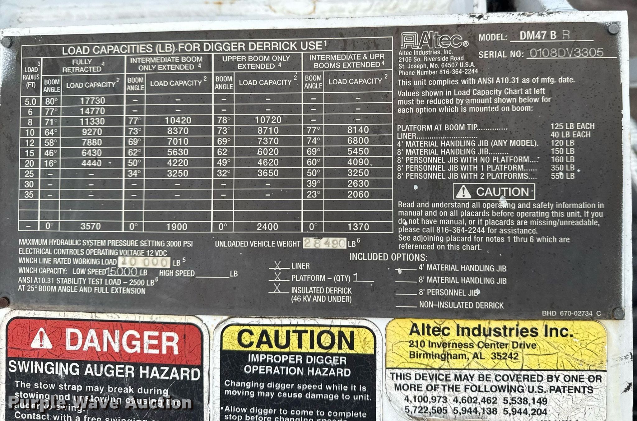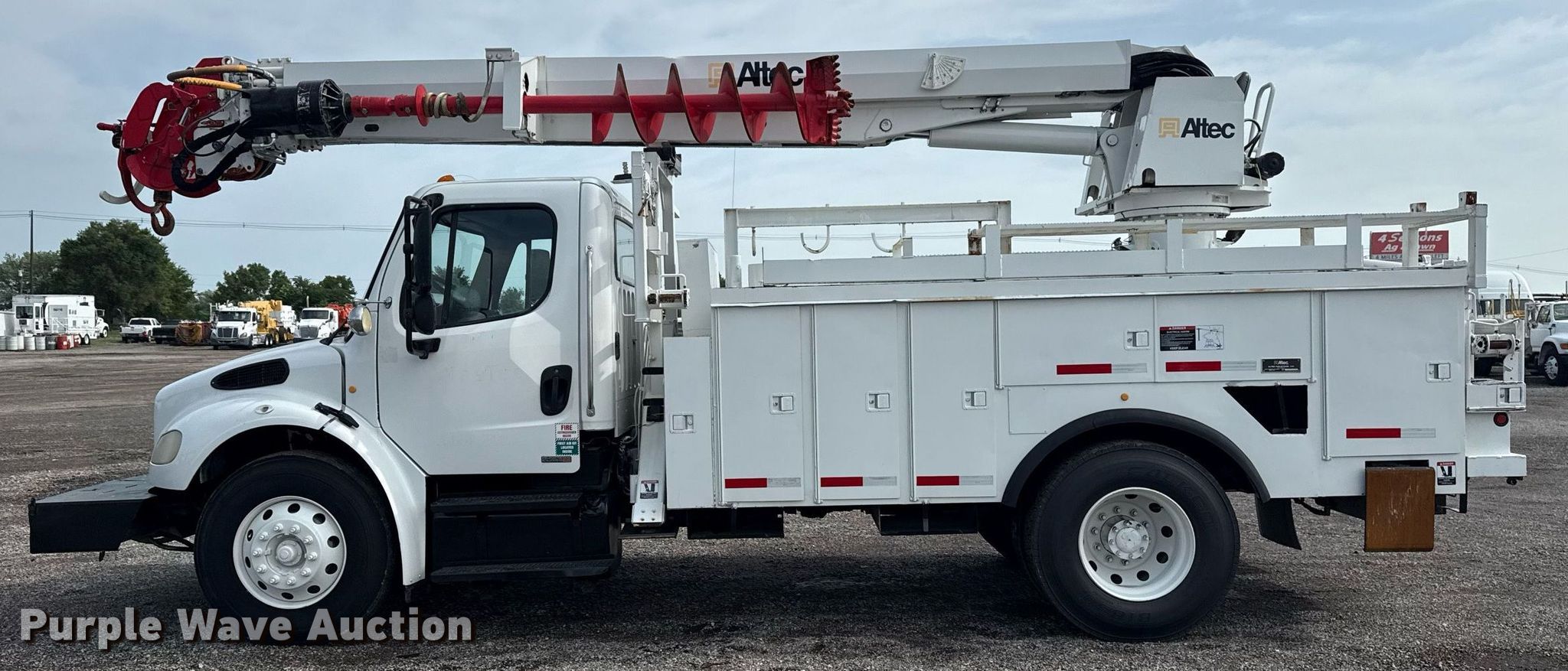 2008 Freightliner Business Class M2 digger derrick truck. Miles: 112,470 on odometer, Hours: 7,922 on meter, VIN: 1FVACXDT68HZ77105. Engine Cummins ISB, Displacement: 6.7L, Cylinders: 6, Fuel type: Diesel. Transmission Allison, Automatic. Chassis Axles: Single, Suspension: Spring, Brakes: Air, PTO, GVWR: 33,000 lbs. Interior AC, Heat, Cruise control. Features Bed Utility bed, Altec, Length: 14' 6", Width: 93", Boom Altec DM47BR, Serial: 0108DV3305, Maximum lift capacity: 17,730 lbs, Maximum lift height: 47', Boom type: Insulated, Telescopic, Boom controls Platform/ basket, Material handler, Pole guide, Auger Diameter: 18".. Tires Size: 11R22.5. Oklahoma title. Seller is an Oklahoma licensed motor vehicle dealer. Title will be assigned and distributed by the dealer. Please contact the seller for distribution questions. Title distribution may be delayed up to 30 days from verification of funds. Collinsville, OK 74021