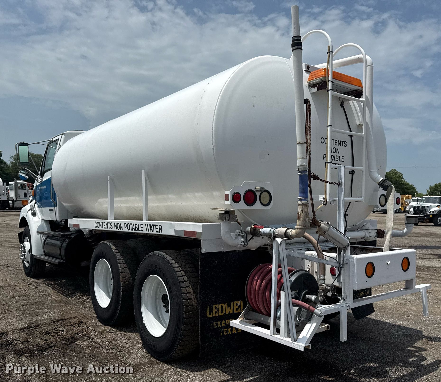 2003 Sterling L9500 water truck. Miles: 79,335 on odometer, Hours: 8,759 on meter, VIN: 2FZHAZAS33AK91481. Engine Caterpillar C12, Serial: 2KS95847, Displacement: 11.9L, Cylinders: 6, Fuel type: Diesel, HP: 505, kW: 339. Transmission Automatic. Chassis Axles: Tandem, Differential lock: Inter-axle, Suspension: Spring over walking beam, Brakes: Air, PTO, GVWR: 52,000 lbs. Interior AC, Heat, Cruise control. Features Bed Tank bed, Ledwell LW4000WT, Length: 16', Width: 84", Capacity: 4,000 gallons, Spray bar: Front, Rear, Side discharge, Top fill, Rear drain: 2", Rear outlet: 3". Tires Size: 11R22.5. Notes Windshield chipped or cracked. Oklahoma title. Seller is an Oklahoma licensed motor vehicle dealer. Title will be assigned and distributed by the dealer. Please contact the seller for distribution questions. Title distribution may be delayed up to 30 days from verification of funds. Collinsville, OK 74021