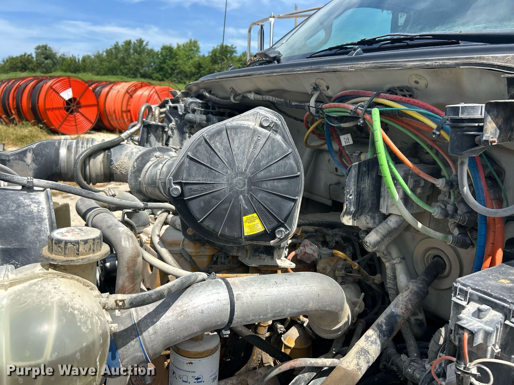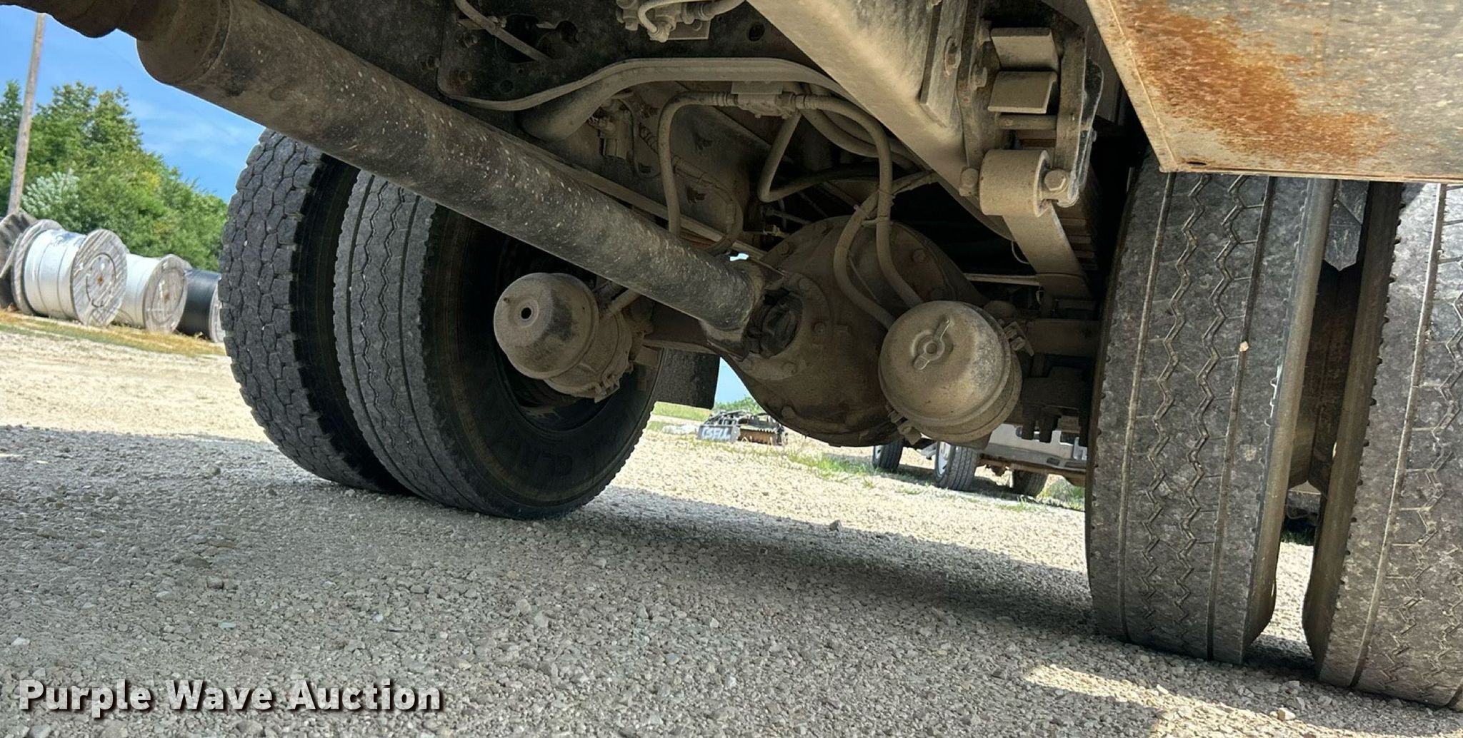 2007 Ford F750 Super Duty XL flatbed truck. Miles: 165,174 on odometer, VIN: 3FRXF75S67V521468. Engine Caterpillar C7, Displacement: 7.2L SOHC, Cylinders: 6, Fuel type: Diesel. Transmission Manual, Speed: 6. Chassis Axles: Single, Suspension: Spring, Brakes: Air, PTO, GVWR: 33,000 lbs. Interior AC, Heat, Cruise control, Brake controller. Features Bed Flatbed, Length: 14', Width: 95", Hydraulic reel carrier. Tires Size: 11R22.5. Notes Windshield chipped or cracked. Missouri title. Title distribution may be delayed up to 14 days from verification of funds. Sellenriek Construction Inc.. Jonesburg, MO 63351