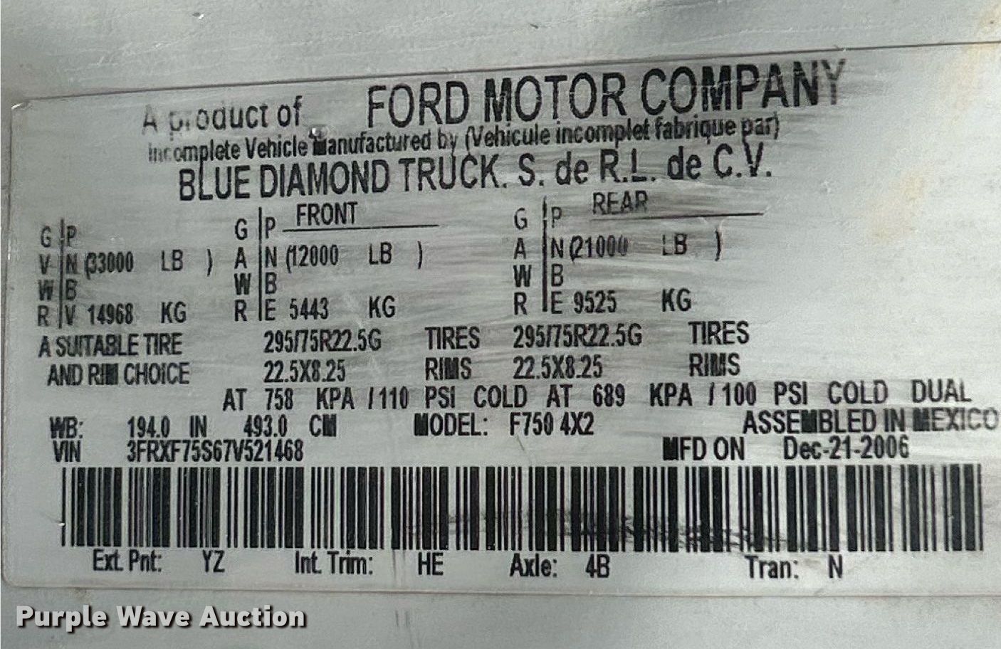 Take a look at this used 2007 Ford F750 Super Duty XL flatbed truck being sold on August 28th, 2025 in the SOLD! August 28 Construction Equipment Auction made by Ford. Take a look at all of the item information below or take a look at similar auctions for Trucks.