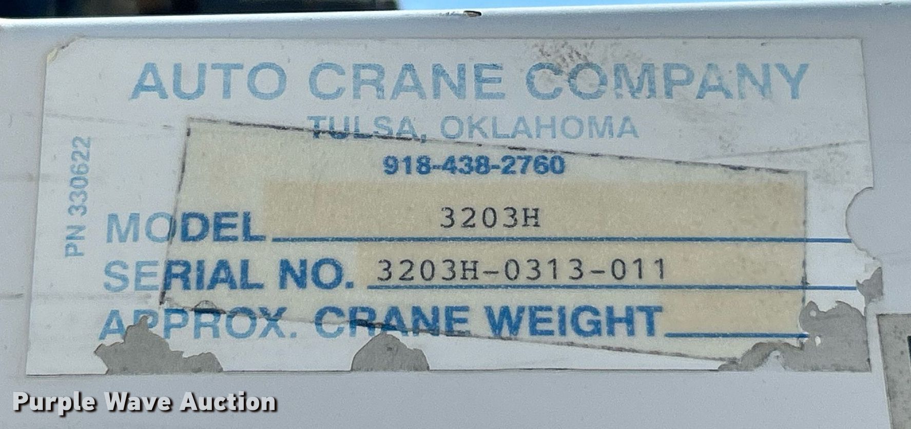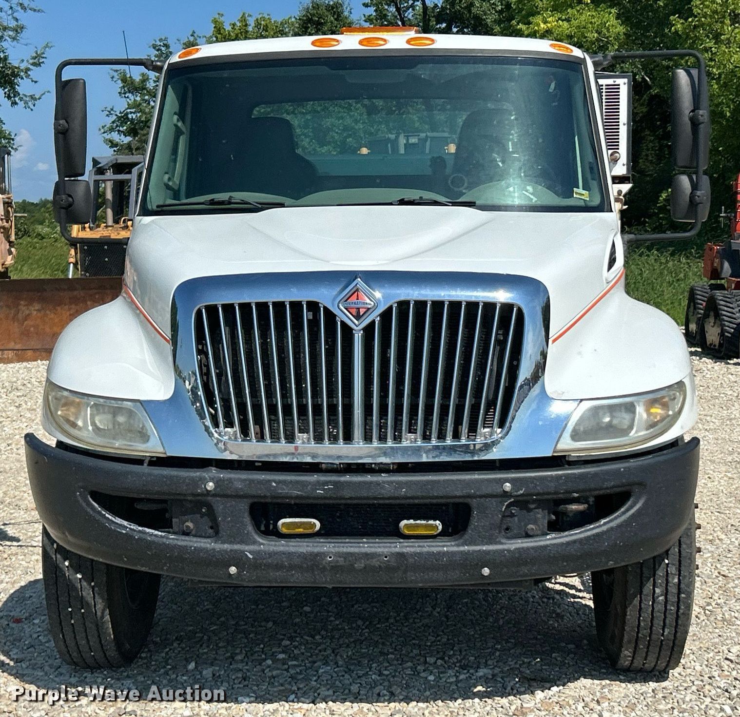 2014 International MA025 utility / service truck. Miles: 258,304 on odometer, Hours: 9,160 on meter, VIN: 3HAMMAANXEL770105. Engine International DT466, Displacement: 7.64L DOHC, Cylinders: 6, Fuel type: Diesel. Transmission Eaton Fuller, Manual, Speed: 6. Chassis Axles: Single, Suspension: Air, Brakes: Air, PTO, GVWR: 32,000 lbs. Interior AC, Heat, Cruise control, Brake controller. Features Bed Utility bed, Adkins, Length: 11' 2", Width: 94", Air compressor Vanair RC40, Crane Auto Crane 3203H, Maximum boom length: 15' Maximum lift capacity: 3,200 lbs.. Tires Size: 11R22.5. Notes Dash warning indicator: Check engine. Missouri title. Title distribution may be delayed up to 14 days from verification of funds. Sellenriek Construction Inc.. Jonesburg, MO 63351